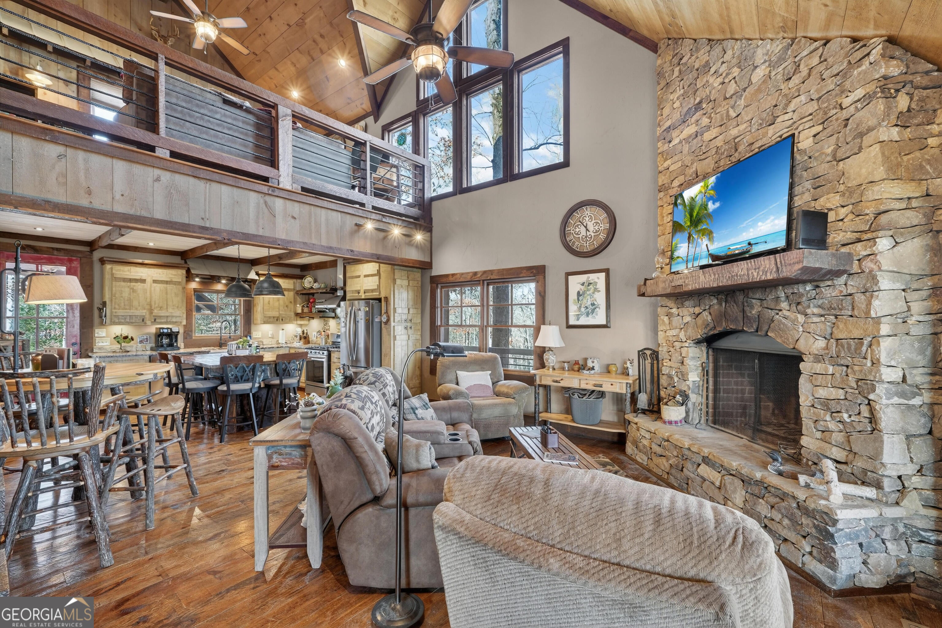 TWO CABIN ESTATE - An Investors Dream or a multi family paradise - This listing is a three acre TWO Cabin estate with year round Mountain AND River Views. Neighborhood river access for fishing, kayaking, and swimming. Cabin 1 (529 Toccoa Preserve Lane): 3 Bedroom 3.5 Bathroom with wrap around porch and 3 fireplaces (2784 Sq feet) Main Level: 1 Bedroom and 1 attached full bathroom, plus a half bath Upper Level: 1 Bedroom and 1 full bathroom with a private door and balcony and a loft that is currently a study, but could be converted to more sleeping Basement Level: 1 Bedroom and 1 attached full bathroom + game room and outdoor access to a huge hot tub and patio Cabin 2 (605 Toccoa Preserve Lane): 3 Bedroom 2 Full Bathrooms (Approx. 1800 Sq Feet) 2 Bedrooms with 1 full bathroom in the middle Large living room and open office that could be converted to additional sleeping space Master bedroom attached to a full bathroom with a shower and separate jacuzzi bathtub Large laundry room 8 Minutes from downtown is a perfect location with plenty of privacy. Around 25-35% of the properties in the subdivision are STRs, so there are plenty of comps for cash flow estimates if the buyer is focusing on renting out the properties, or even living in one and renting the other. Amenities w/ Cabins: 1. Proximity to BR , OTF 2. Proximity to Toccoa River - shared pavilion road with River Green neighborhood 3. Walking trail, pavilion, swing, and canoe/kayak launch by the river 4. Back part of neighborhood and privacy; seasonal views 5. Low HOA fee of $300 annually 6. Gated community 7. Back decks 8. Hot Springs Grandee hot tub 9. Storage closet 10. Porch & gazebo swings 11. Fire pit 12. Outdoor furniture (optional) 13. Indoor furniture (optional) 14. Backyard fencing 15. Builders: Marc Nicholson & Sisson Log Homes 16. New appliances in 529: refrigerator, dishwasher, W&D 17. Spring Pure water systems in both cabins 18. External solar security lights & cameras 19. Wood- burning (2) and gas log fireplaces (2) 20. Flagstone walkways 21. Adjoining 1.5 acre lots 22. UTV's allowed in neighborhood 23. Wildlife: deer, turkeys, etc. 24. 529 mailbox & space available for 605 25. Crawl space storage under 605 26. Upgraded floors, cabinets, and tiled showers. 27. Gutter guards on both cabins