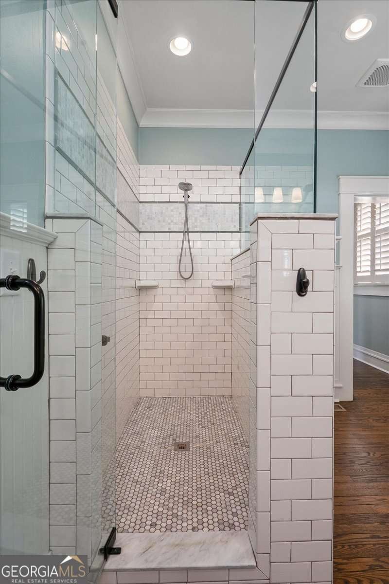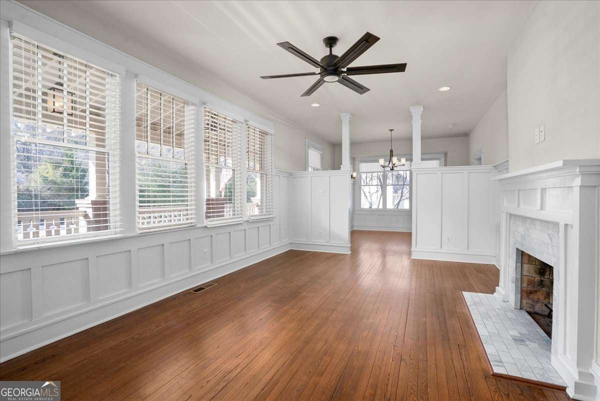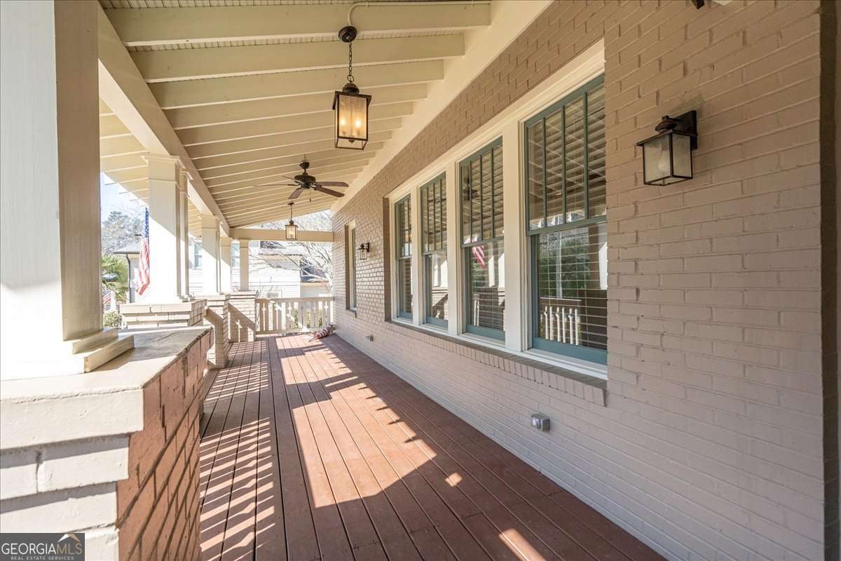 Located in one of the most prestigious areas of Athens, this exceptional Five Points craftsman-style home offers timeless character, paired with modern comfort. Featuring 5 bedrooms and 4 full baths, this home welcomes you with a spacious covered front porch showcasing a tongue- and -groove beadboard ceiling-the perfect place to relax and enjoy the neighborhood charm. Inside, abundant natural light highlights beautifully refinished oak hardwood floors through the main living spaces. The expansive living room, anchored by a wood-burning fireplace, flows seamlessly into a formal dining room, creating an ideal layout for both entertaining and everyday living The Chefs kitchen opens to a generous breakfast area with a second wood-burning fireplace, providing warmth and functionality at the heart of the home. The main-level owner's suite features French doors leading to a large rear deck, a spacious tiled bath with a walk-in shower and an oversized walk-in closet. A secondary bedroom provides flexibility for guests, office space or multigenerational living, and full guest bath complete the main floor, Upstairs you will find three additional large bedrooms, two tiled baths, a sizable laundry room with utility sink, and a versatile common area ideal for work play or relaxation. Included with the property is a utility/storage shed - 16 by 10- and as well a large storage area in the area above the carport. Additional highlights include solid wood interior doors, extensive crown molding and built in shelving through. Enjoy the charm, walkability and lifestyle that make Five Points one of Athens most sought-after locations- and discover a home designed to be lived in and loved for years to come.