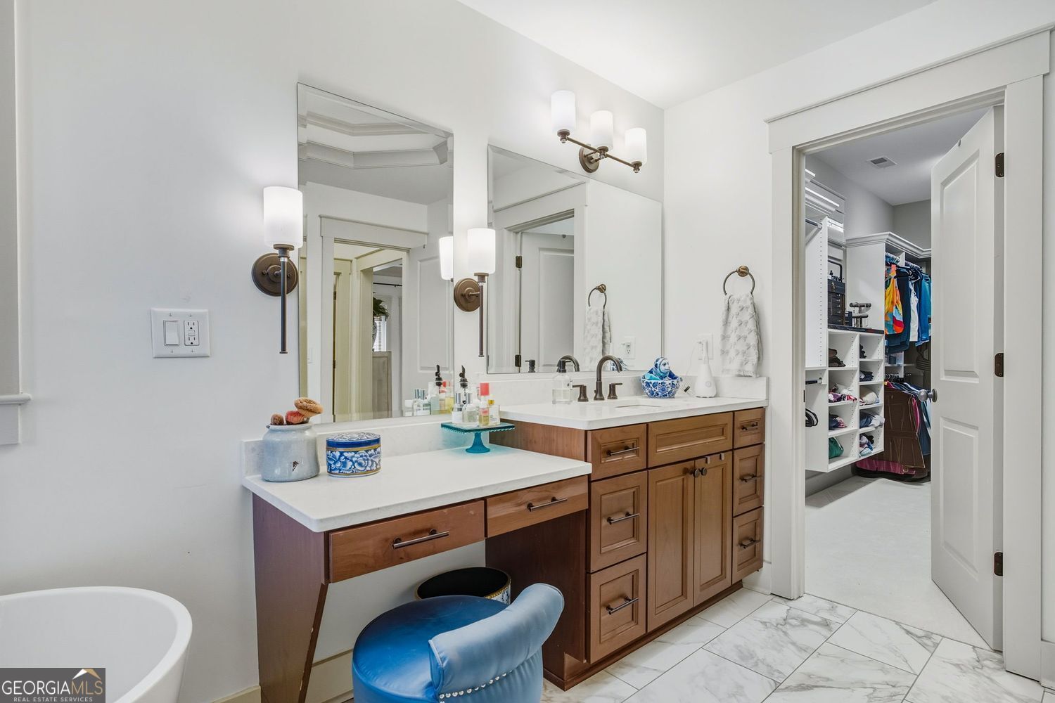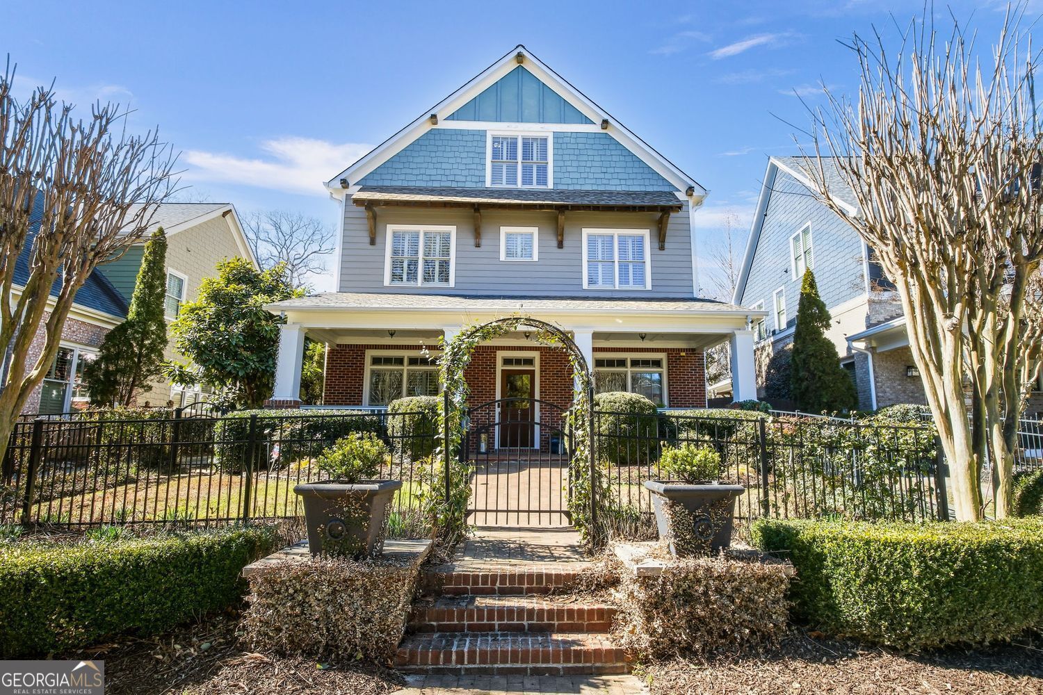 The moment you enter this impeccable 4-bedroom, 3.5-bathroom Craftsman residence you will feel at home. Perfectly situated in the vibrant heart of Smyrna and thoughtfully designed by Hatcher Builders for modern living, this home blends classic architectural charm with contemporary amenities and superior quality finishes. Step inside to discover an inviting open floor plan bathed in natural light, anchored by a spacious living area with beautiful custom millwork including coffered ceiling, detailed built-ins, and a cozy fireplace -- perfect for both daily living and entertaining. The gourmet kitchen is a chef's dream, featuring high-end appliances, generous counter space, a large center island with breakfast bar, and designer cabinetry that complements the home's Craftsman style. Whether hosting friends or enjoying a quiet evening in, this space was designed to gather and connect. Upstairs, the oversized primary suite serves as a serene and luxurious retreat, complete with a sitting area, tray ceiling, and French doors that open to Juliet balconies. Dual custom closets with built-in cabinetry provide exceptional storage, while a newly-renovated spa-inspired bath elevates daily living with heated floors, separate his and hers vanities and toilets separated by a stunning double walk-in shower, and a soaking tub for relaxation. Two additional bedrooms, a shared full bath, and a convenient laundry room complete the second level. The third level offers a private bedroom, full bath and flex space which is ideal for office, media or workout room. Outside, the fully fenced backyard offers both privacy and versatility, complete with an electronic gate for easy access. The deep lot presents endless possibilities - including ample room to design your dream pool and outdoor oasis - while still providing space for pets and play. Front and back are accented with landscaping lighting, and an irrigation system helps keep your property looking its best! Smyrna is THE PLACE to live! Located within walking distance to vibrant downtown Smyrna's shops, restaurants, and parks, this home offers the perfect balance of community and convenience. Just across the street is Brinkley Park, and less than a mile away, Tolleson Park is undergoing a remarkable renovation featuring a heated competition pool, family recreational pool, splash area, and waterslide. With exciting plans underway for Smyrna's dynamic downtown redevelopment, this is truly a special opportunity to enjoy refined Southern living in one of Metro Atlanta's most sought-after communities.
