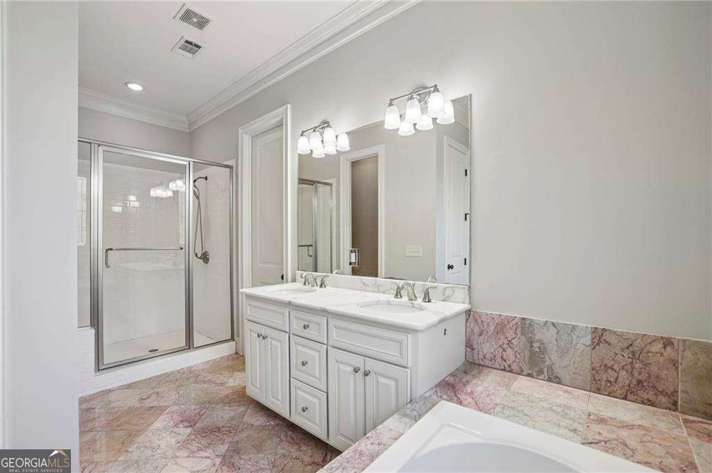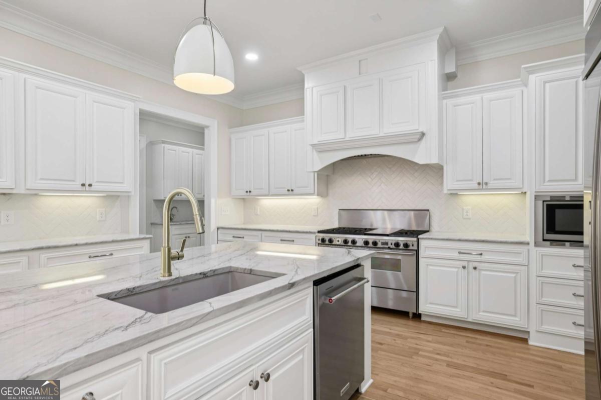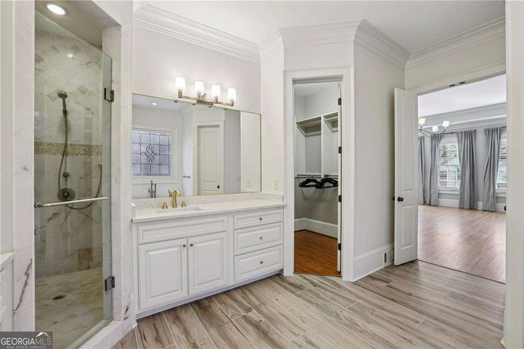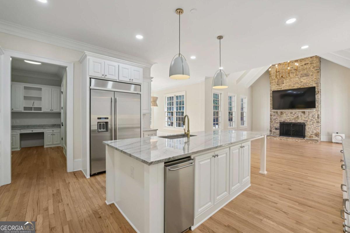 The Perfect Vinings Retreat - Priced BELOW Recent Appraisal!! Luxury, Privacy, and Effortless Entertaining Inside the Perimeter. Tucked quietly on a private side street inside I-285 off Woodland Brook, this exceptional custom brick manor offers the rare combination of peaceful retreat and unbeatable access to both Buckhead and Vinings Jubilee. Set on an expansive 0.86-acre lot, the home delivers timeless curb appeal outside and a fresh, sleek interior designed for modern luxury living. From the moment you enter, the scale and craftsmanship are unmistakable. 10-foot ceilings and 8-foot doors on all three levels create an airy, open feel, while thoughtfully designed living spaces flow beautifully for both daily living and grand entertaining. At the heart of the home, the chef's kitchen is built to impress, featuring a 48-inch Five Star gas range, oversized center island, butler's pantry, and separate walk-in pantry. The kitchen opens seamlessly to the breakfast room and vaulted keeping room with a dramatic stone fireplace, which flows into the spacious family room. Multiple French doors lead out to the main-level terrace, creating an effortless indoor-outdoor connection perfect for gatherings of any size. The backyard transforms the property into a true private resort. A custom pool anchors the outdoor living space, complemented by synthetic turf for year-round play, a built-in trampoline, and a separate basketball court, all framed by surrounding backyards that maintain privacy without isolation. The main-level owner's suite provides a true sanctuary, complete with tray ceiling, dual vanities, spa-like bath, and two generous walk-in closets. Upstairs, four en-suite bedrooms provide comfort and privacy for family and guests alike. The finished terrace level expands the lifestyle possibilities even further, featuring a large in-law or au pair suite, state-of-the-art home theater with centralized control system, exercise studio, game room, and direct access to the basketball court-while still leaving ample unfinished storage space. Additional highlights include: * Elegant foyer flanked by a private living room or office with fireplace and formal dining room * Pre-planned elevator shaft for future access to all three levels * Two laundry rooms, conveniently located on main and upper floors * Exceptional build quality and thoughtful custom details throughout * Lower Cobb County taxes with close-in Vinings convenience This is more than a home-it's a private retreat offering luxury, space, and lifestyle, all within minutes of Atlanta's premier shopping, dining, and business districts. A rare opportunity in one of Vinings' most desirable inside-the-perimeter locations.