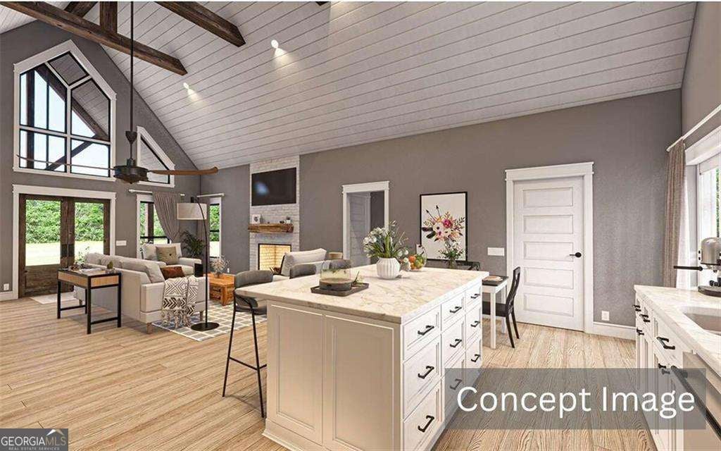 Welcome to this custom-designed mountain retreat currently being built in the gated community of Creekside Crossing in Talking Rock. This is more than just another cabin - it's a thoughtfully crafted, versatile getaway where no detail has been overlooked and every design choice reflects quality, intention, and timeless mountain elegance. Set on 3.76 gently rolling acres, this 4-bedroom, 3-bath home blends elevated craftsmanship with warm, inviting charm. The main level offers effortless living with a spacious primary suite designed as a true retreat, and two additional bedrooms with two full baths. The open-concept kitchen and great room flow seamlessly together, creating the perfect setting for entertaining, relaxing by the fire, or simply enjoying peaceful mountain views. A well-positioned laundry room/mudroom on the main level adds everyday convenience. The fully finished terrace level nearly doubles your living space, featuring a stunning open living area with full wall wet bar, plus two additional bedrooms, a full bath, a generous recreation area - ideal for guests, extended family, or a secondary living space. Whether you envision game nights, movie evenings, or hosting long weekend visitors, this lower level offers both flexibility and comfort. Outdoor living truly shines here. Expansive covered porches and decks invite you to unwind and take in the natural beauty surrounding you. From morning coffee to sunset gatherings, the setting feels private, serene, and intentionally designed to embrace the mountain lifestyle. Creekside Crossing offers a gated, amenity-rich mountain experience with access to Talking Rock Creek, UTV-friendly and hiking trails, and a brand-new clubhouse featuring a sundeck and infinity pool with breathtaking mountain views. Just minutes from Carter's Lake and conveniently located near Ellijay, Jasper, and Blue Ridge - with an easy drive to both Atlanta and Chattanooga - this home offers the rare combination of privacy, craftsmanship, recreation, and accessibility, making it ideal as a full-time residence, luxury getaway, or investment opportunity. *Lighting, quartz countertops and quarts backsplash, fixtures, and fireplace stonework have been added since pictures were taken. Also exterior entryway and back lower level sitting area have added stacked stone veneer. The result is a truly breathtaking home where no detail has been overlooked. (Images marked "Concept Images" are for illustration purposes only. Actual finishes and selections may vary).