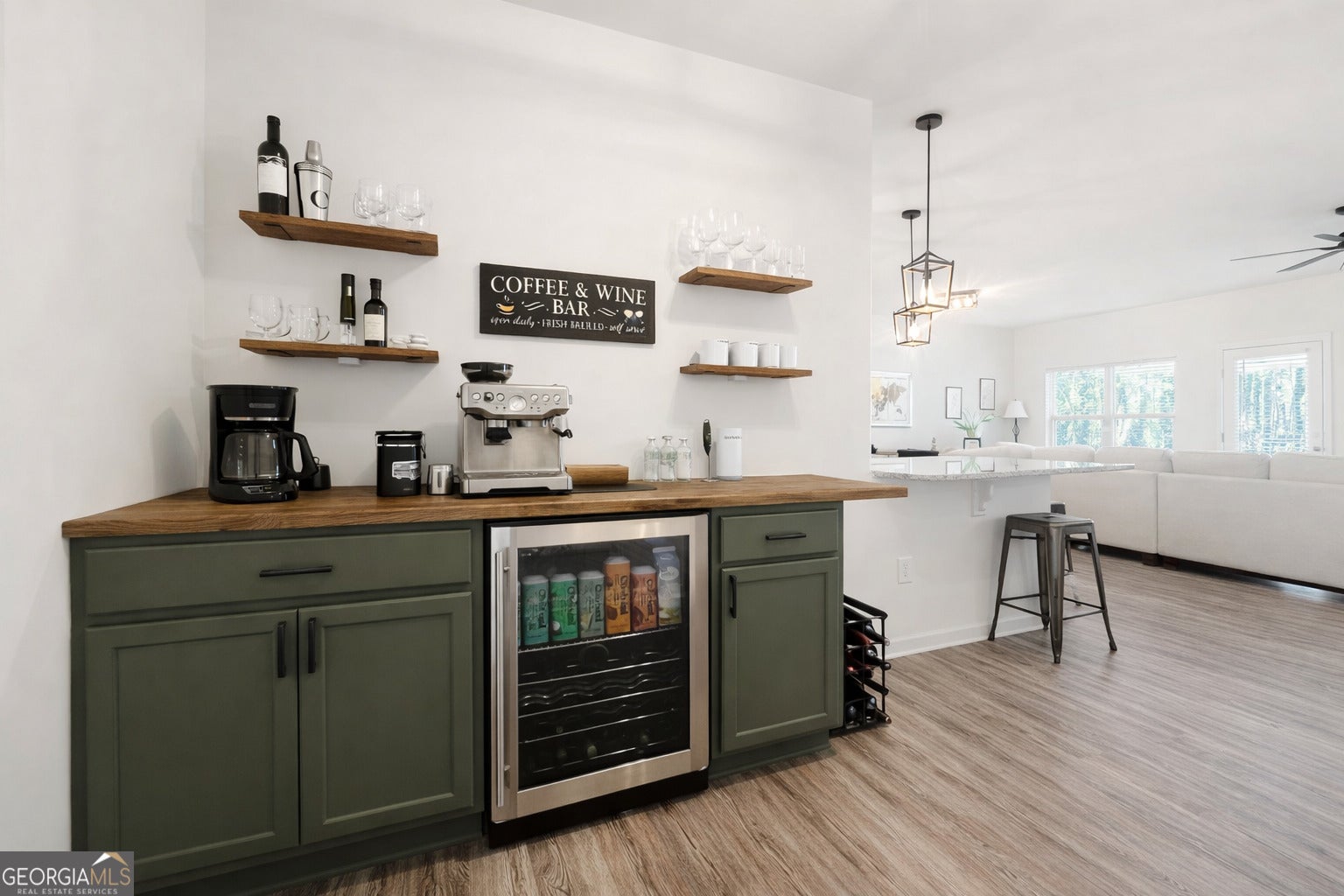 Welcome to effortless living in the desirable Berwick West neighborhood of West Rome! This charming one-level craftsman ranch offers the perfect blend of style, comfort, and functionality in an established, sought-after community. Featuring 3 bedrooms and 2 baths, the open-concept floor plan is designed for both everyday living and entertaining. The spacious kitchen sits at the heart of the home with a large island, ideal for gathering, meal prep, and hosting. A custom built-in coffee bar adds a touch of personality and convenience, while upgraded light fixtures and thoughtfully designed closets elevate the home's modern appeal. The inviting electric fireplace creates a warm, cozy ambience-perfect for relaxing evenings at home. This wonderful home also includes solar panels, a valuable energy-efficient upgrade that can help reduce utility costs while supporting sustainable living. Step outside to enjoy the inviting outdoor space with a level yard-perfect for entertaining guests, relaxing in the early evening, or simply unwinding in your private backyard retreat. The attached 2-car garage provides added convenience and storage. Located in an established West Rome neighborhood, this move-in ready Craftsman ranch is a must-see for anyone seeking comfort, style, and one-level living at its best.
