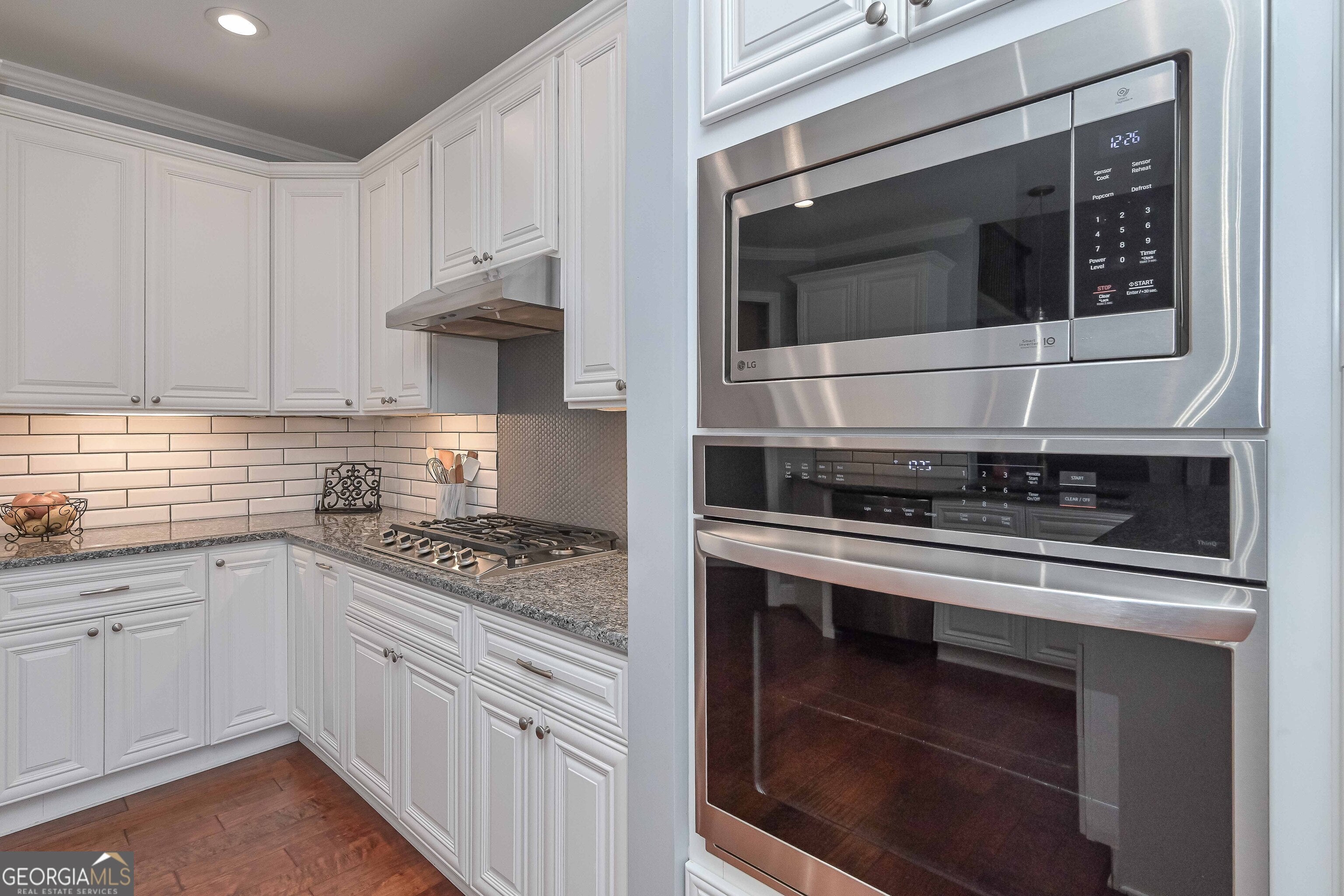 - AppliancesCooktop, Dishwasher, Gas Water Heater, Microwave, Oven (Wall), Stainless Steel Appliance(s)