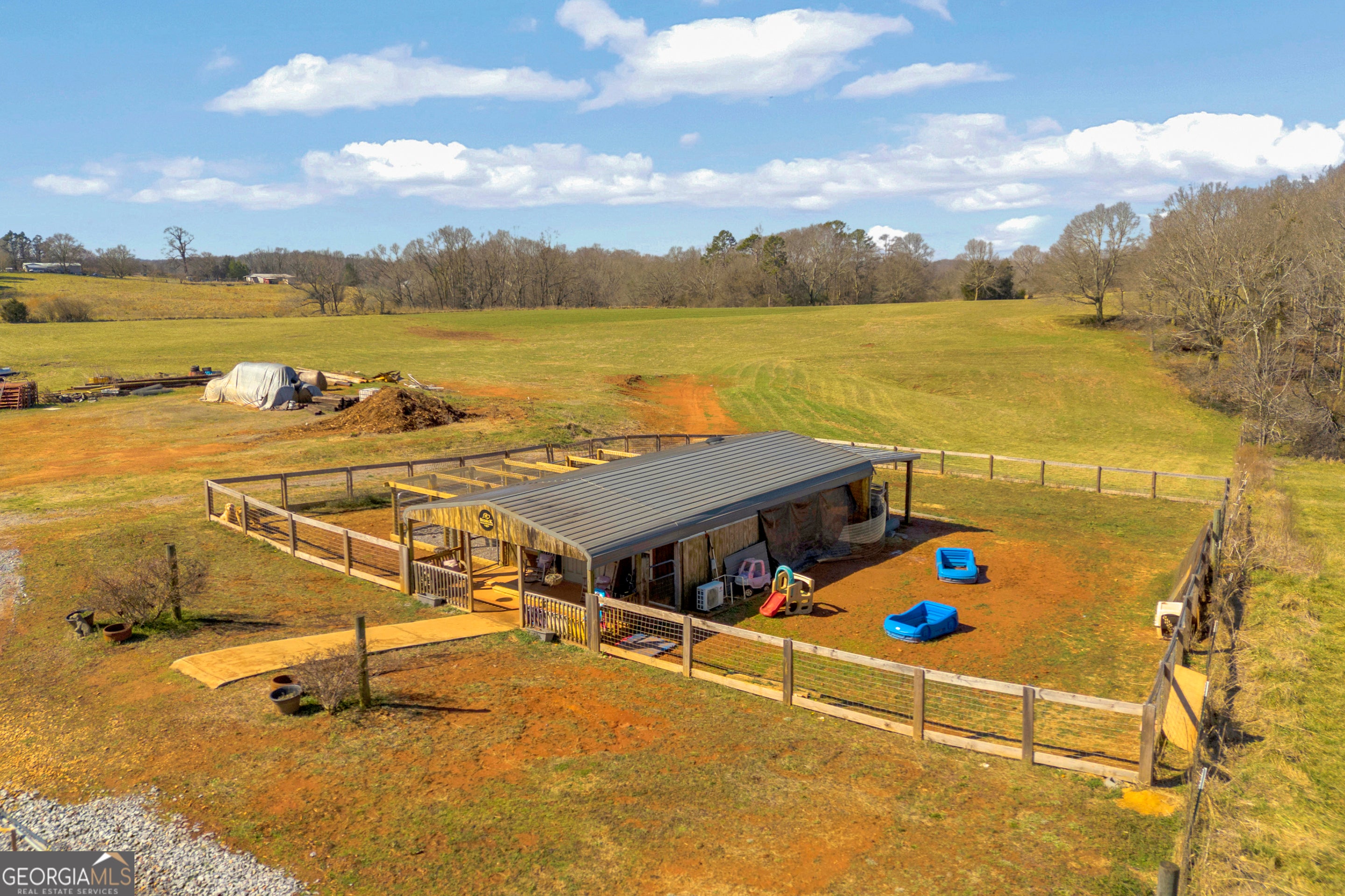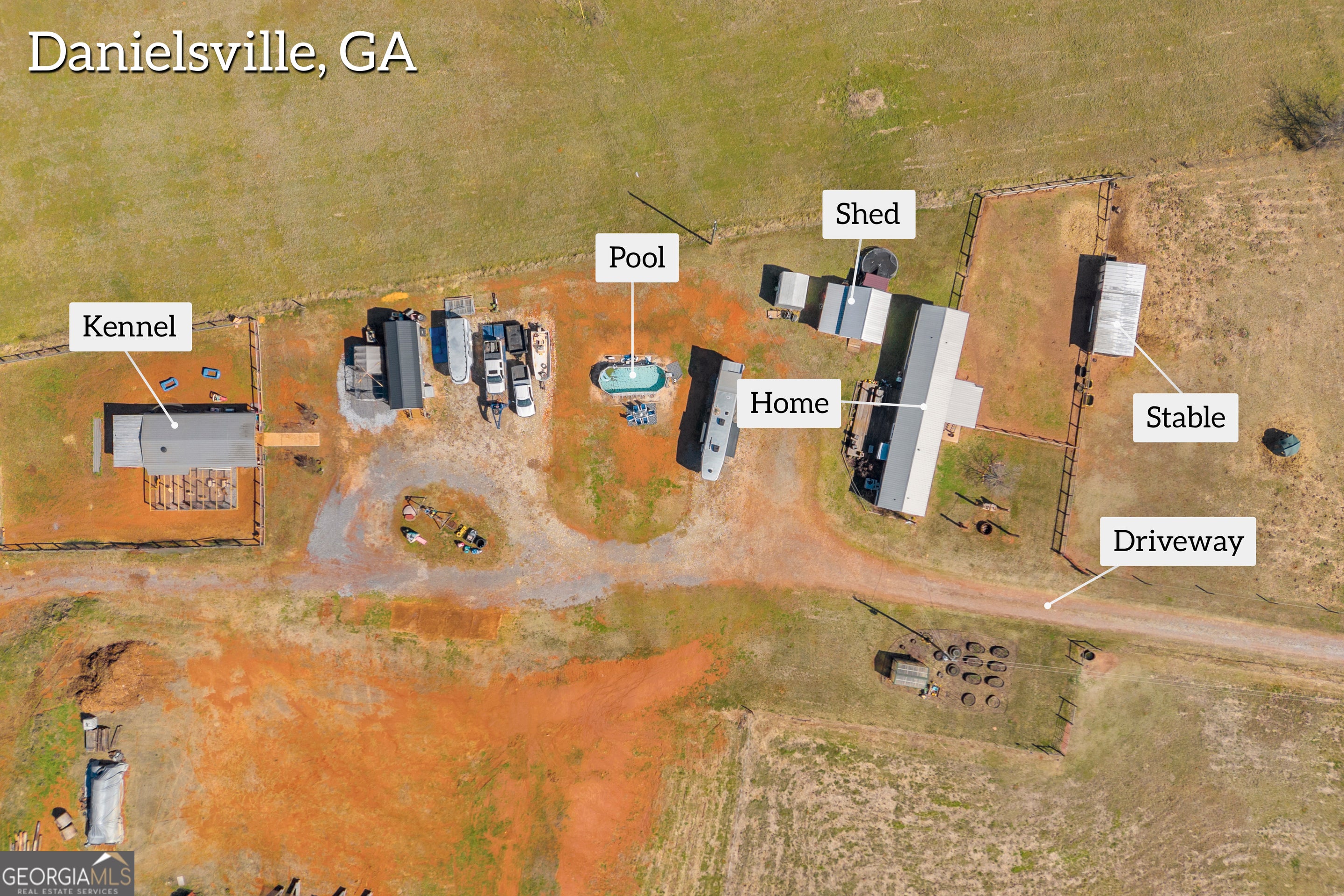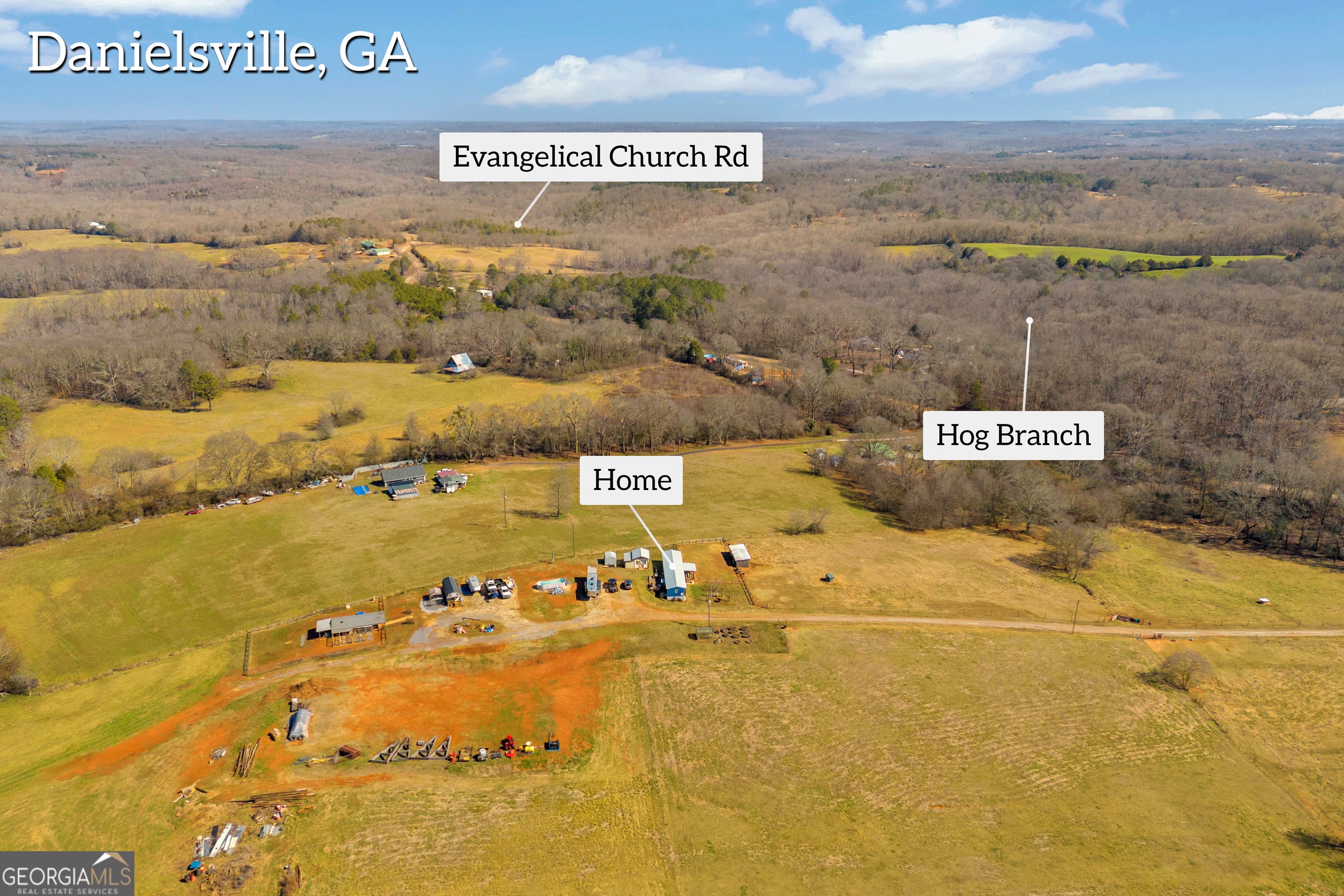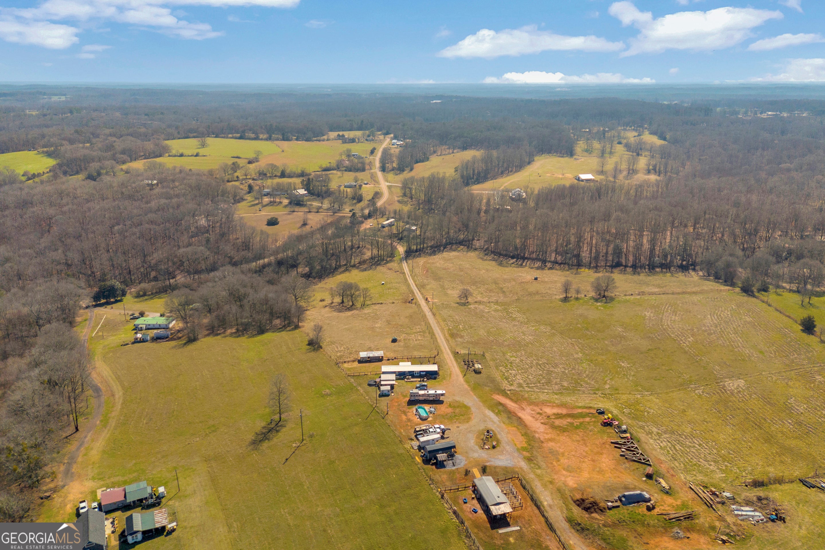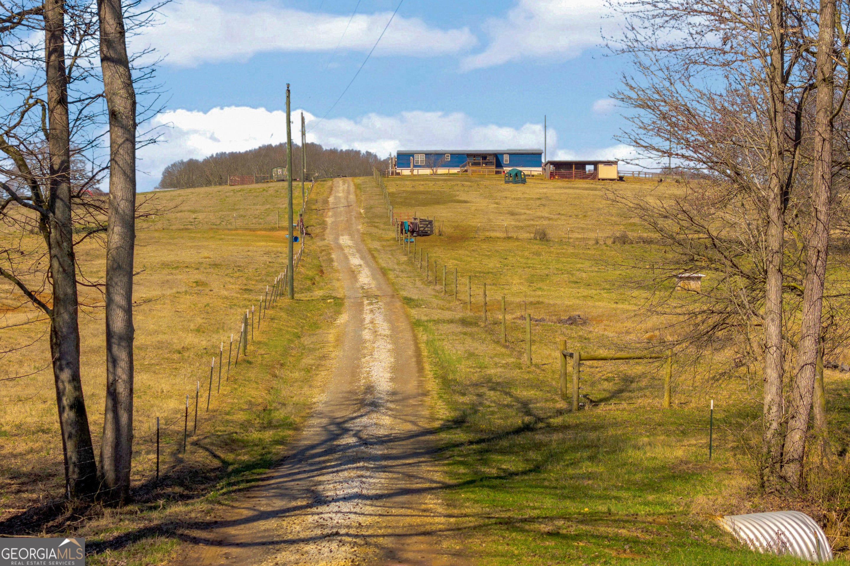 Escape to your own private retreat with this 34.92-acre property in Danielsville. This 3-bedroom, 2-bath mobile home sits atop a scenic hill, offering beautiful views overlooking the rolling acreage below. A gated entrance welcomes you to a versatile property featuring a kennel, stable, shed, and established fire pit area-well-equipped for farm life, horses, or private recreational use. The majority of the acreage is cross-fenced and perimeter-fenced, making it ideal for livestock or equestrian pursuits. A large cleared area provides excellent potential for a future barn, riding arena, or additional improvements. A picturesque creek flows along the front of the property, enhancing its scenic appeal and tranquil atmosphere. With a blend of open pasture and wooded surroundings, this property offers endless possibilities for hobby farming, recreation, or enjoying a quiet country lifestyle just a short drive to town. Property is currently enrolled in CUVA.