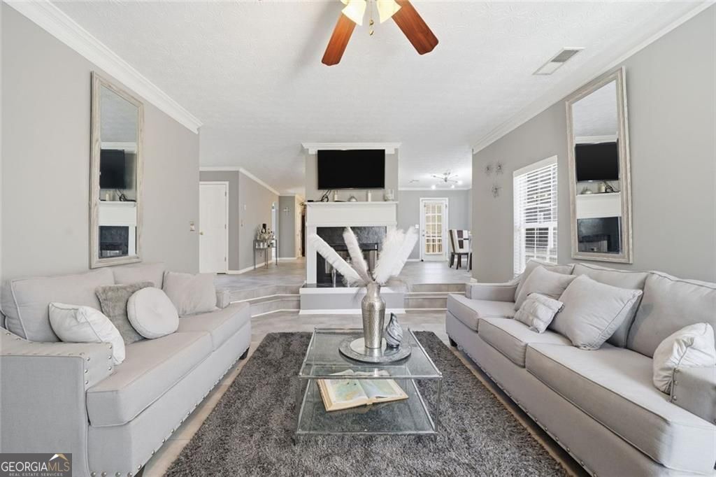 Welcome to Ellenwood Village! Discover this beautiful, well-maintained home in Ellenwood with a motivated seller! Enjoy peace of mind with a new roof (2023), water heater (2023), and septic tank lines (2025). The open floor plan features newer flooring (2023), perfect for entertaining. The sunken living room, anchored by a double-sided fireplace, serves as a relaxing focal point for multiple living areas. A separate laundry room offers ample space for a folding table. The spacious primary suite includes a dedicated sitting room, creating a tranquil retreat. Set on over half an acre, the property boasts a deck that overlooks a serene, wooded backyard, providing an ideal space for relaxation and outdoor enjoyment. Swim/Tennis community & There are two parks within walking distance. Don't miss this gem! This home qualifies for up to $6,000 in down payment or closing cost assistance for eligible buyers. Ask for details!