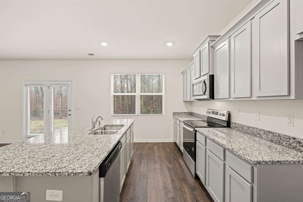 The Hamlin Plan at Oak chase at Hampton by DR Horton - FEB 2026 COMPLETION! APPLIENCE PACKAGE INCLUDED WITH A MARCH CLOSING. 100% FINANCING AVAILABLE!! AMAZING RATES AND UP TO 10K CLOSING COST!!! PRIVATE INTIMATE COMMUNITY. Where Functionality Meets Style - Step into the Hamlin, a beautifully designed home that blends modern style, everyday functionality, and timeless charm. This spacious two-story floor plan features 4 generously sized bedrooms, 2.5 well-appointed bathrooms, a versatile loft area, and a flex space ideal for a home office, playroom, or an additional dining area. At the heart of this home you find an oversized kitchen, showcasing a large island with quartz countertops, tile backsplash, stainless steel appliances, and abundant counter space, perfect for casual family meals or entertaining guests. The open concept layout connects the kitchen seamlessly to the main living and dining areas, creating a welcoming and cozy atmosphere. Upstairs you'll find the owner's suite, featuring dual vanities, a luxurious spa like shower, and a huge walk in closet with ample of space. Additional features include faux wood blinds throughout and an industry leading smart home technology package, keeping you connected and in control whether you're home or away. Located with easy access to I-75, offering a short commute to Atlanta Motor Speedway, and is just minutes from shopping, dining, and everyday conveniences, making it the perfect combination of suburban comfort and city accessibility. Experience the comfort, space, and thoughtful design of the Hamlin Plan, a place you'll love to call home. Henry County Schools. STOCK PHOTOS