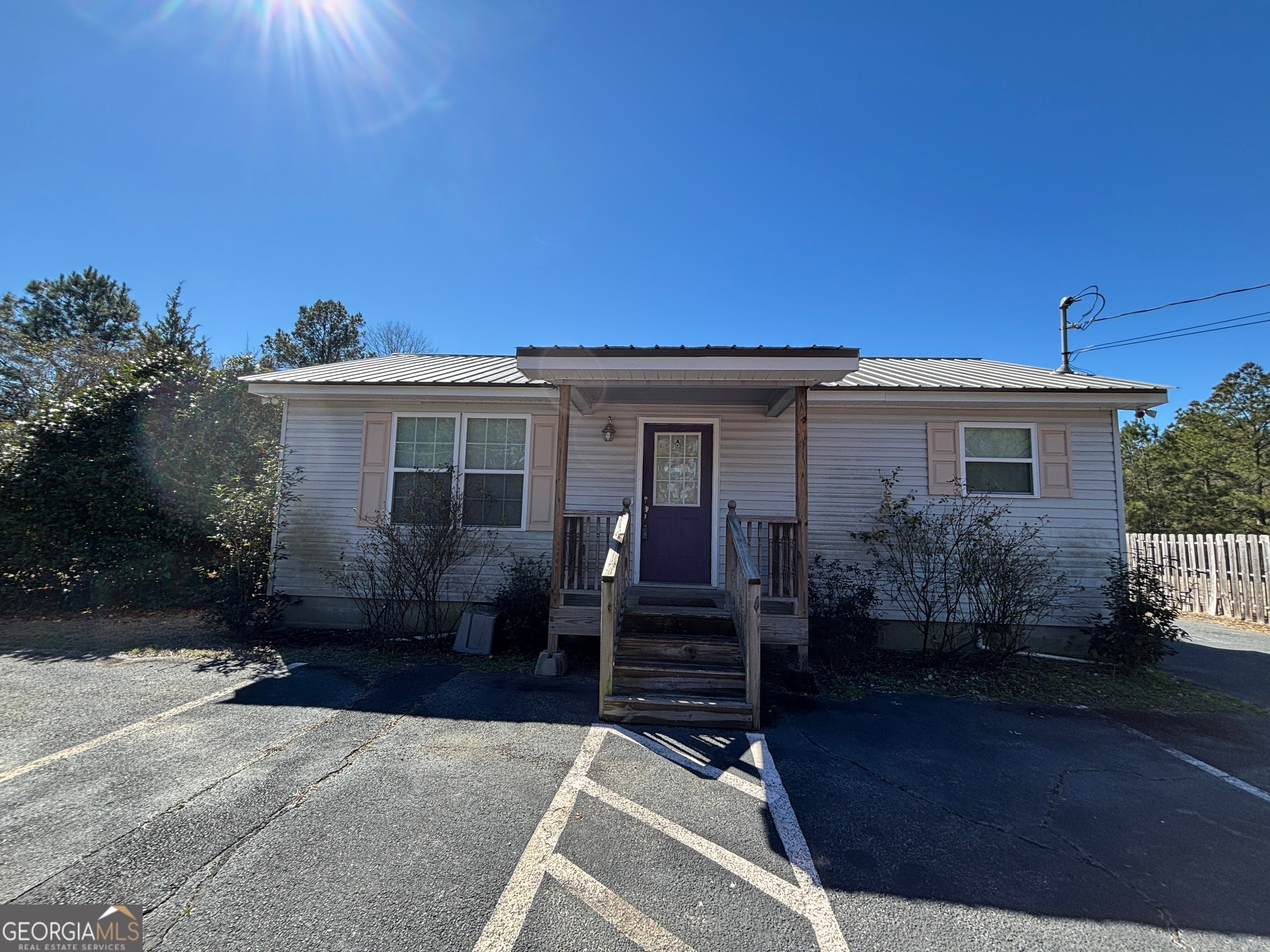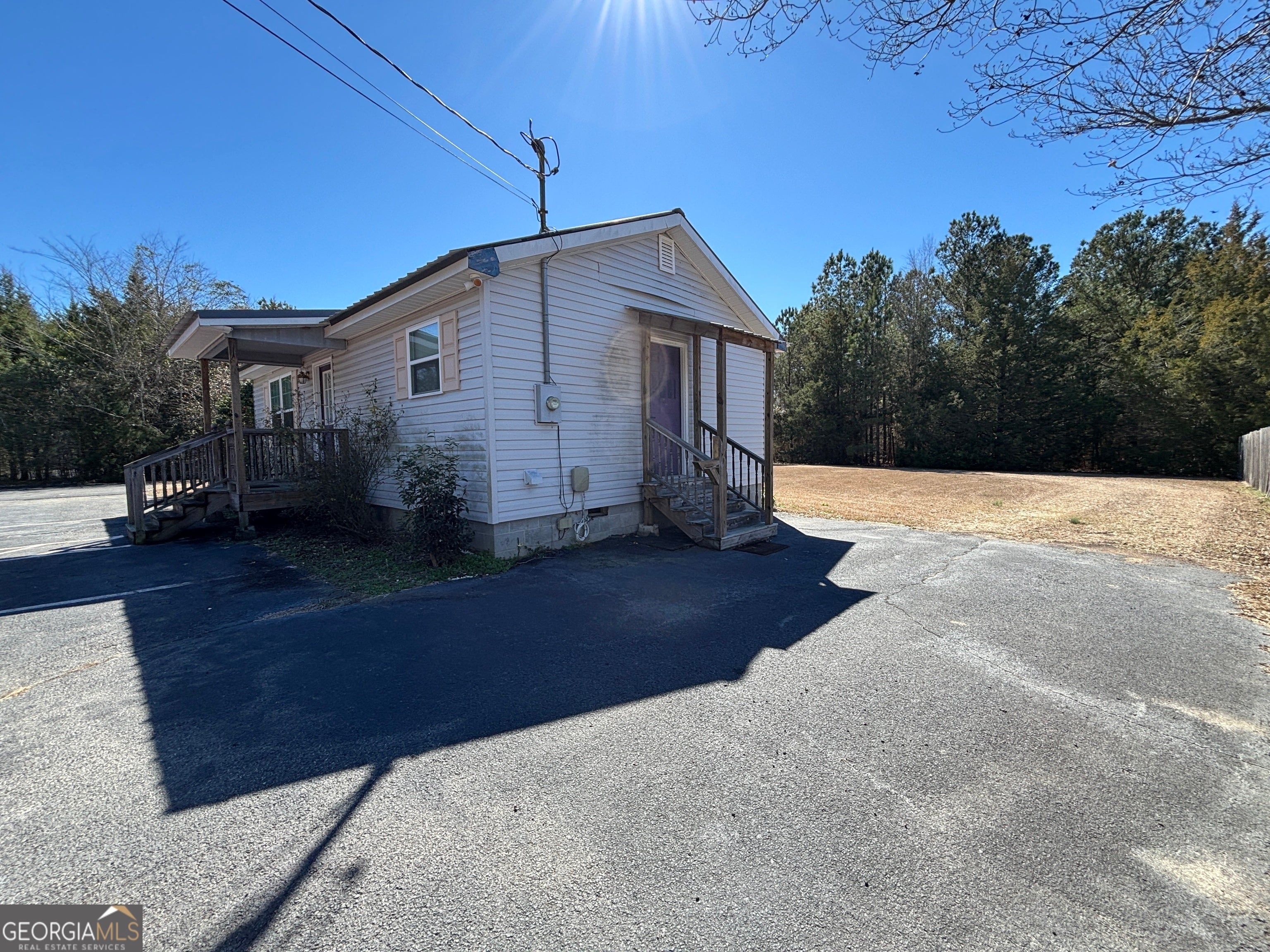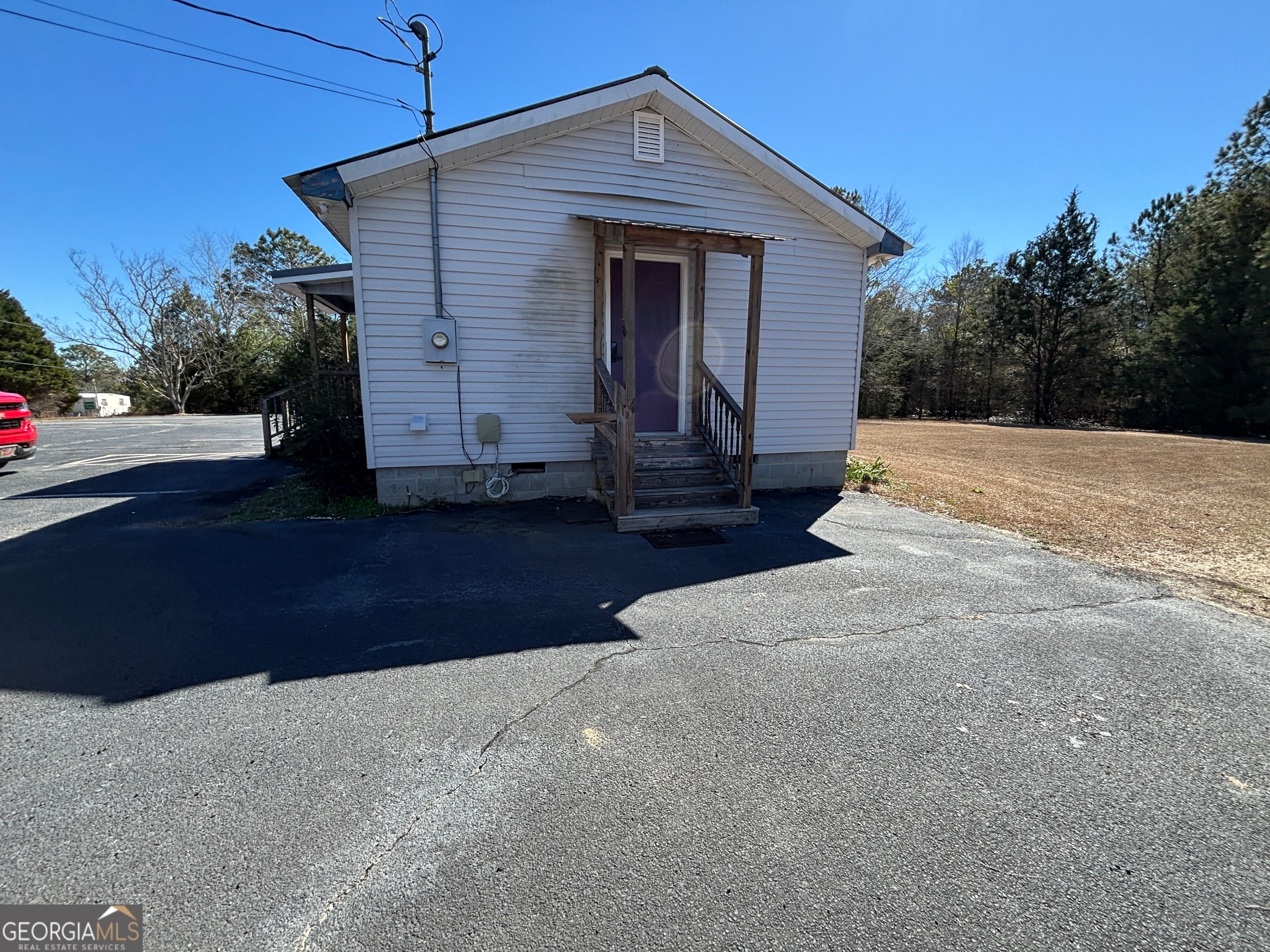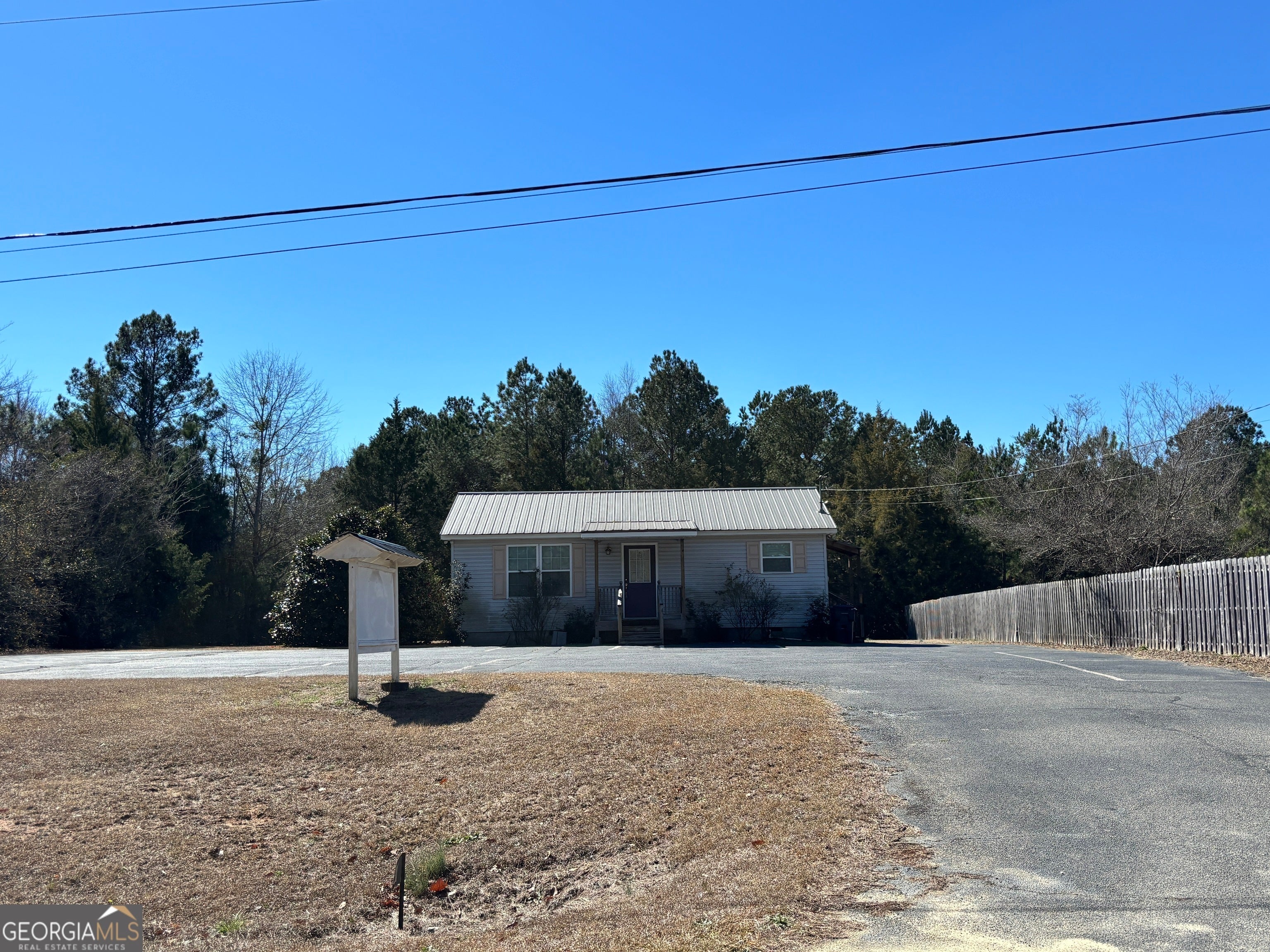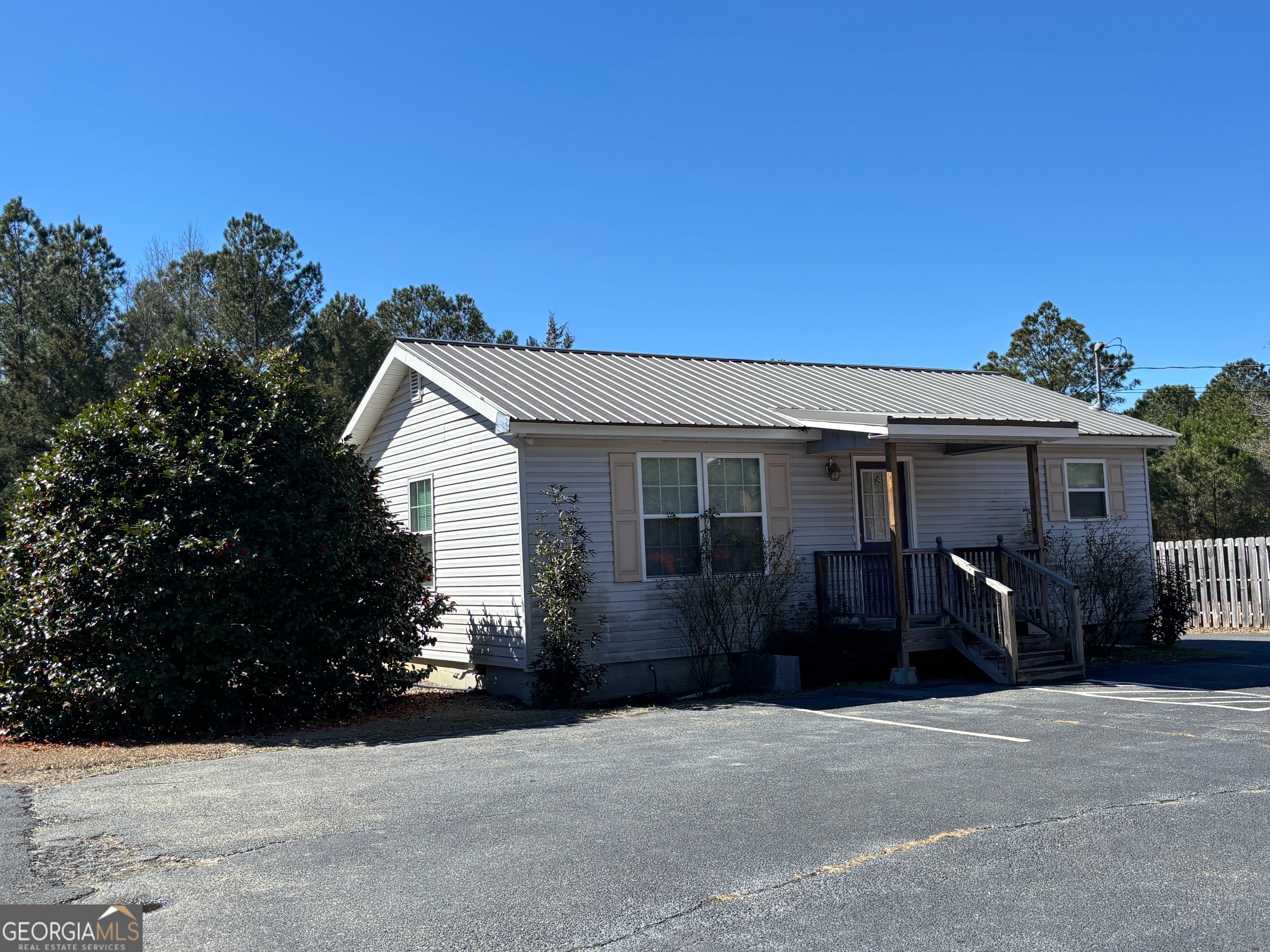 Recently remodeled commercial location with paved parking on .51 acre of land. Structure has aprox 704 Sq ft of heated & cooled space. Interior walls are not load bearing and can be easily removed or modified. Included are: a water closet (toilet & sink), a mechanical closet w/updated hot water heater, front room and two smaller rooms along with 4th room that has updated HVAC, panel box sink, washing and dryer hooks. New steel roof, front porch, side entry porch. Location perfect for office (car lot, tax/cpa, storage building sales, even dr office) hair salon or spa (water hook ups underneath for easy tie ins) doggies spa or day care (large lot) and so many more options. Outside the city limits. City water and septic system. No city taxes