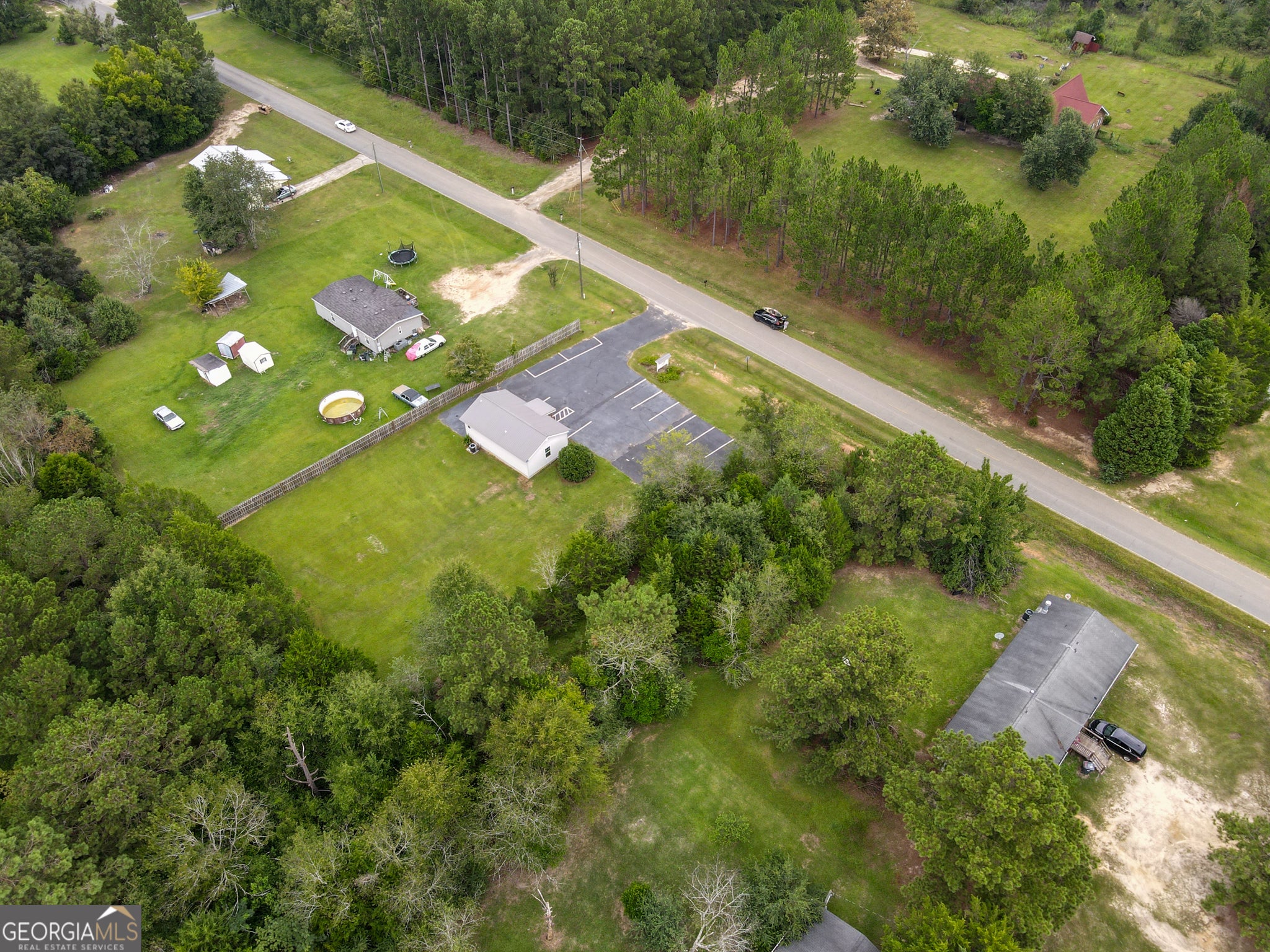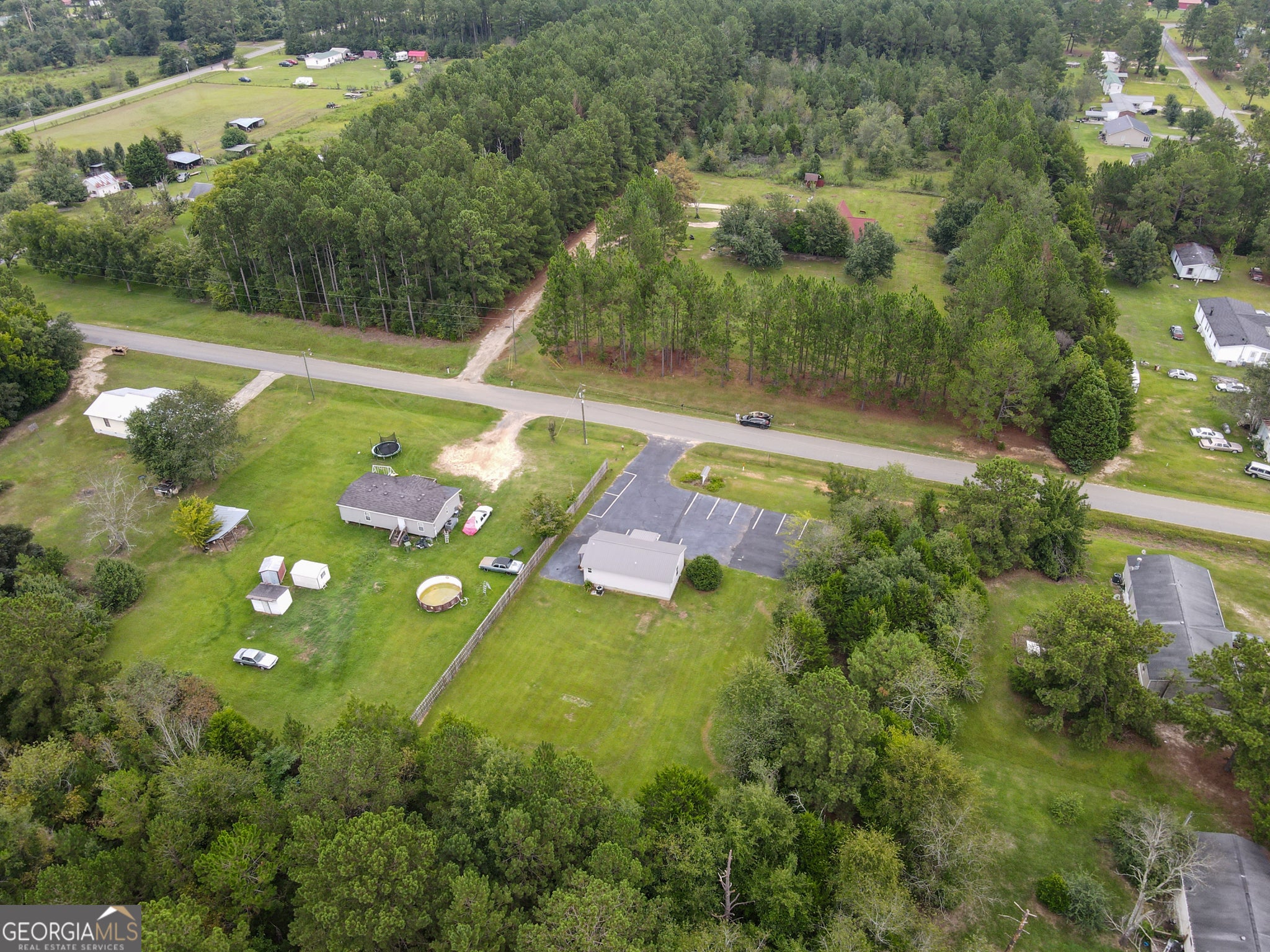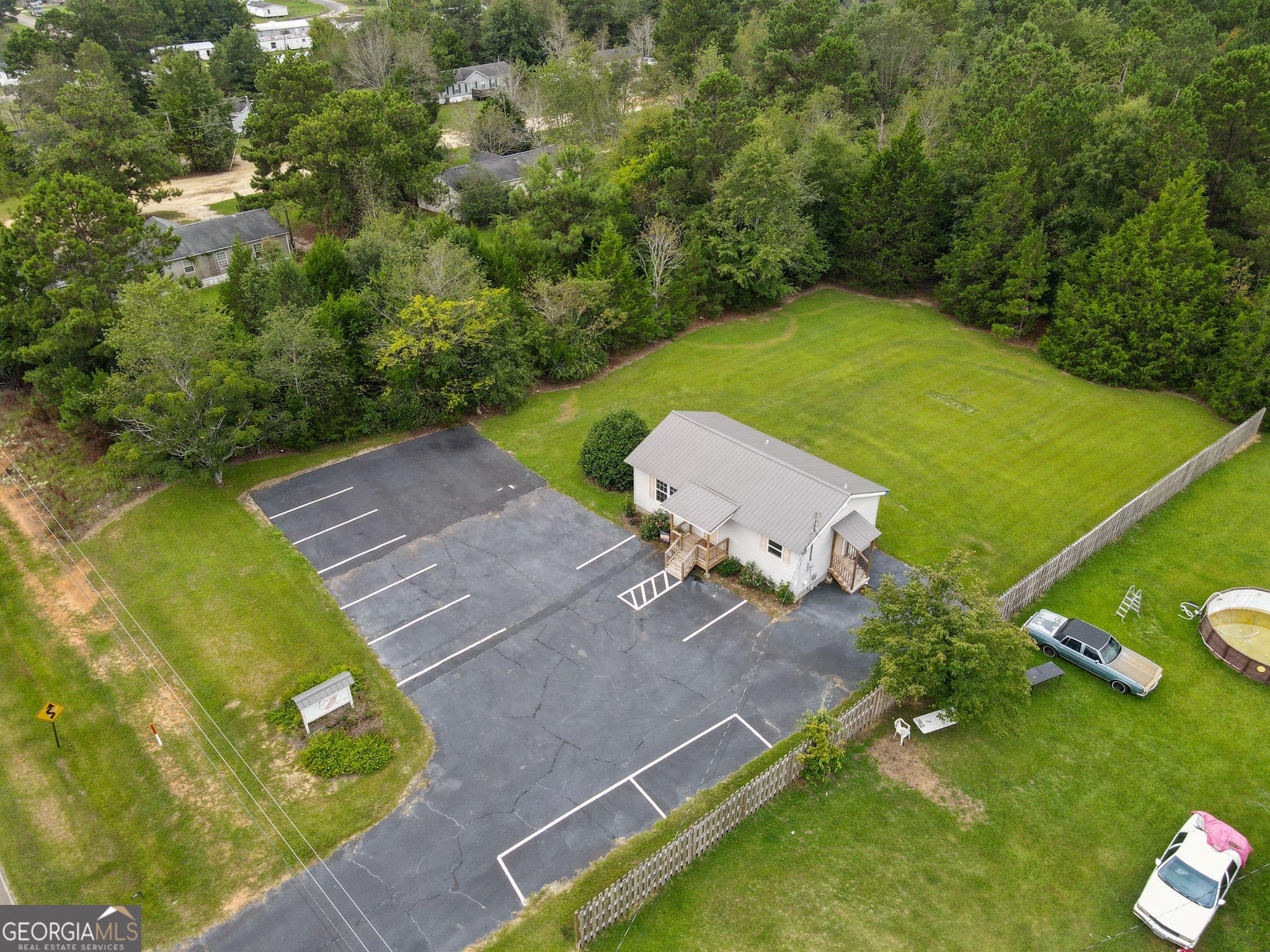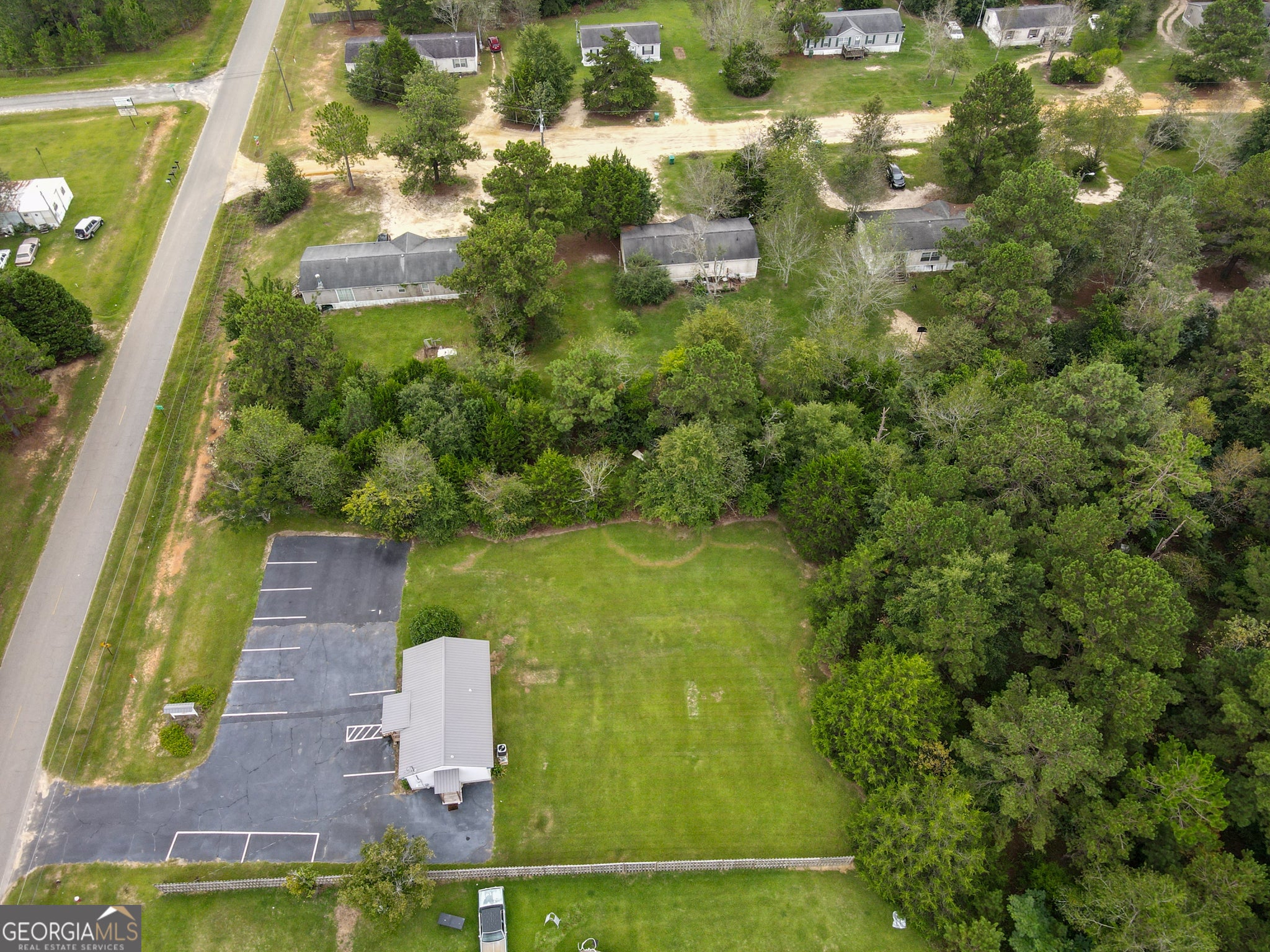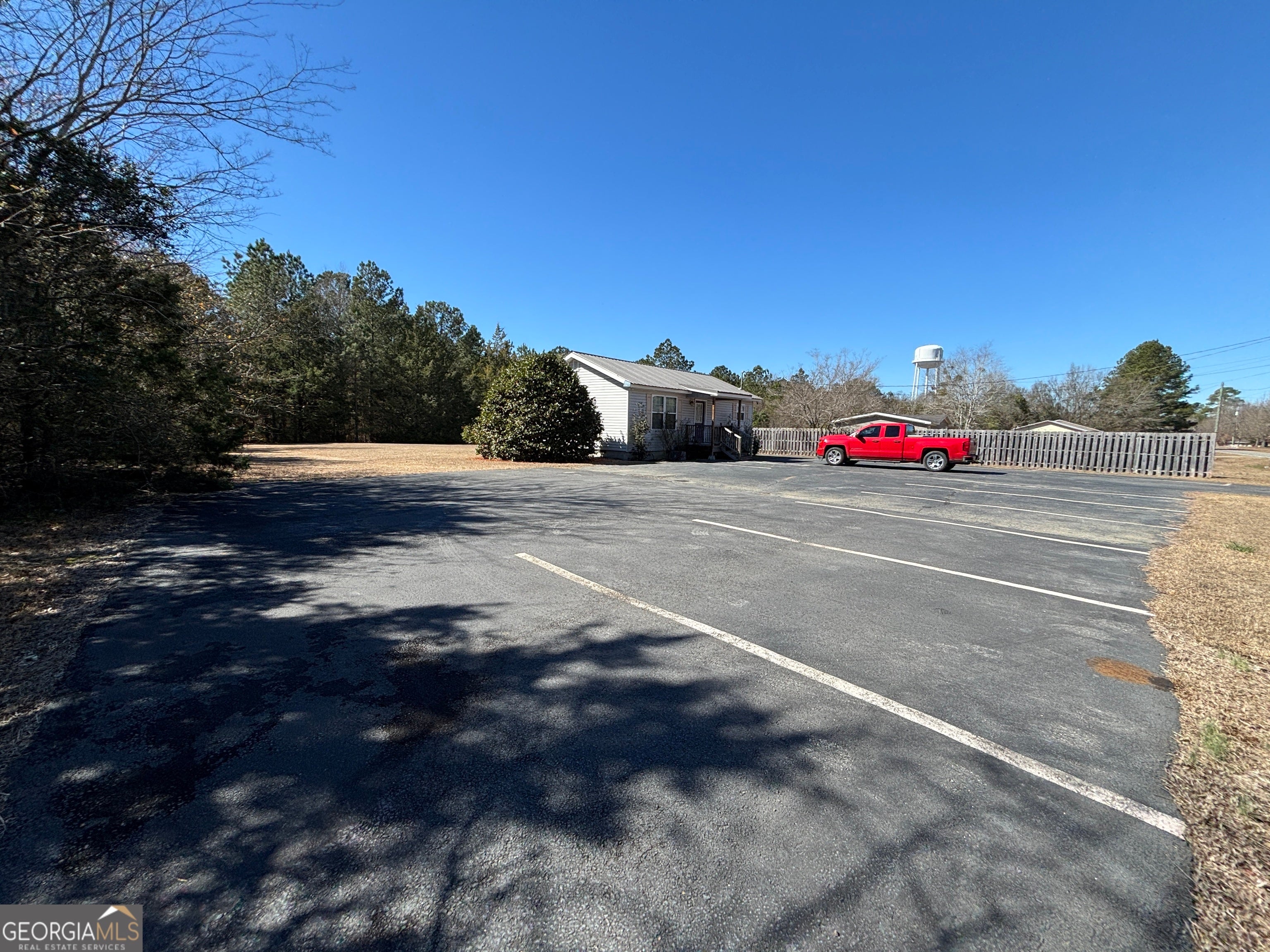 Recently remodeled commercial location with paved parking on .51 acre of land. Structure has aprox 704 Sq ft of heated & cooled space. Interior walls are not load bearing and can be easily removed or modified. Included are: a water closet (toilet & sink), a mechanical closet w/updated hot water heater, front room and two smaller rooms along with 4th room that has updated HVAC, panel box sink, washing and dryer hooks. New steel roof, front porch, side entry porch. Location perfect for office (car lot, tax/cpa, storage building sales, even dr office) hair salon or spa (water hook ups underneath for easy tie ins) doggies spa or day care (large lot) and so many more options. Outside the city limits. City water and septic system. No city taxes