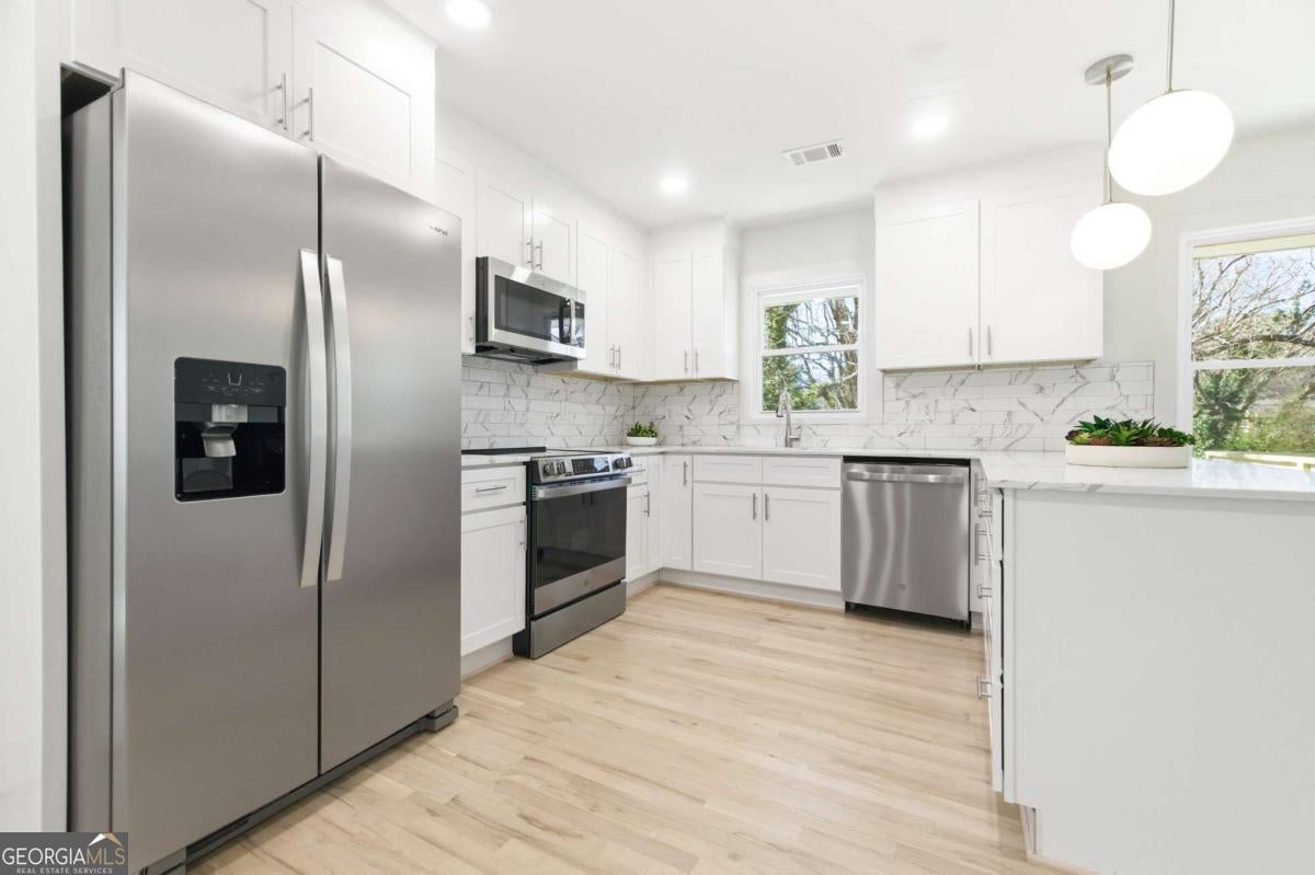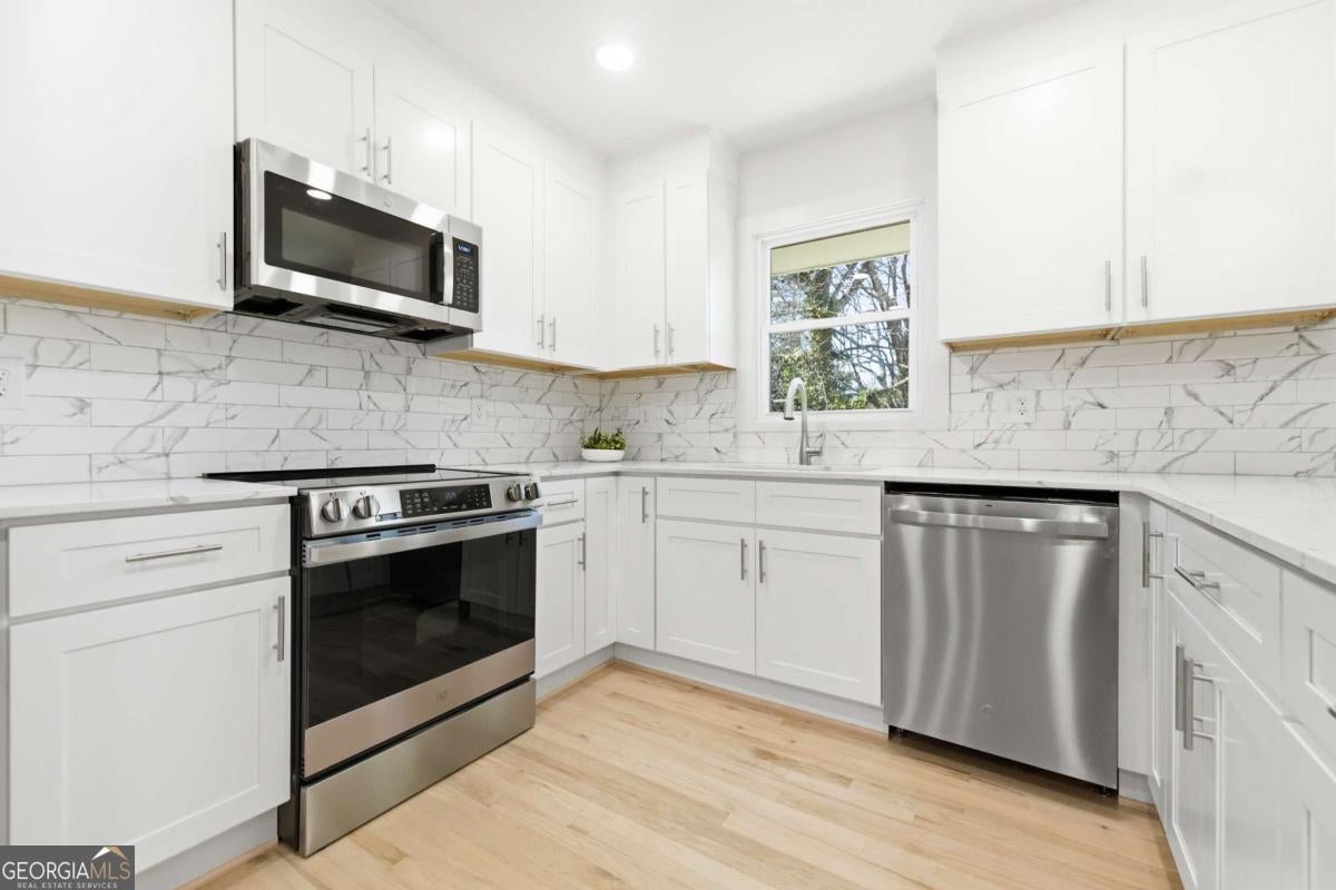 Everything's just about perfect in this adorable 3 bedroom, 2 bathroom ranch. It starts at the street with the visual appeal of solid brick construction with classic decorative wrought iron detailing on the front porch framed by a mature boxwood hedge. New gutters, new windows, new paint! Once inside it is bright and airy, filled with natural light and finished with tones of earth and sea, gorgeous REAL hardwood floors throughout! New electrical, new plumbing, new HVAC! White kitchen has stone countertops with new stainless steel appliances, including a gas range. The kitchen blends into dining room with dry bar and storage and which opens onto the back deck. Cook outside, play outside, live outside -- bring the outside in! Master bedroom has vaulted ceilings and a bay window, adding depth of space and character. Unique tile bathroom has dual vanity. Second bathroom is also beautifully tiled. Outside, the backyard is large, rectangular, flat and fully-fenced. It is ready for you to create a personalized space for playing, gardening, entertaining and/or enjoying nature. New deck descends to large patio and under-deck storage. Conveniently located, it's a breeze to get to Kirkwood, Oakhurst, downtown Decatur, downtown Atlanta, Emory University and I-20, from which you can get anywhere! Schedule your tour and come see this just about perfect home!