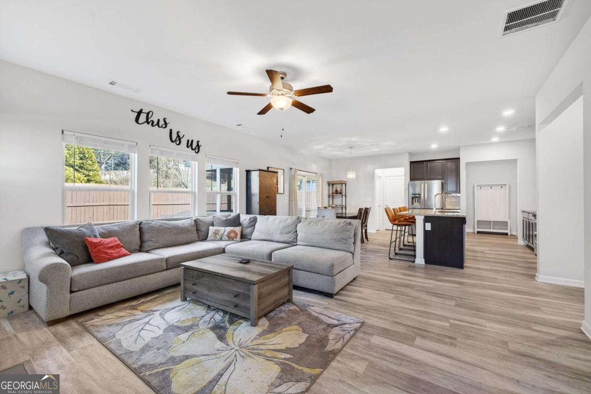 Marvelous Marietta Home This home qualifies for 100% financing, ask me how?- 1924 Azure Grove Ct Welcome to this like-new residence nestled in the sought-after Halleys Ridge community of Marietta. This beautifully designed 4-bedroom, 2.5-bath home offers a thoughtfully crafted open-concept layout perfect for modern living. The main level features a spacious flex room ideal for entertaining or a private home office. The Chef's Kitchen boasts an oversized island overlooking the great room and dining area, seamlessly flowing to a covered, screened patio-perfect for indoor-outdoor living. Additional highlights include a large walk-in pantry, a convenient mudroom off the owner's entry, a guest half bath, and rear stairs leading from the great room to the second floor. Upstairs, you'll find a generous loft space suited for lounging or working from home, surrounded by three well-sized secondary bedrooms and a conveniently located laundry room. The primary suite offers a deep, oversized walk-in closet and a spa-inspired ensuite with double vanities, a separate soaking tub, and a walk-in shower. Enjoy relaxing mornings on the charming front porch or unwind in the private, fenced backyard from the rear screened patio. Ideally located just minutes from casual dining, shopping, the scenic Silver Comet Trail, and Wellstar Kennestone Hospital, this home blends comfort, convenience, and community in one exceptional offering.
