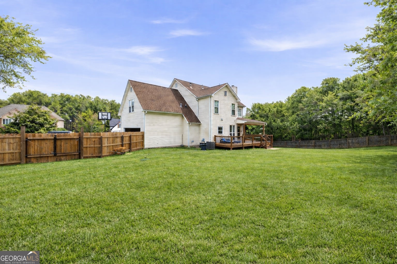 Welcome to this stunning 4-bedroom, 3.5-bathroom three-story home with a fully finished basement WITH A LARGE FAMILY ROOM. This beautifully maintained home features a formal dining room, a private office perfect for working from home, and a spacious bonus room that can easily serve as a media room, playroom, or flexible living space to fit your needs. The thoughtfully designed floor plan offers generous living areas filled with natural light, creating a warm and inviting atmosphere throughout. Step outside to enjoy the newly built covered back deck overlooking a private, fenced 0.79-acre lot-perfect for entertaining, pets, or simply unwinding in your own backyard retreat. Situated in a desirable community with swim and playground amenities, this home offers the perfect balance of convenience and privacy, with easy access to shopping, dining, and major highways.