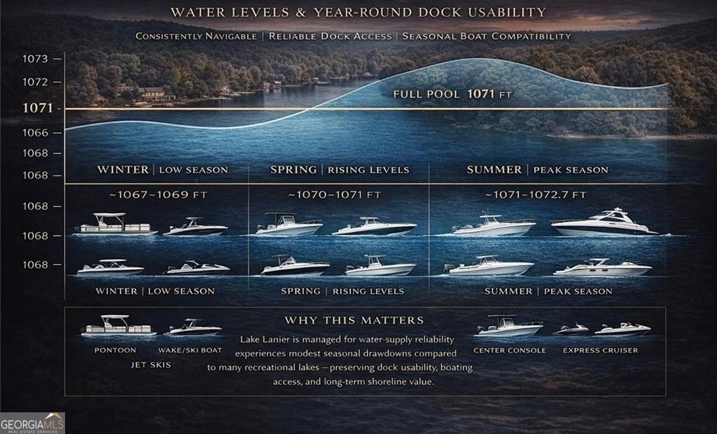 AFFORDABLE South Lake Lanier Living - Just 2 Miles from GA-400! Welcome to your move-in ready lakeside retreat. This FULLY REMODELED home is located in a secluded setting on Bald Ridge Creek, and has a PRIVATE single-slip DOCK with ELECTRICITY, giving you direct access to calm, peaceful waters ideal for fishing, paddleboarding, and kayaking. The craftsman-style exterior welcomes you with a circular driveway, oversized parking pad (perfect for a boat trailer or RV), and a charming wraparound porch. Inside, the open-concept main level showcases beautiful new luxury vinyl floors and expansive windows overlooking the backyard and natural surroundings - where wildlife and lakeside serenity take center stage. The spacious back area offers room to create your dream outdoor space, whether that's a pool, firepit, playset, or all three. Designed with flexibility in mind, this home includes TWO laundry rooms (upper and terrace levels), making it ideal for multi-generational living, extended guest stays or a space for the teens. MAJOR UPDATES include: New architectural shingle roof, New HVAC system, New furnace, New water heater, Energy-efficient radiant barrier in attic, completely new kitchen, new flooring/carpeting. Every detail has been thoughtfully completed, making this home truly turnkey and ready for the upcoming spring lake season. If you've been looking for affordable South Lake Lanier living with privacy, updates, and unbeatable convenience - this is it. Come experience Bald Ridge Cove for yourself!
