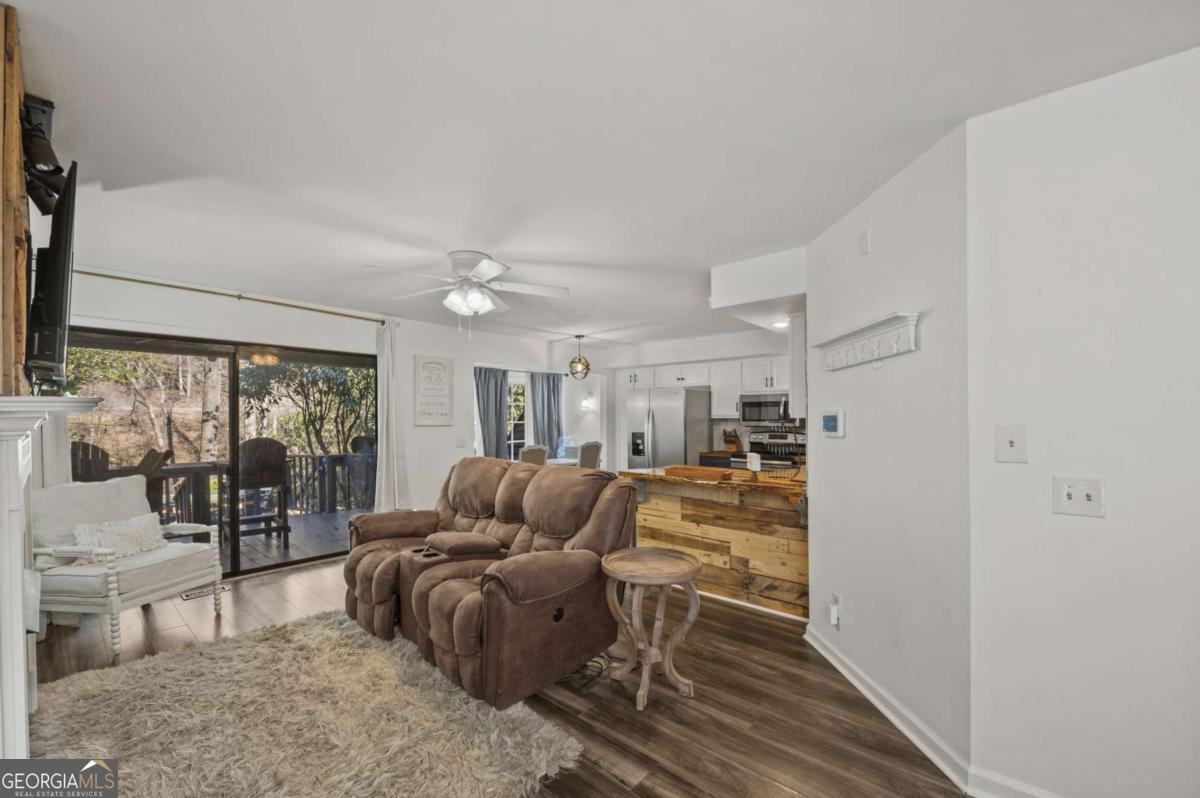 Located in Ellijay on the Cartecay River, this beautifully renovated 3-bedroom, 2-bath villa offers a rare opportunity for riverfront living. Enjoy direct access to the water - launch a canoe, kayak, or tube upstream and float right back to your backyard. The peaceful setting provides relaxing river views along with the tranquil sounds of the flowing water. The home has been fully remodeled and features a functional layout suitable for a full-time residence, vacation getaway, or investment opportunity. Conveniently located near downtown Ellijay, you'll have easy access to local shops, dining, and area amenities while still enjoying a private, scenic setting along one of North Georgia's most sought-after rivers. Successful short term rental, no 8% county fees, all furniture stays except the white chairs.