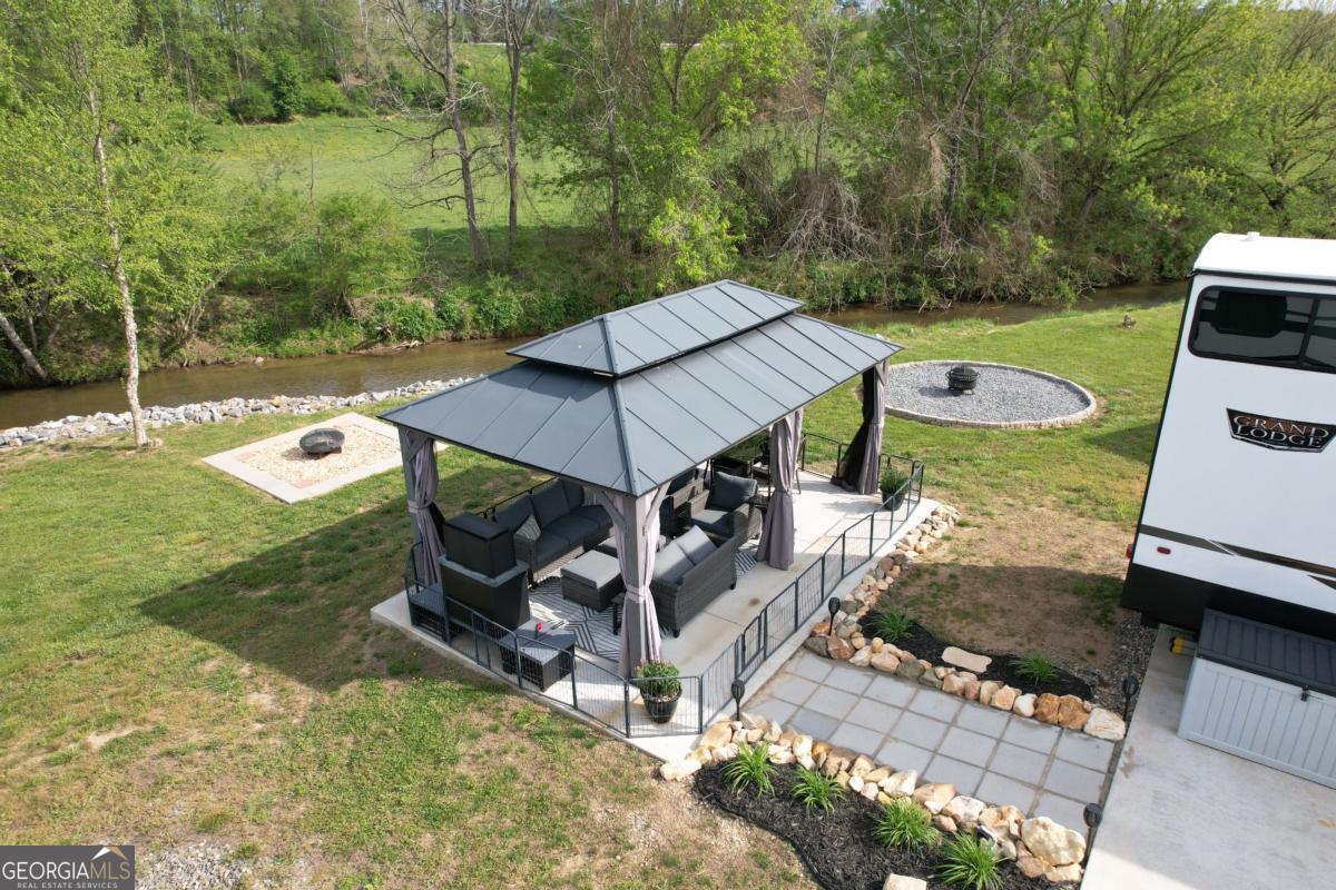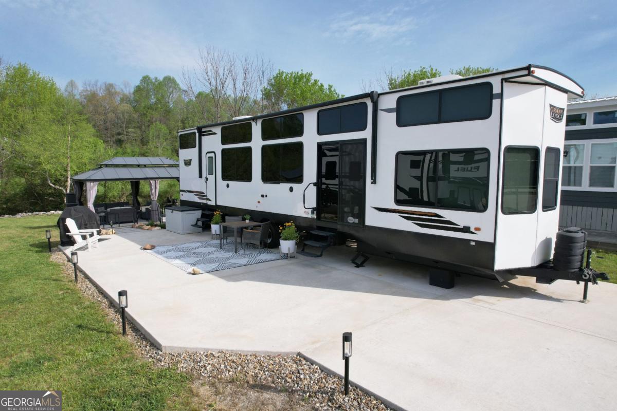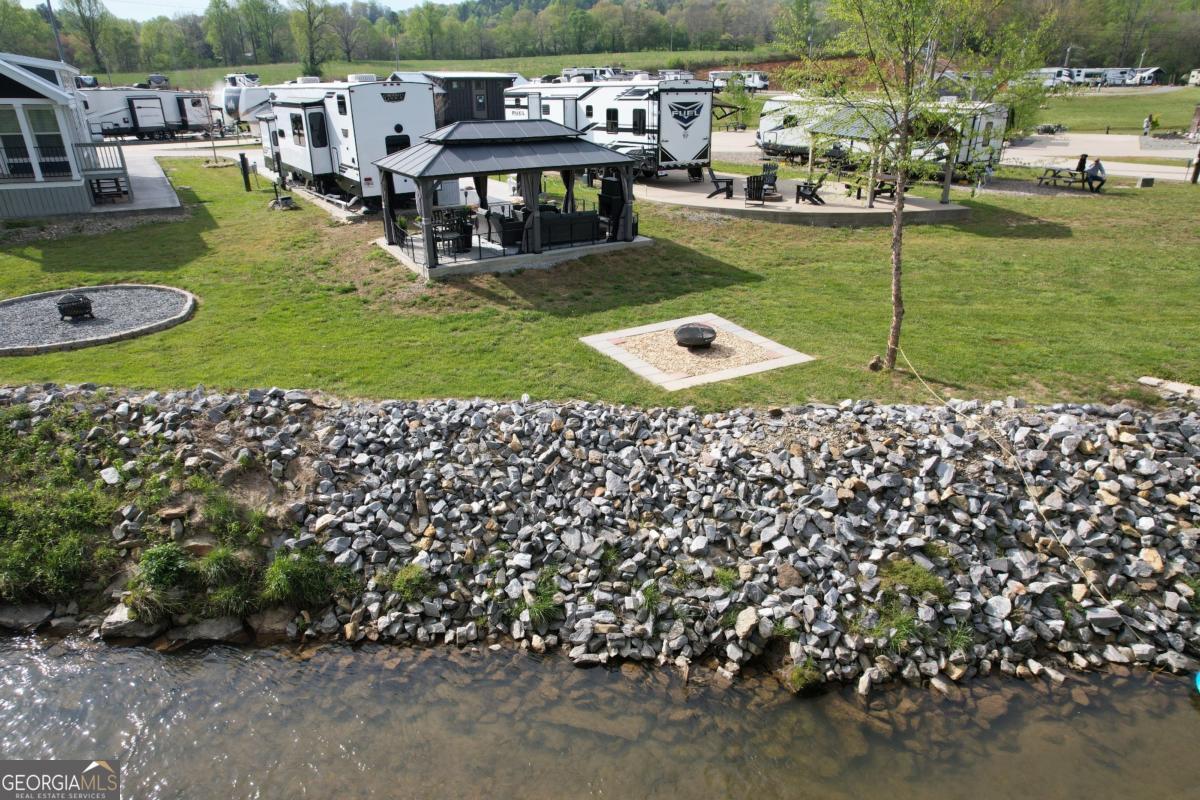 Nestled along the serene, year-round trout-filled Hemptown Creek, this premium RV lot in the gated RV/tiny home community offers a perfect blend of natural beauty and modern convenience. Whether you're seeking a peaceful personal retreat or a smart investment opportunity, this property delivers on both fronts. The lot features a spacious concrete pad, accommodating a variety of RV sizes and providing a solid foundation for your home on wheels. A charming gazebo and fire pit area create an inviting outdoor space, ideal for gatherings or quiet evenings under the stars. Flagstone steps lead directly to the creek, offering easy access for refreshing summer dips or trout fishing adventures. While the park model home is not included in the sale, it is available for purchase separately, providing additional flexibility for potential buyers. The rest of the property's features will convey with the sale, ensuring a seamless transition for new owners. Residents of Waterside at Blue Ridge enjoy access to a host of amenities designed to enhance your lifestyle. The community boasts a clubhouse equipped with bathrooms, showers, laundry facilities, and a kitchenette. Recreational facilities include a pool, playground, disc golf course, Gaga Ball pit, dog park, basketball hoop, and pickleball court. Flat, paved roads throughout the community are ideal for biking, scooters, or golf carts, making it easy to explore and enjoy all that the neighborhood has to offer. Situated just minutes from downtown Blue Ridge, GA, this location provides easy access to outdoor adventures such as hiking trails, parks, Lake Blue Ridge, and the Toccoa River. Additionally, you'll find local attractions including wineries, orchards, and a variety of dining and shopping options nearby. Whether you're looking to settle down or invest, this creekside lot offers unparalleled value and potential.