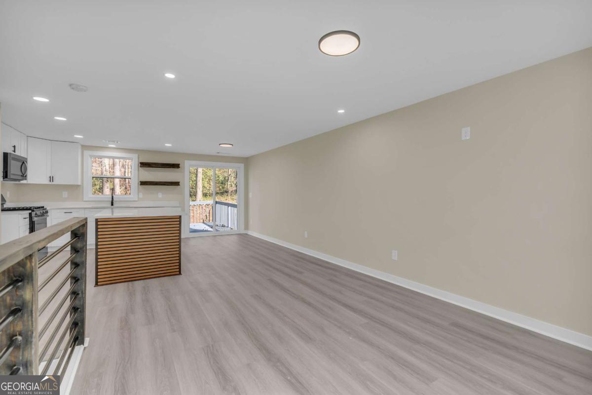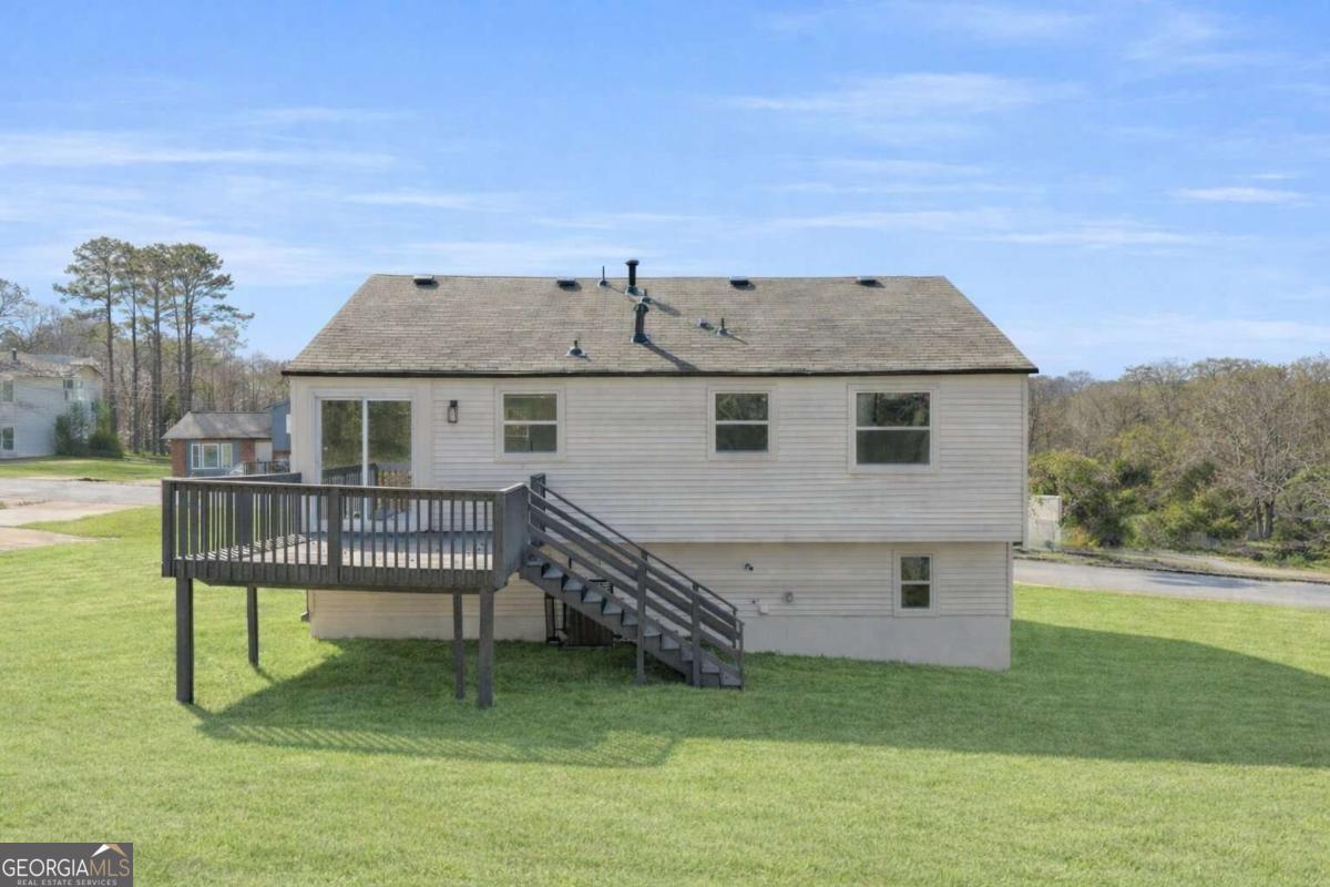 Welcome to this beautifully renovated five-bedroom, three full bath home located in Stone Mountain. This split-level home is nestled in a quiet neighborhood with convenient access to major highways and retail shopping. As you enter, you are greeted by a stunning two-story foyer. Upstairs, you will find an open-concept kitchen that has been fully remodeled with an oversized kitchen island, white quartz countertops, and white soft-close cabinets, providing ample storage and meeting all your dining and entertaining needs. The upper level also features two spacious bedrooms and two full bathrooms. Downstairs, you will find three generously sized bedrooms and one full bathroom, making it perfect for guests or even a rental income-producing area, with direct access to the exterior on the lower level. The lower level also features a versatile living room that can serve multiple purposes. This home has been completely remodeled from head to toe with meticulously handpicked features that create a functional flow throughout, perfect for today's buyer. Some of the new features include brand new floors, brand new windows, brand new roof, brand new HVAC, recessed lighting, brand new doors, and fully remodeled bathrooms and kitchen-you name it, this home has it. This is truly a brand-new house without the brand-new price tag, and the finishes are exceptional. Schedule your private showing today and see everything this home has to offer.