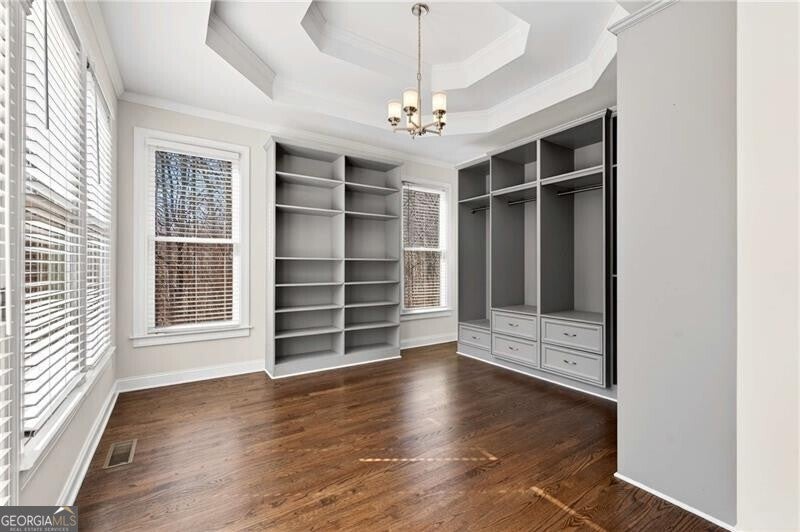 - Interior FeaturesMaster On Main Level, Pulldown Attic Stairs, Separate Shower, Soaking Tub, Tray Ceiling(s), Walk-In Closet(s)