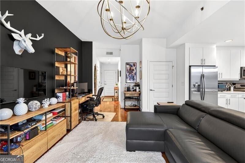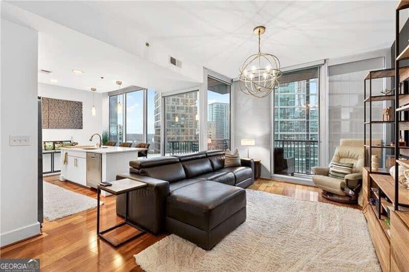 Call Midtown's best address home at 1010 Midtown! Gorgeous 1-bedroom condo, renovated, hardwood floors throughout, & coveted views stretching from Piedmont Park down Peachtree. Beautifully renovated kitchen with dedicated pantry, two walk-in closets in the bedroom. One reserved parking spot in gated, resident parking garage. This amenity-rich building includes 24/7 concierge, fitness center, 8th floor terrace level with beautiful gardens, resort-style pool with grills & multiple areas for entertaining. Walk to the very best Atlanta has to offer, including The High Museum, Colony Square, Piedmont Park, & endless restaurants. Come and see why 1010 provides one of the best backdrops for Intown living!