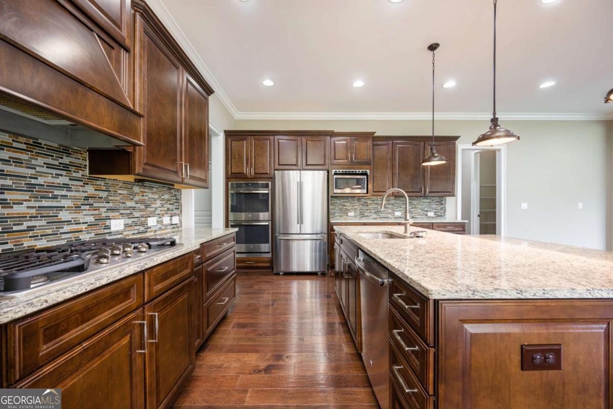 Welcome to 5750 Jockey Walk - a meticulously maintained executive home nestled in the prestigious Bridleton community in Suwanee. Located in the award-winning Lambert High School district, this spacious 5-bedroom, 4-bathroom residence features a bright open floor plan, gleaming hardwood floors, and elegant upgrades throughout. The gourmet kitchen boasts an oversized island, abundant cabinetry, walk-in pantry, and a cozy keeping room - perfect for entertaining and everyday living. A guest suite on the main level provides privacy and flexibility. Upstairs, you'll find a luxurious primary suite with a spa-like bath, massive walk-in closet, and custom built-ins, along with generously sized secondary bedrooms and updated bathrooms. Community amenities include swim, tennis, clubhouse, and playground. Conveniently located near shopping, dining, and top-rated schools. This is luxury living at its finest!