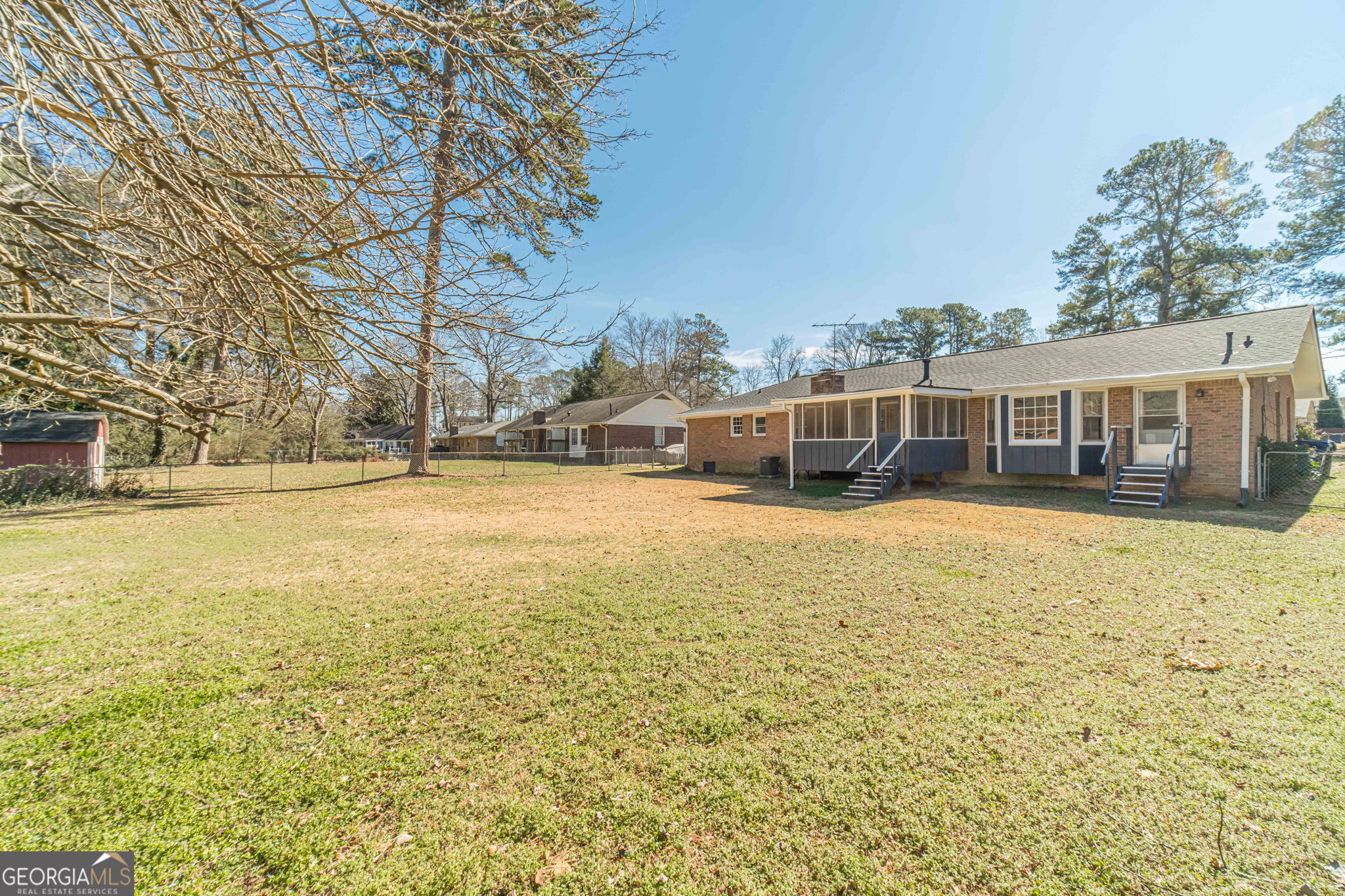 You are HOME! Don't miss this one. All brick ranch home in established neighborhood. Three bedrooms, 2 full bathrooms. Large, flat yard. Cozy screened-in porch overlooks fenced backyard with outbuilding. Updated kitchen with built-in window seat with storage for breakfast table. Large laundry room has access to backyard. Kitchen is open to the keeping room with wood-burning fireplace. Updated hall bathroom. New paint on the exterior. Roof is 2 years old. Newer HVAC system. Home is tucked away in a quiet neighborhood, but just a few minutes' drive to grocery shopping and fast food establishments. Nothing to do except move in!