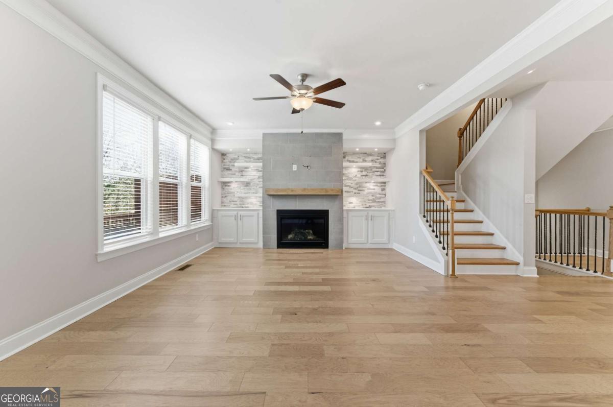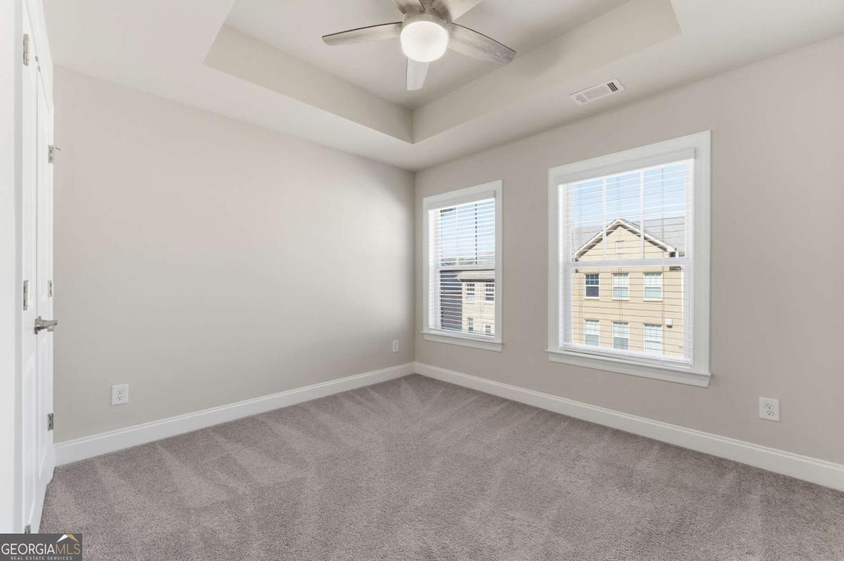 Charming 4-bedroom, 3.5-bath townhome located in the desirable Evins Walk community in Brookhaven. This spacious home features a 2-car garage and a welcoming entryway, with a first-level bedroom offering double closets. The expansive front kitchen includes quartz countertops, ample storage, and a new Bosch dishwasher, flowing into a central dining area ideal for entertaining. The living room features a gas fireplace, a stone-glazed accent wall, and additional custom cabinetry. A stylish powder room includes a framed mirror, while all bathrooms feature frameless mirrors throughout. The primary suite offers a tray ceiling, a spa-style bathroom with luxurious showers, and a walk-in closet. Window screens throughout provide great privacy, and the fenced backyard adds outdoor enjoyment. Residents enjoy access to a community pool open all summer. Rent is $3,999 per month with HOA included. Minimum 12-month lease. Schedule a viewing today!