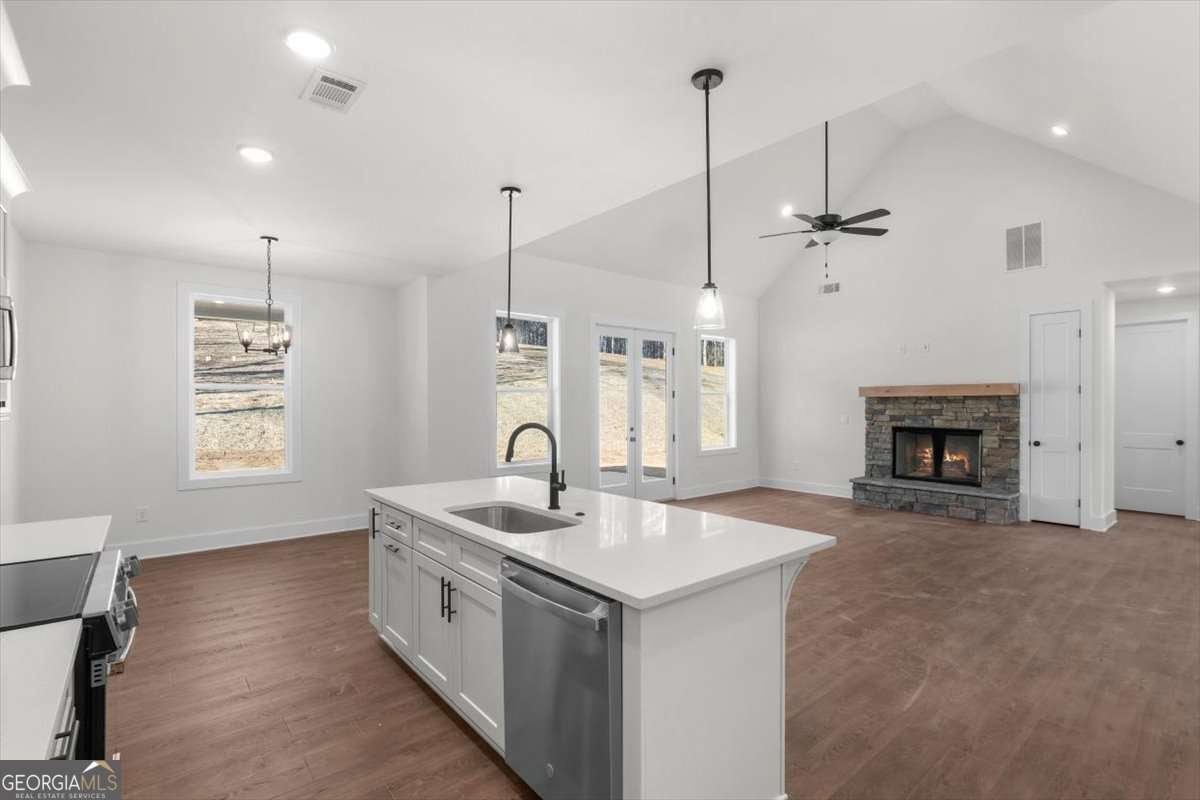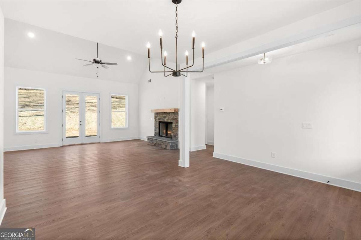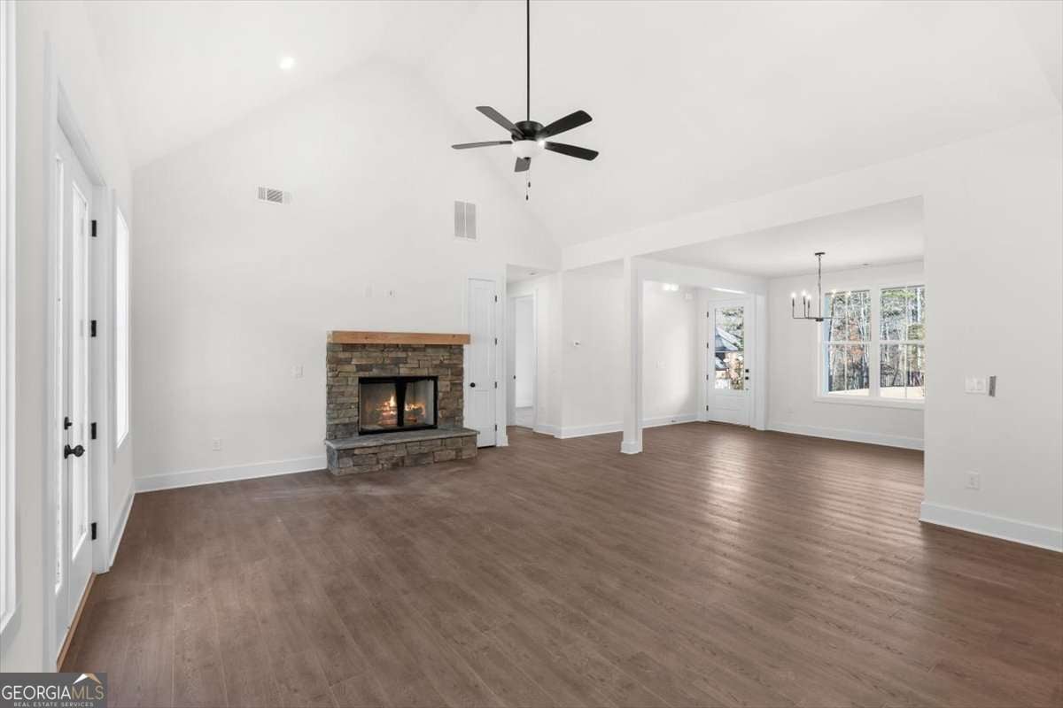 Welcome to 14 Everwood Court in the desirable Stonehaven community - featuring the beautifully designed Aspen Ridge plan. This thoughtfully crafted ranch home with an additional private upstairs retreat offers the perfect blend of main-level living and flexible space for guests, work, or hobbies. The main level showcases a spacious primary suite with a large walk-in closet and direct access to a covered rear porch - a peaceful extension of your living space. A dramatic two-story vaulted great room creates an open, airy feel and flows seamlessly into the dining area and kitchen with a central island ideal for gathering and entertaining. Two additional bedrooms and a full bath complete the main floor. Upstairs, you'll find a private bedroom, full bathroom, and cozy study nook - perfect for guests, teens, or a quiet workspace. Elevated finishes include 8-foot doors and 9-foot ceilings throughout the main level, enhancing the home's light and spacious design. A generous covered front porch adds timeless curb appeal and the perfect place to enjoy morning coffee and neighborhood serenity. Situated on a level, professionally landscaped lot, the home also includes a side-entry two-car garage and low-maintenance slab foundation construction. Stonehaven residents enjoy peaceful neighborhood living just 15 minutes from downtown Rome's shopping, dining, and entertainment, all within a highly regarded school district. Move-in ready and available now. Ask about a $5,000 closing cost incentive with preferred lender Matt Garcia at Supreme Lending and builder promotional interest rates as low as 4.5% (terms and conditions apply; subject to builder/seller approval).