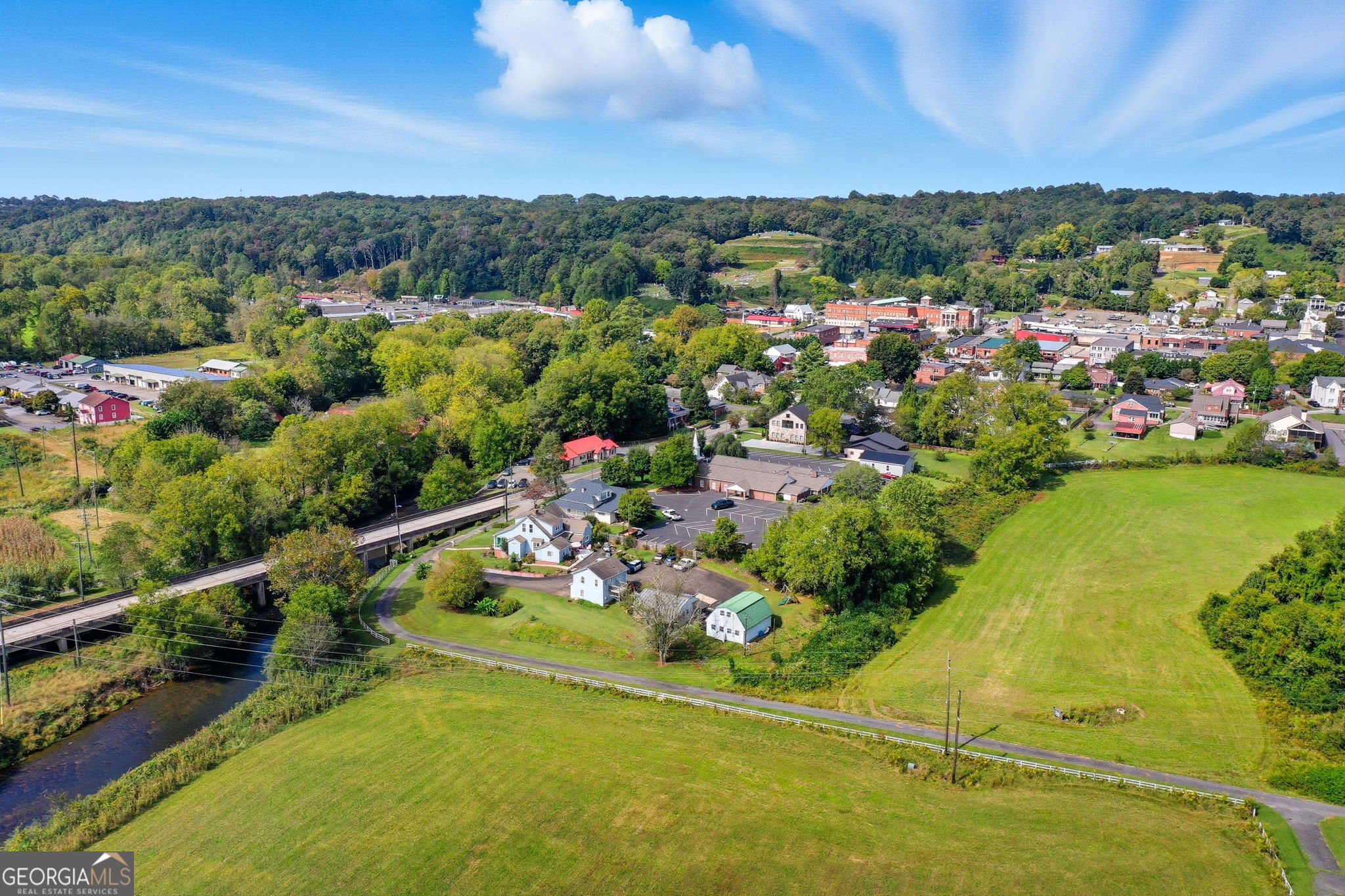 Discover a once-in-a-generation opportunity in the heart of Downtown Ellijay-an extraordinary 26.5 acre in-town RIVERFRONT ESTATE just steps from downtown restaurants, shopping, boutiques, and entertainment. This rare offering seamlessly blends walkability, privacy, and natural beauty, allowing you to enjoy city conveniences while retreating to your own private sanctuary along the Ellijay River. The main residence offers approximately 3,936 square feet with 4 bedrooms and 3.5 baths, featuring a stately brick facade, spacious living areas, warm wood accents, abundant natural light, and a flowing floor plan ideal for both everyday living and entertaining, with solid construction and generous proportions that provide the perfect canvas for thoughtful renovation or modernization. Outside, the property unfolds into gently rolling acreage framed by mature hardwoods and open meadows, all embraced by over 2,300 feet of Ellijay River frontage-ideal for fishing, kayaking, or peaceful moments by the water, a combination rarely found within city limits. Adding exceptional versatility is a second homesite with power and water already in place, along with multiple additional potential building sites throughout the acreage, each offering privacy and unique character, making this property well-suited for a private riverfront estate, legacy family retreat, or boutique development opportunity. Properties with this rare combination of acreage, river frontage, and downtown walkability are almost never available, making 195 River Street one of Ellijay's most unique and irreplaceable offerings.