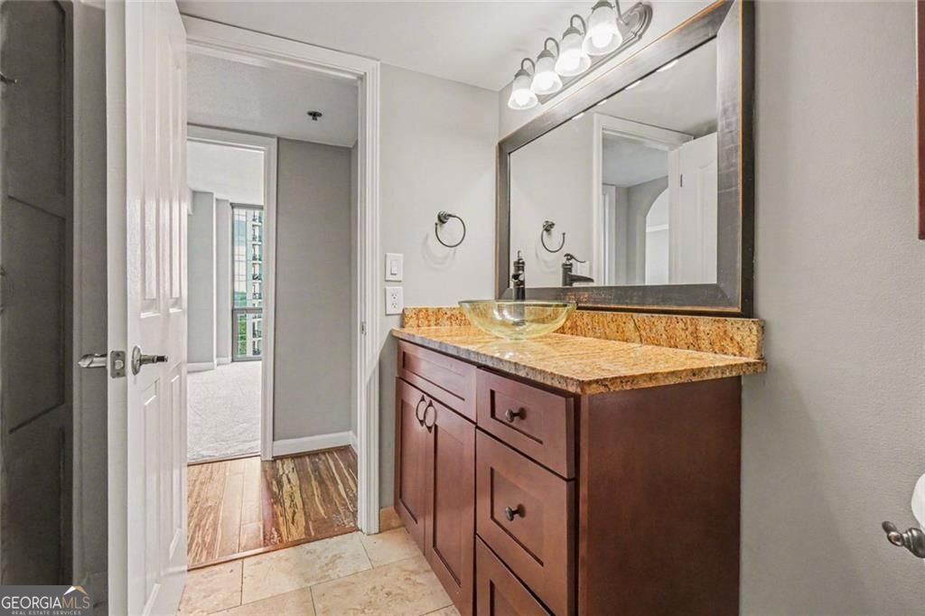 Welcome to Unit 1806, a beautifully updated high-rise residence offering breathtaking skyline views, spacious interiors, and the convenience of two deeded parking spaces - a rare and valuable find. Perched on the 18th floor, this light-filled two bedroom, two-bath condo unit features expansive floor-to-ceiling windows that frame sweeping city views and flood the space with natural light. The open-Concept living and dining area showcases bamboo wood flooring, neutral designer tones, and a seamless layout perfect for entertaining or relaxing above the city. The updated kitchen is thoughtfully designed with granite countertops, brand new stainless steel appliances, custom cabinetry and a stylish tile backsplash. A convenient breakfast bar and separate wet bar with wine cooler provide additional functionality and charm for hosting. The spacious primary suite offers plush carpeting, oversized windows with spectacular views, and ample closet space. The en-suite bathroom is beautifully appointed with granite countertops, custom cabinetry, and luxurious tiled shower/tub combination. The second bedroom is equally generous in size - ideal for guests, a home office, or additional living flexibility and is complemented by a well-appointed second full bath.