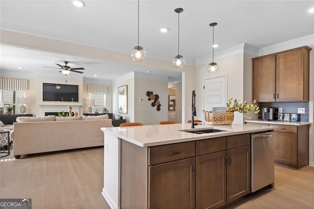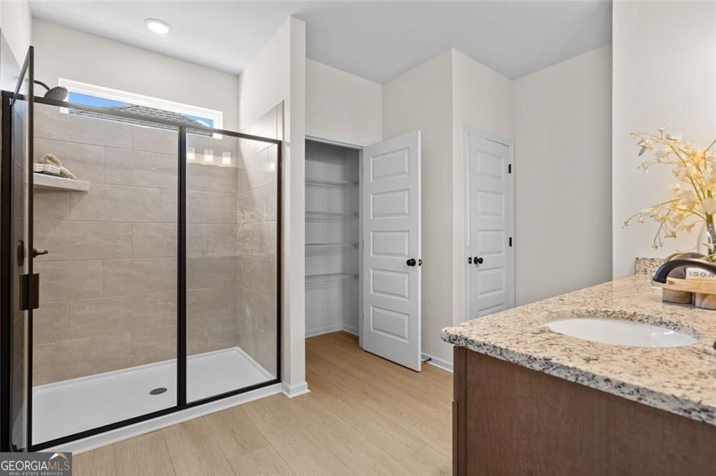 Move in Ready May! The Harrington by Smith Douglas Homes in The Stiles. Be in Your New Home by Summertime! Welcome to The Stiles community by Smith Douglas Homes, where the popular Harrington floorplan blends style, comfort, and modern living in one stunning new construction home in Cartersville, GA. This beautifully designed home features an open-concept layout with 9-foot ceilings on both levels, creating a bright and spacious feel throughout. The kitchen is the heart of the home, showcasing granite countertops, upgraded 42" cabinetry, tile backsplash, deep single-bowl sink, pendant lighting, and a large island-perfect for entertaining and everyday living. Gather in the inviting family room with a modern linear fireplace, or enjoy the elevated design details like open iron railings on both floors for a light, airy look. Extra windows have been added to the family room, top of stairs and front door creating a light-filled home. Upstairs, retreat to the luxurious primary suite with enhanced with crown molding, plus a spa-like bath featuring a large tiled shower. The laundry room conveniently connects to the spacious primary walk-in closet for added ease. Step outside to your covered patio, ideal for year-round relaxation and hosting. And don't forget the stunning mountain views that make this home truly special. Located in a desirable swim community with LOW HOA fees, The Stiles offers fantastic amenities including a swimming pool and playground-perfect for active lifestyles. Seller incentives available with use of preferred lender. Photos are representative of the floorplan.