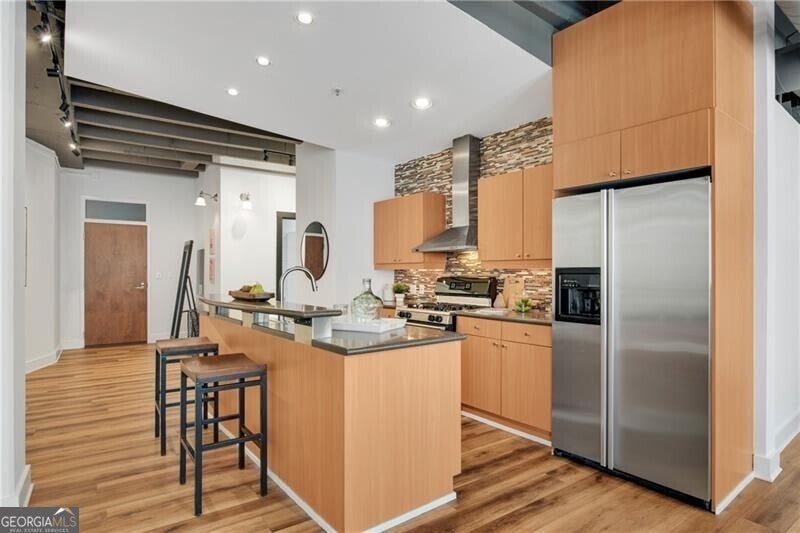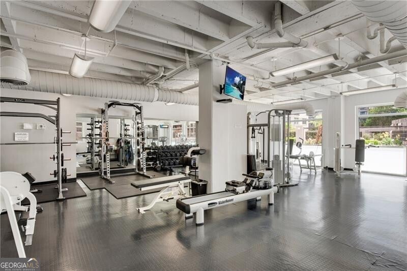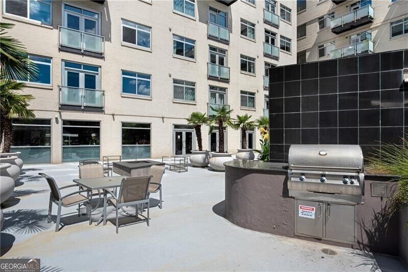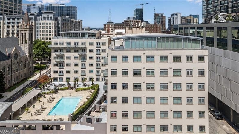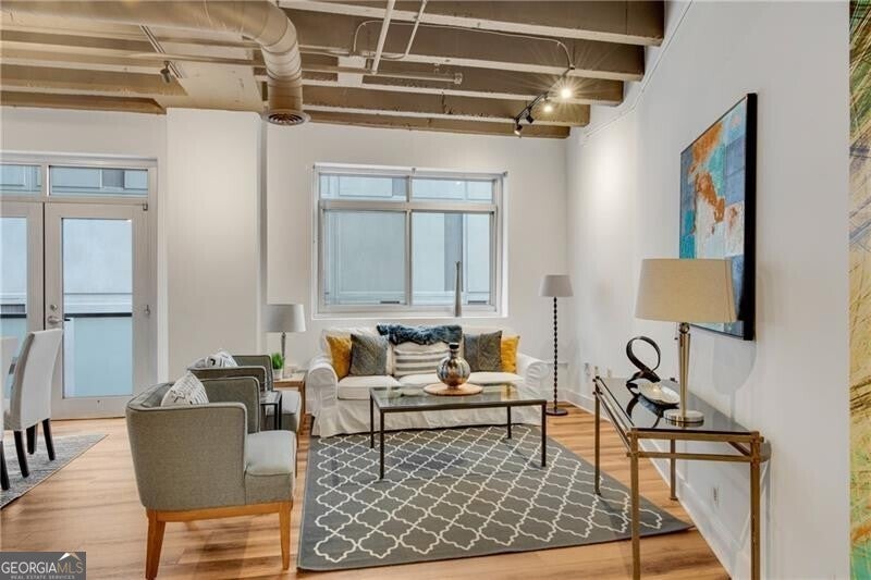 Quiet oasis in the heart of Midtown, just steps from top restaurants, the Fox Theatre, Georgia Tech, Piedmont Park, and more! This functional 1-bedroom floor plan offers flexible options for multiple dining and/or home office spaces-ideal for buyers who want extra room for entertaining. Enjoy smart home lighting, a NEW HVAC system, fresh paint, and NEW wide-plank luxury vinyl flooring throughout. The island kitchen features a wine cooler, stainless vent hood, gas cooking, and an included stainless refrigerator. Study/den overlooks the dining area with French doors, while the living room includes an additional flex space-perfect for a second home office, breakfast nook, or even a bar setup. 10-foot ceilings with exposed concrete add a sleek, loft-like feel. You'll love the true laundry closet with full-size units (no stacked machines!), plus a spacious bedroom tucked away down a private hallway, complete with a large walk-in closet with adjustable shelving. The updated bathroom includes a modern vanity, tile flooring, black fixtures, a frameless shower door, and both a separate tiled shower and jetted tub. This unit includes TWO parking spaces and a dedicated storage unit. Residents of 805 Peachtree enjoy an impressive list of amenities: a large club room, swimming pool, firepit lounge, outdoor grilling area, pool cabanas, vending machines, fitness center, and 24-hour concierge service. Plus, upscale dining is right across the street at El Valle.