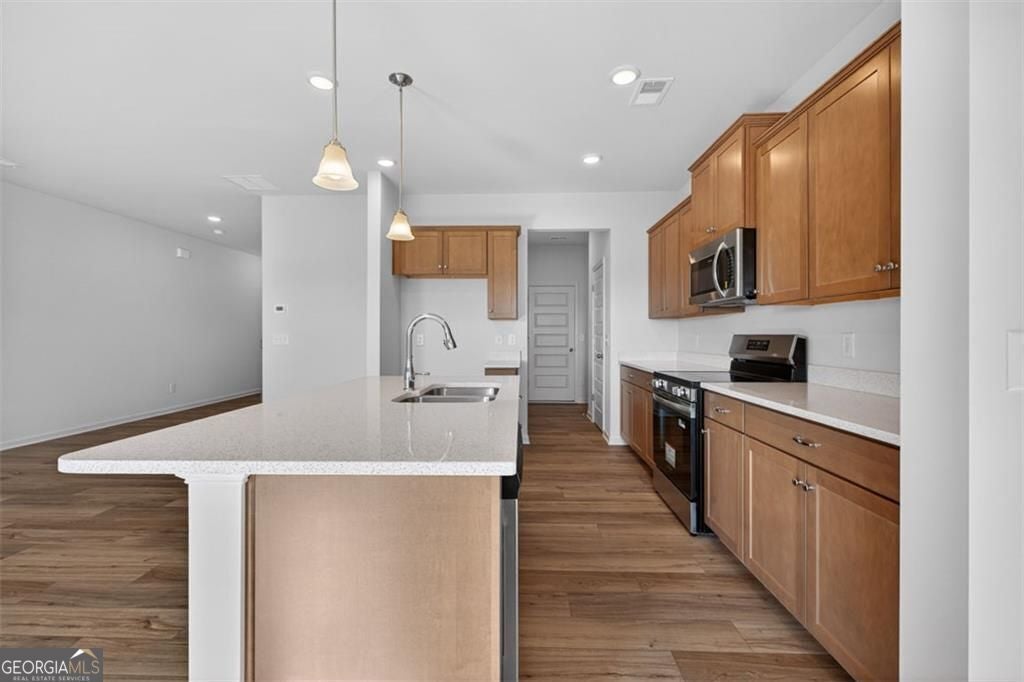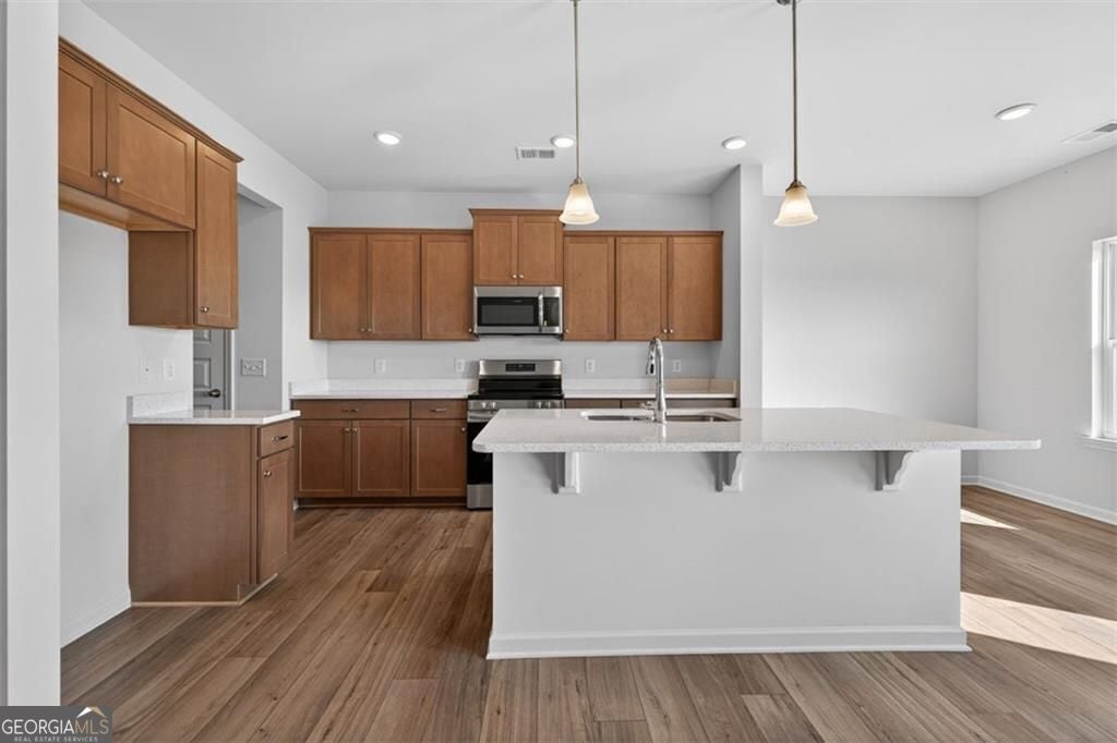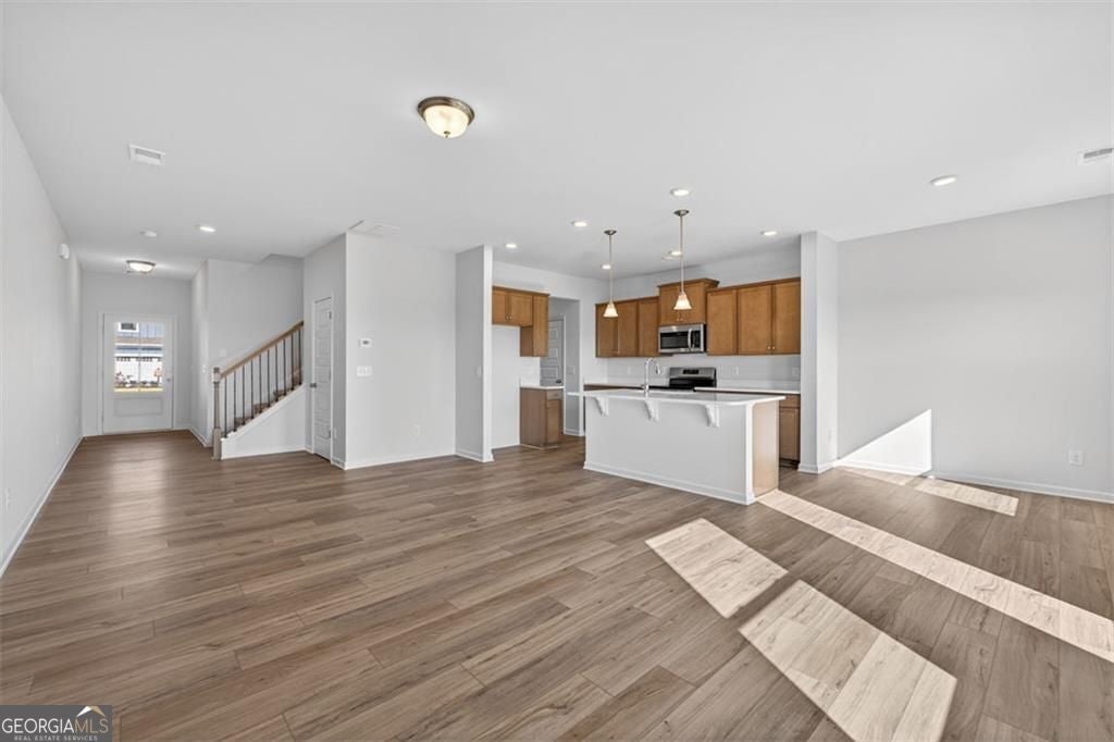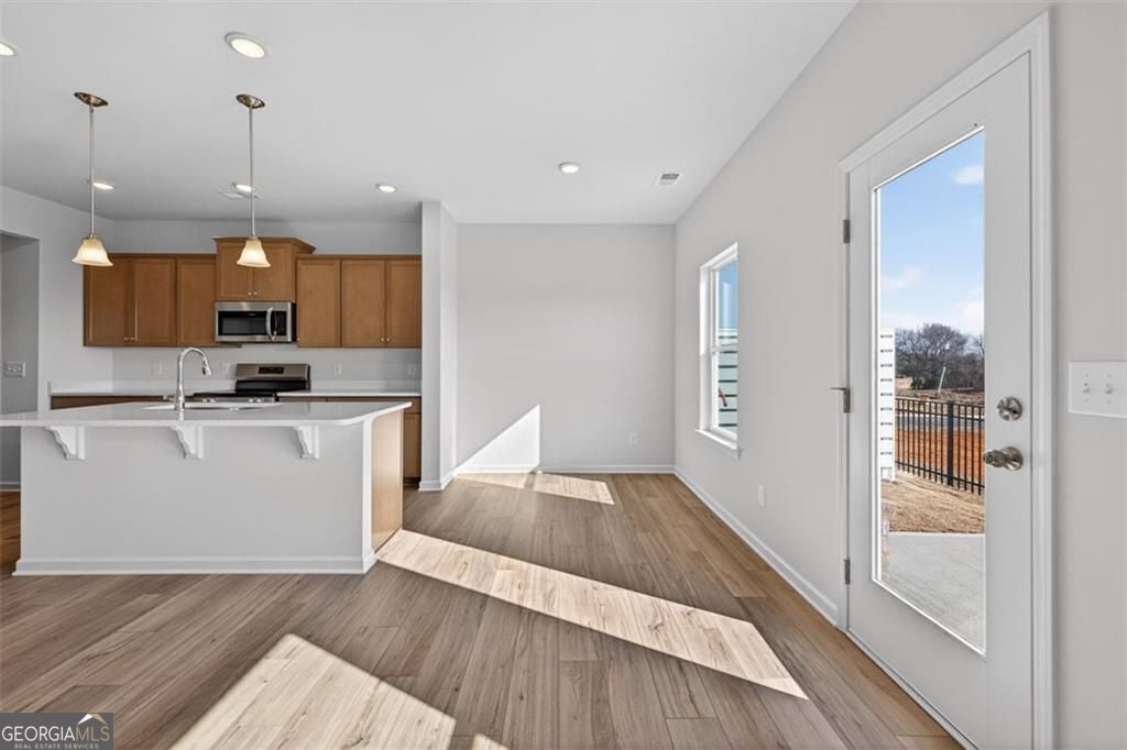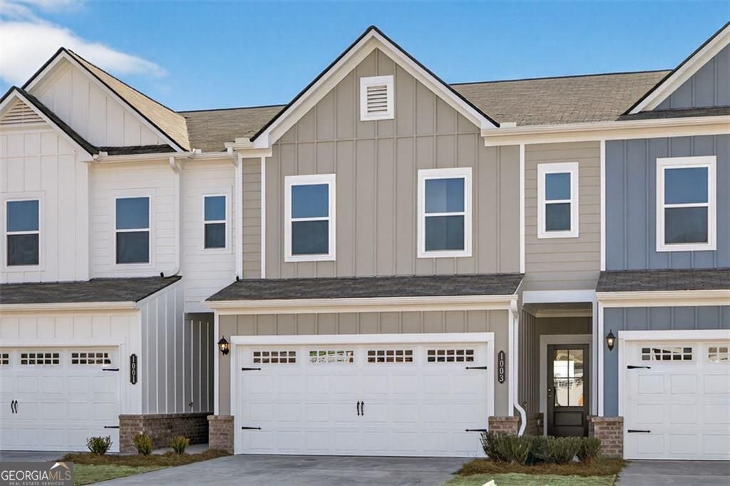 Move-in ready! The Norwood II floor plan by Smith Douglas Homes, located in the Townes At The Stiles community. Welcome to this beautiful new construction townhome in Cartersville, GA, featuring this thoughtfully designed 3-bedroom, 2.5-bath townhome offering modern finishes, functional living spaces, and low-maintenance living with lawn care included in the HOA. Upon entry, you'll appreciate the owner's entrance from the garage, complete with a convenient drop-zone, perfect for coats, bags, and groceries. The open-concept main level is ideal for everyday living and entertaining, featuring a well-appointed kitchen with a center island, upgraded cabinetry for additional storage, and Quartz countertops. The dining area overlooks the spacious family room, creating a seamless flow throughout the main living area. Nine-foot ceilings on both levels enhance the open and airy feel of this new construction townhome. The second floor is accessible via an open iron rail staircase and offers a versatile loft area, ideal for a home office, study space, or desk area. The upper level also includes a laundry room, two secondary bedrooms with a shared full bath, and a private primary suite. The primary bedroom features an ensuite bath, providing a comfortable and relaxing retreat with a garden tub and separate tiled shower. Located in The Stiles, a swim community in Cartersville, residents enjoy neighborhood amenities along with the convenience of lawn maintenance included, allowing more time to enjoy the lifestyle you love. This community offers easy access to shopping, dining, schools, and major highways. Seller incentives with use of preferred lender. Photos of home.