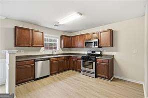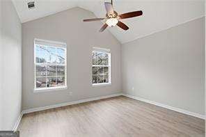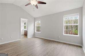 Beautifully updated and move in ready home features 4 bedrooms, 2 and 1/2 bathrooms and a fenced yard. Fresh new interior paint. Brand new LVP flooring throughout. Primary bedroom has vaulted ceiling, large closet and an en suite bathroom with double vanity and separate tub and shower. All 3 secondary bedrooms are nice size, two with vaulted ceilings and fans. Enjoy your patio in the back with the large private fenced yard. You will love this open floorplan. Award winning school district. Convenient to shops and restaurants in downtown Canton, The Mill, Woodstock Outlet Mall and more. Easy access to I-75 and I-575 and GA 20 for your travels. Come make this your new home! Professionally managed and an owner that cares. Income should be 3 times monthly rent, good credit, and background check.