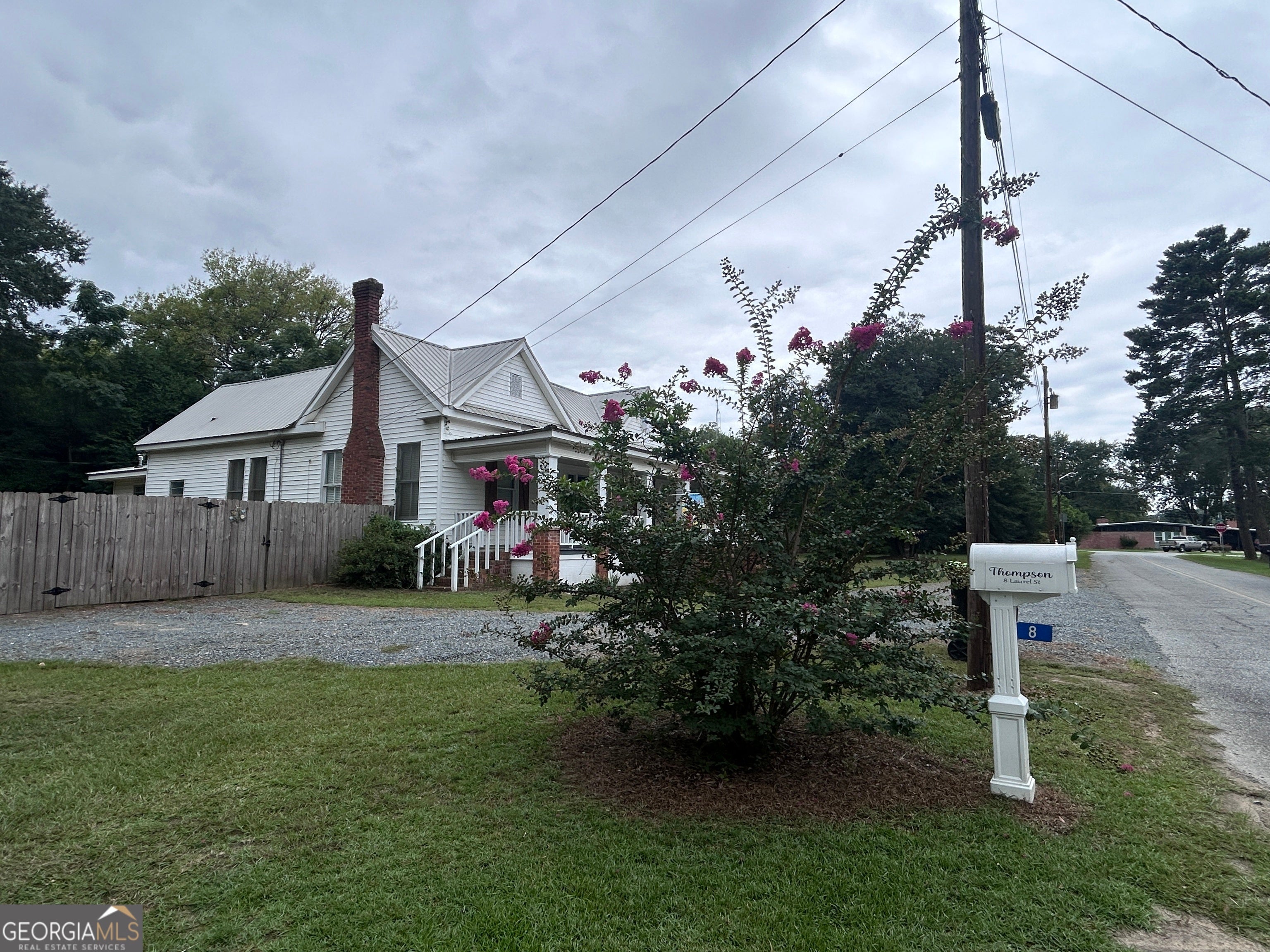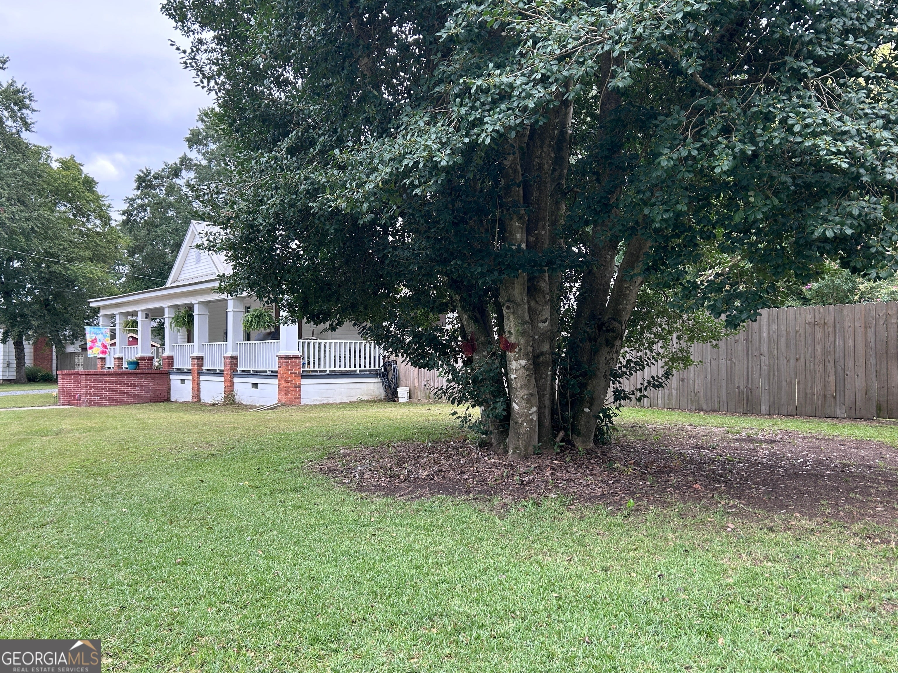 Charming 100+ year hold home in the City of Butler, with front and side covered porch. Only 1 block to town square with Courthouse and County services, Post Office, Restaurants, Coffee shop, Sheriff's Office, Hardware store, and more. Very large fenced back yard - the lot is just under 3/4 acre spanning from Laurel Street to Elm Street (rear of fence is well inside the lot line). Large bedrooms, spacious kitchen with stainless steel appliances (refrigerator included), huge laundry/utility room. Appliances are electric except for water heater (gas). Property is served by public water and sewer.