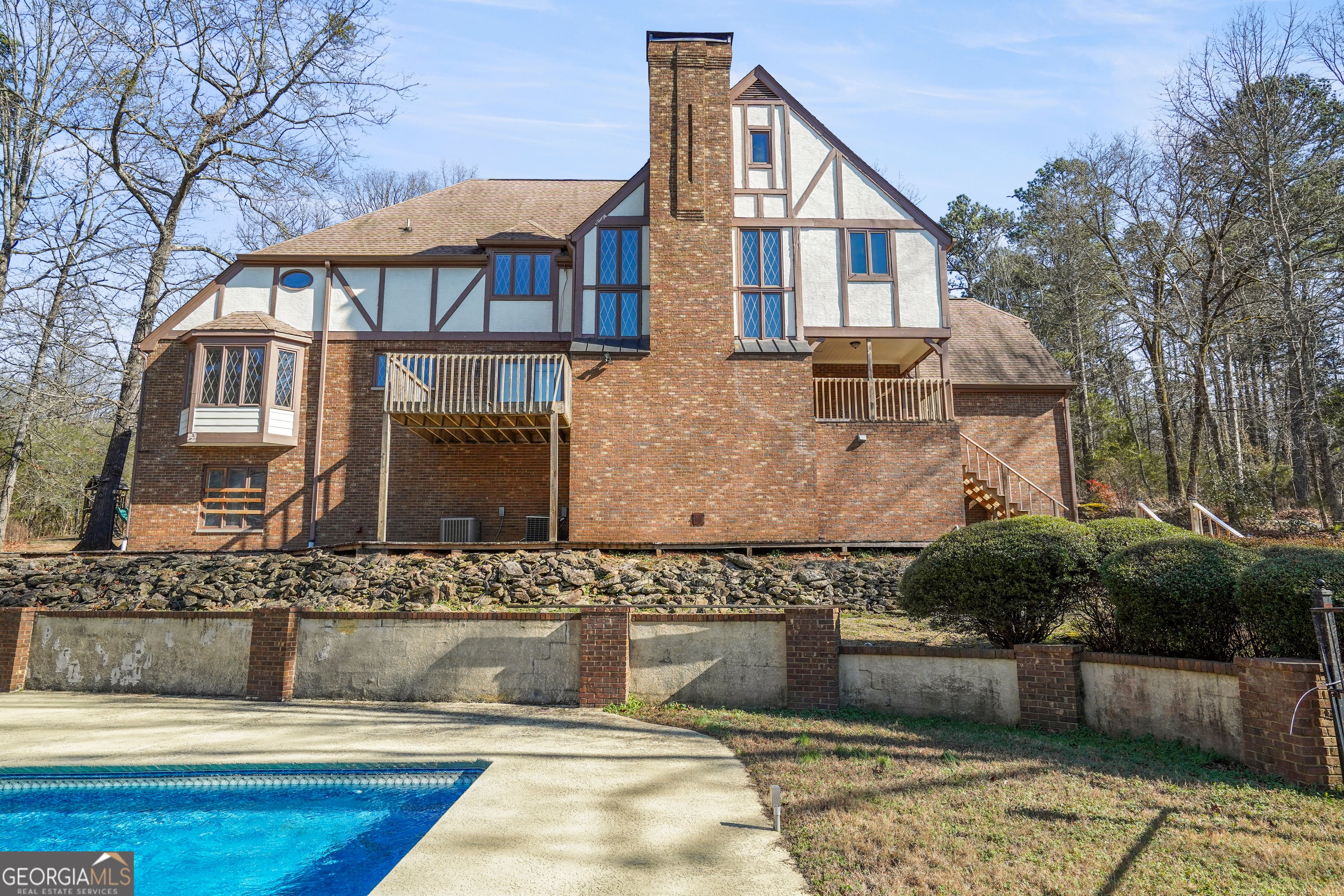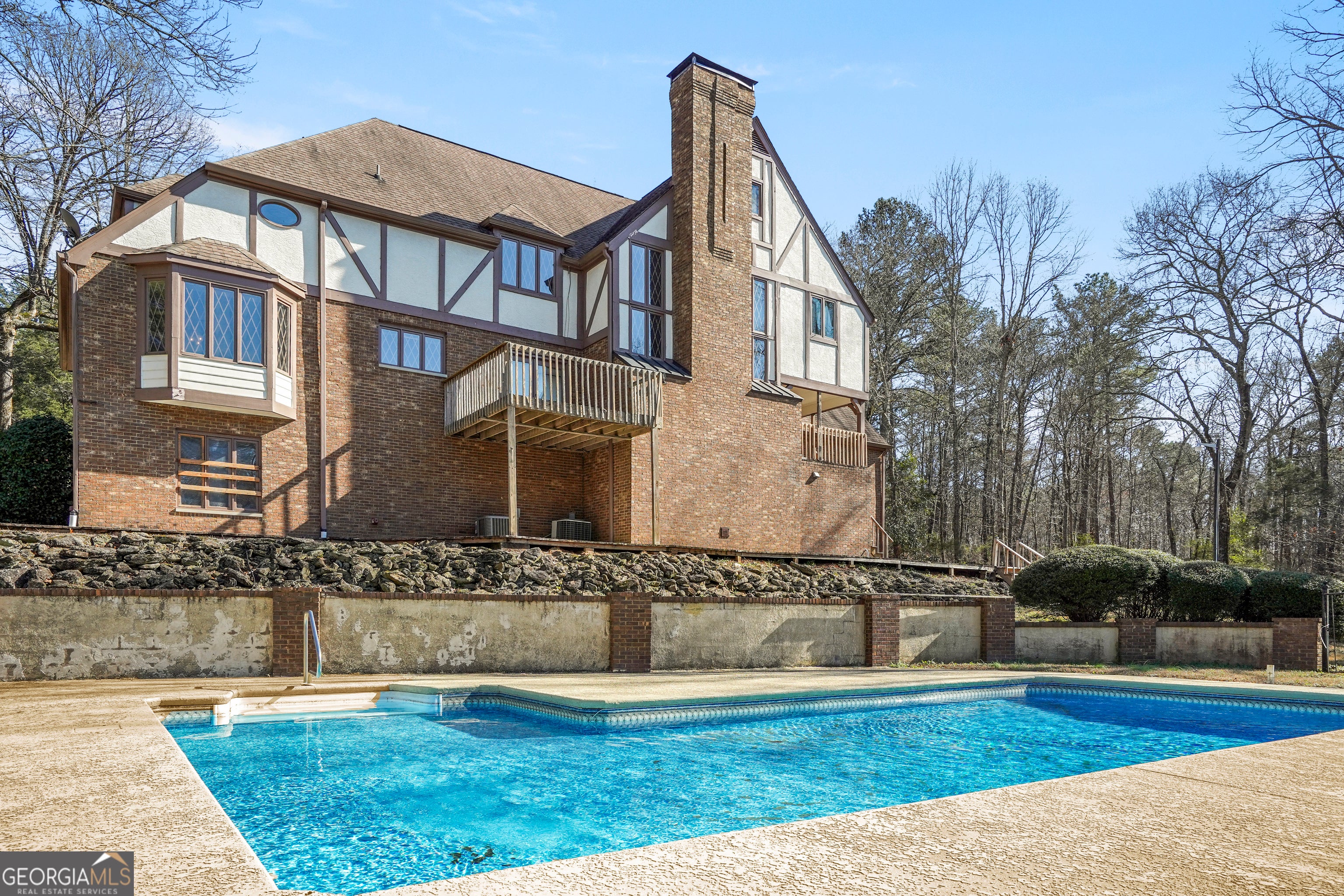 Welcome to your private retreat in the heart of Conyers! Nestled on approximately 9.75 breathtaking acres, this beautifully appointed 4-bedroom (office on main floor could be used as a 5th BR), 4-bathroom estate offers the perfect blend of elegance, comfort, and natural serenity. A picturesque creek runs through the front of the property, setting the tone for the peaceful lifestyle that awaits. Step inside to discover a massive family room featuring soaring vaulted ceilings and a stunning fireplace - the ideal space for gathering and entertaining. The main level also boasts a spacious eat-in kitchen with French doors that open onto a large deck, seamlessly blending indoor and outdoor living. Just off the main living area, you'll find an impressive formal dining room complete with its own fireplace, creating a warm and inviting atmosphere for memorable dinners and special occasions. A large multi-use room is just through the butler's pantry that has many possibilities. An office with built-in bookshelves, that could be an extra bedroom, finishes out the main level with a full bath attached. Upstairs, the expansive owner's suite serves as a luxurious retreat, highlighted by a beautiful tray ceiling and a spa-like en suite bath designed for relaxation and comfort. The full, unfinished basement offers incredible potential and includes a full bathroom along with abundant storage space - perfect for future expansion, a workshop, or additional living areas. A whole-house water filtration system adds peace of mind and modern convenience. Outdoors, enjoy your own backyard oasis featuring an in-ground saltwater pool surrounded by fencing, ideal for summer gatherings or quiet evenings under the stars. The circular driveway flows gracefully beneath the main level to the garage, adding both functionality and curb appeal. Surrounded by nature yet conveniently located, this remarkable property offers privacy without sacrificing accessibility. Priced below appraised value, this is an extraordinary opportunity to own your forever dream home. Don't miss your chance to experience luxury living in one of Conyers' most desirable settings!