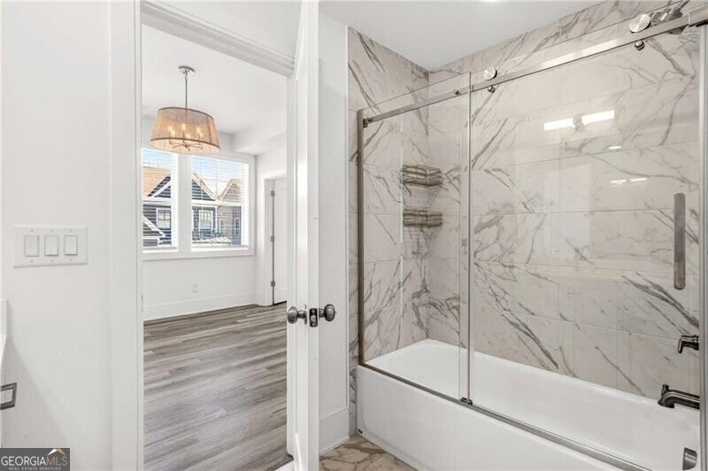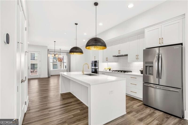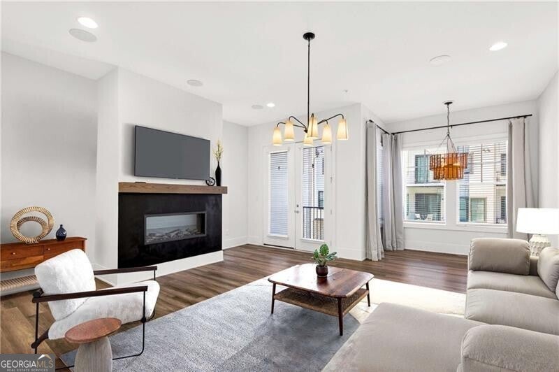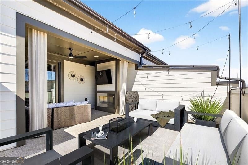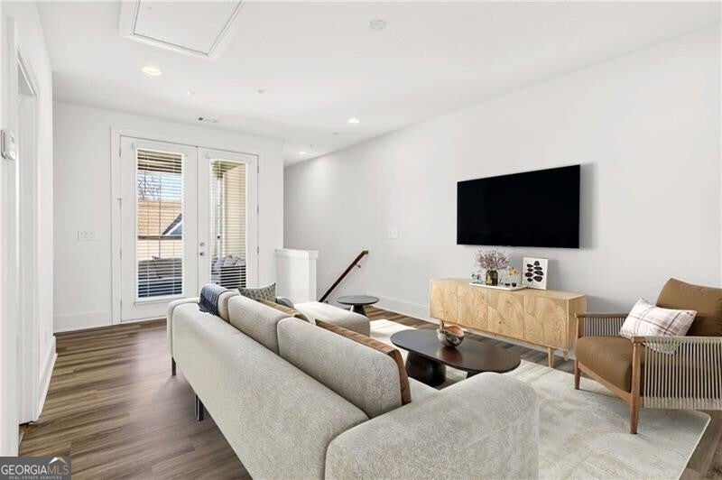 This stunning four-level townhouse blends contemporary design with effortless luxury, crowned by a private rooftop patio with fireplace and TV, ideal for entertaining and taking in city views. This home welcomes you with a spacious family room that opens to a cozy porch accented by a sleek linear fireplace, creating a seamless indoor-outdoor living experience. A separate dining room sets the stage for elegant gatherings, while hardwood flooring flows throughout, offering both durability and refined style. The gourmet kitchen is thoughtfully appointed with crisp white cabinetry with quartz counter tops, an oversized island with counter seating, stainless-steel microwave and oven combo, refrigerator, gas cooktop with vent, and abundant storage-perfect for everyday living and elevated entertaining alike.Retreat upstairs to a lavish primary suite featuring a custom walk-in closet complete with a makeup vanity and a serene spa-inspired bathroom with double vanities, a soaking tub, and a frameless glass shower. A secondary bedroom offers its own walk-in closet and an ensuite bathroom. While walking into the lower level there is an additional bedroom enjoys a full bathroom with both tub and shower-ideal for guests or flexible living. The upper-level media room is designed for relaxation and hosting, enhanced by a serving bar, wine refrigerator, space for another bedroom and full bathroom. Located off the rooftop entertaining space. Practical touches include a laundry with a full-size washer and dryer located on the 3rd level and a two-car garage with built-in storage. Perfectly positioned less than a block from the brand-new Atlanta Beltline NW Trail, this exceptional home places you moments from Westside Provisions District, Topgolf, The Works, pickleball, and the vibrant dining and entertainment scene that defines Atlanta's Upper Westside.