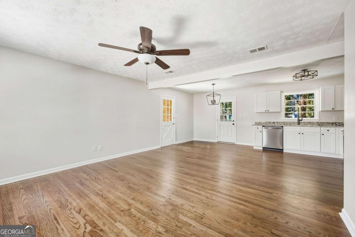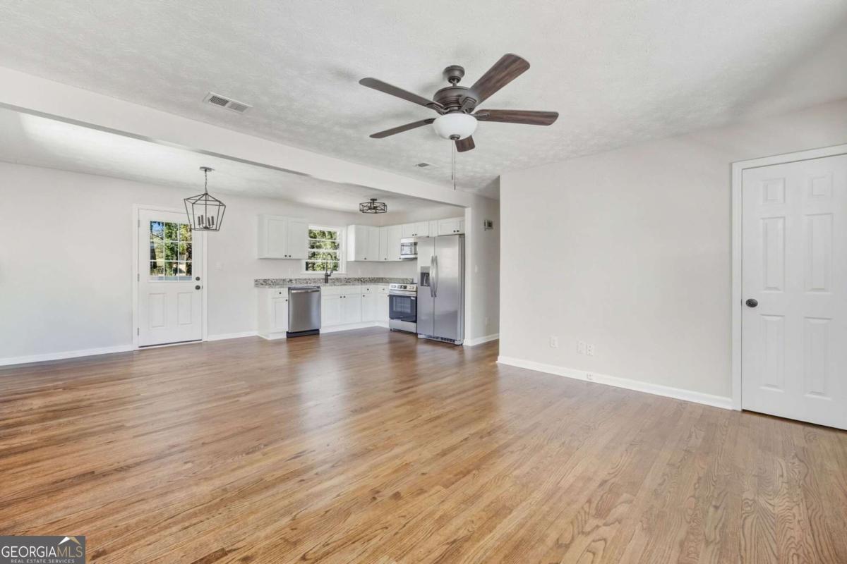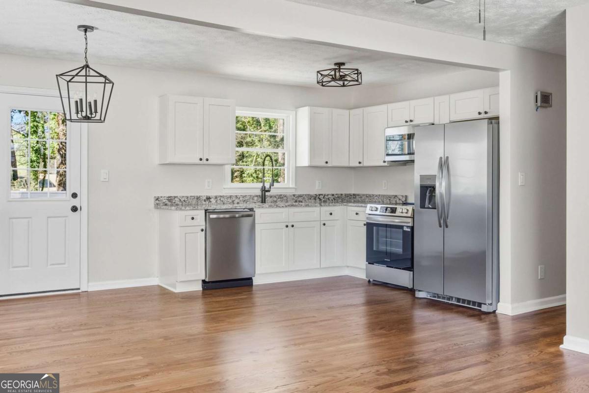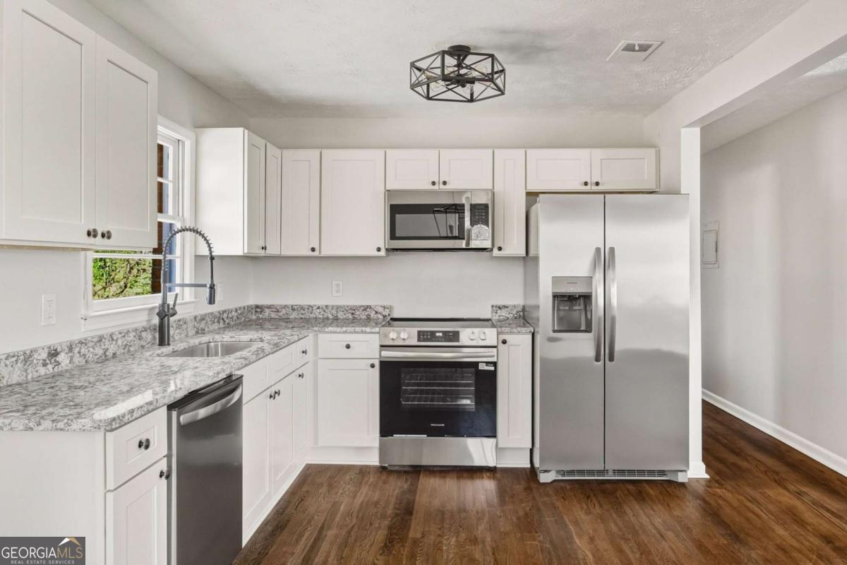 Welcome to this beautifully updated 3-bedroom, 1.5-bath ranch in Powder Springs, perfectly situated on a spacious 0.23-acre lot. This move-in-ready home features fresh interior paint, newly stained hardwood floors, and a fully renovated kitchen with shaker cabinets, granite countertops, and stainless-steel appliances. Inside, you'll find bright, refreshed living spaces with a seamless flow between the kitchen, dining, and living areas-ideal for both everyday comfort and entertaining. Spacious bedrooms provide room to relax, while updated finishes throughout create a clean, modern feel. Outside, enjoy peace of mind with major improvements including a new roof and gutters, along with a new deck overlooking the fenced backyard. The outdoor space offers plenty of room to unwind or host gatherings, complete with a storage shed and ample parking. Conveniently located just minutes from shopping, dining, and schools it is a must see!