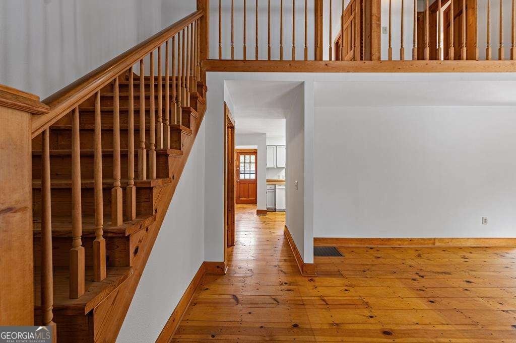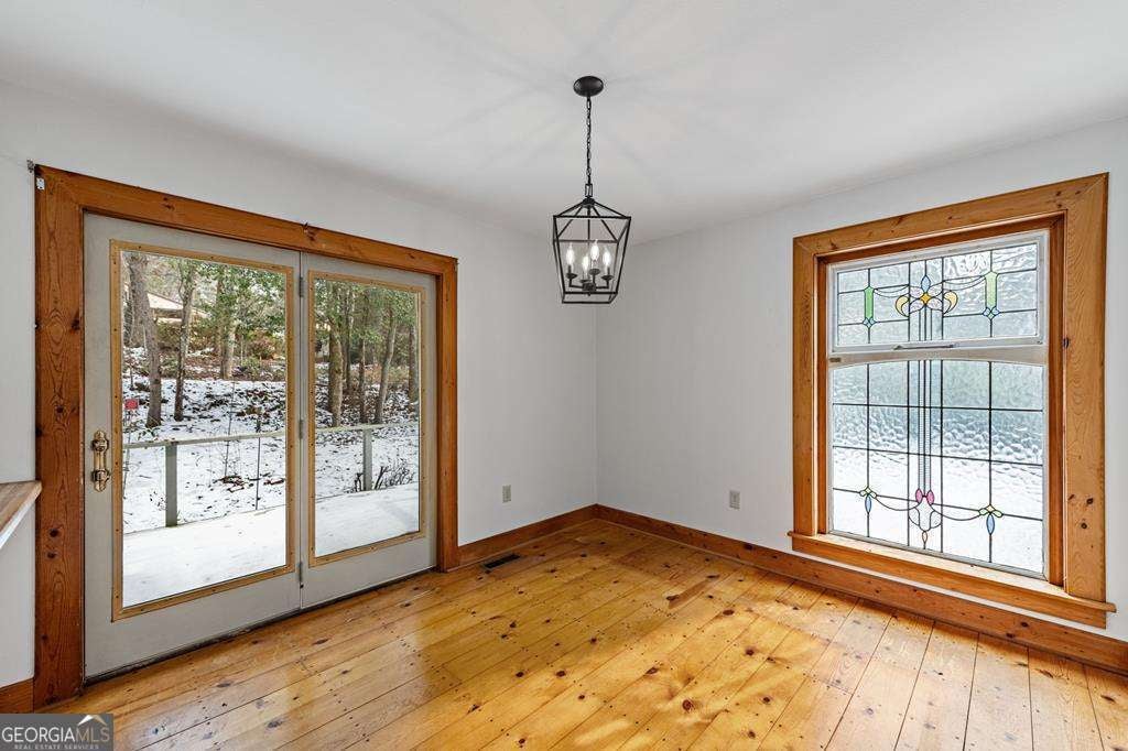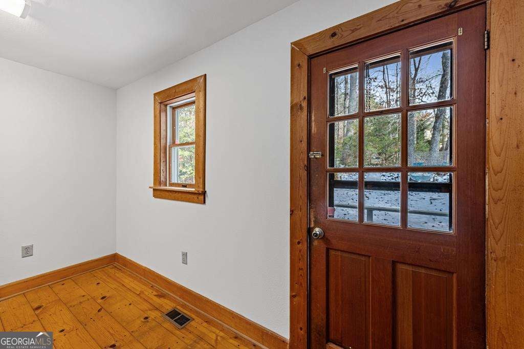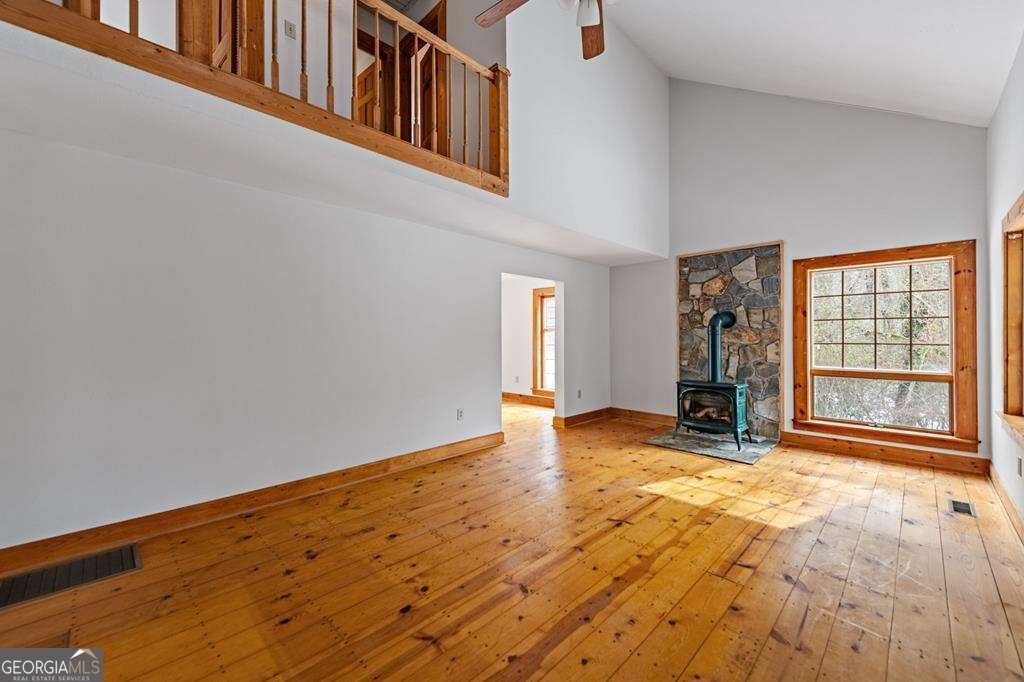 Set along a gently contoured shoreline, this private lakefront home offers the uncommon benefit of a smooth, easy walk from the residence to the water's edge. A floating dock permit is already secured, allowing effortless enjoyment of boating, swimming, and evening sunsets right from your backyard. Thoughtfully designed for everyday comfort and future flexibility, the home includes 3 bedrooms and 2 baths, highlighted by a generous main-level primary suite. Two additional bedrooms and a full bath upstairs provide ideal separation for guests or family members. The unfinished basement offers exceptional potential for expansion. With exterior access and natural light, the space is perfectly suited for an additional bedroom and bath, rec room, media lounge, or multipurpose living area-allowing the next owner to tailor the home to their needs. Inside, the architecture reflects a refined mountain-lake aesthetic. The great room features soaring vaulted ceilings, a wood-burning stove fireplace, hardwood floors, and expansive windows that capture natural light and frame the surrounding landscape. The combination of wood accents and smooth drywall finishes creates a balanced design-warm, inviting, and well-suited for either full-time living or a second-home retreat. Recent improvements add to the home's appeal, including freshly updated kitchen cabinetry, modernized fixtures, new bathroom vanities, and new tile in the baths-offering a move-in-ready interior with opportunities to further personalize. Outdoor living is equally inviting. A broad covered front porch provides a comfortable place to relax, while the spacious rear deck is ideal for entertaining or dining with a peaceful lake backdrop. A dedicated outdoor storage shed offers a practical space for tools, lake equipment, or seasonal storage. With paved access and a convenient location between Blairsville and Blue Ridge, the property offers a rare combination of privacy and accessibility.