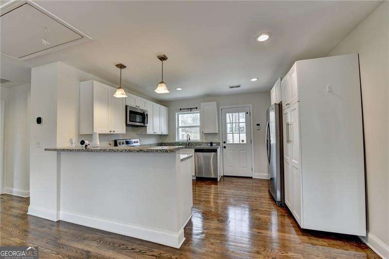 Charming like New home in East Lake on a huge lot! No HOA. Brand New HVAC and ROOF. 3 bed 2 bath split bedroom plan. Hardwood Floors throughout and LVP in Owners suite. Kitchen has white cabinets with granite countertops and stainless appliances. Oversized Owners Suite with separate deep closets. Owners bath has wide standalone shower with glass shower door and dual vanity sink with space to move around. Publix is around the corner and Minutes to East Atlanta Village, East Lake Golf Club and Glen East Lake Park, Atlanta Beltline Eastside Trail and Kirkwood downtown. Lots of great places to eat and shop nearby. No HOA.