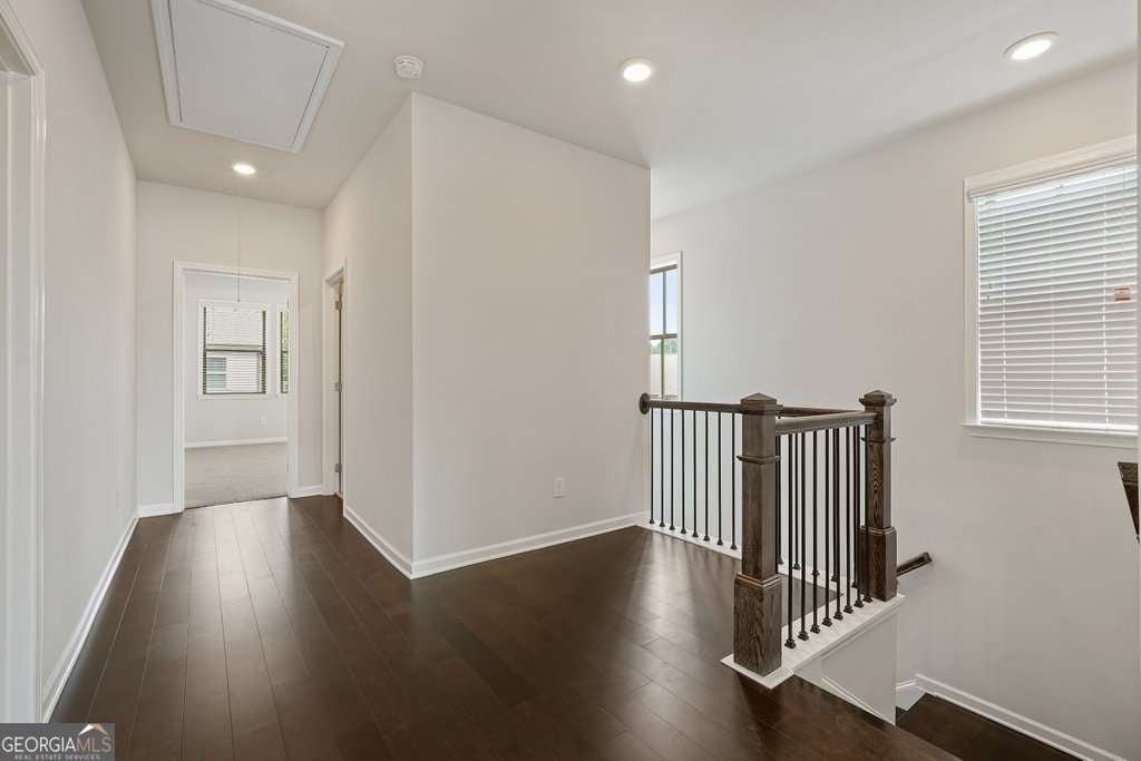 Modern 4BR/3.5BA townhome in sought-after Carver Hills, built in 2021. Over 2,500 sq ft with open-concept main level, hardwood floors, high ceilings, and gas fireplace. Chef's kitchen features white cabinets, large island, walk-in pantry, stone counters, double ovens, and gas cooktop. Spacious primary suite with double vanities and walk-in shower. Lower-level bedroom with full bath ideal for guests or office. Upper-level laundry. Private deck and 2-car garage. Gated community with pool, clubhouse, dog park, playground, and sidewalks. Prime Doraville location near I-285, Peachtree Industrial, Assembly Atlanta, and dining. Zoned Chesnut/Peachtree/Dunwoody.