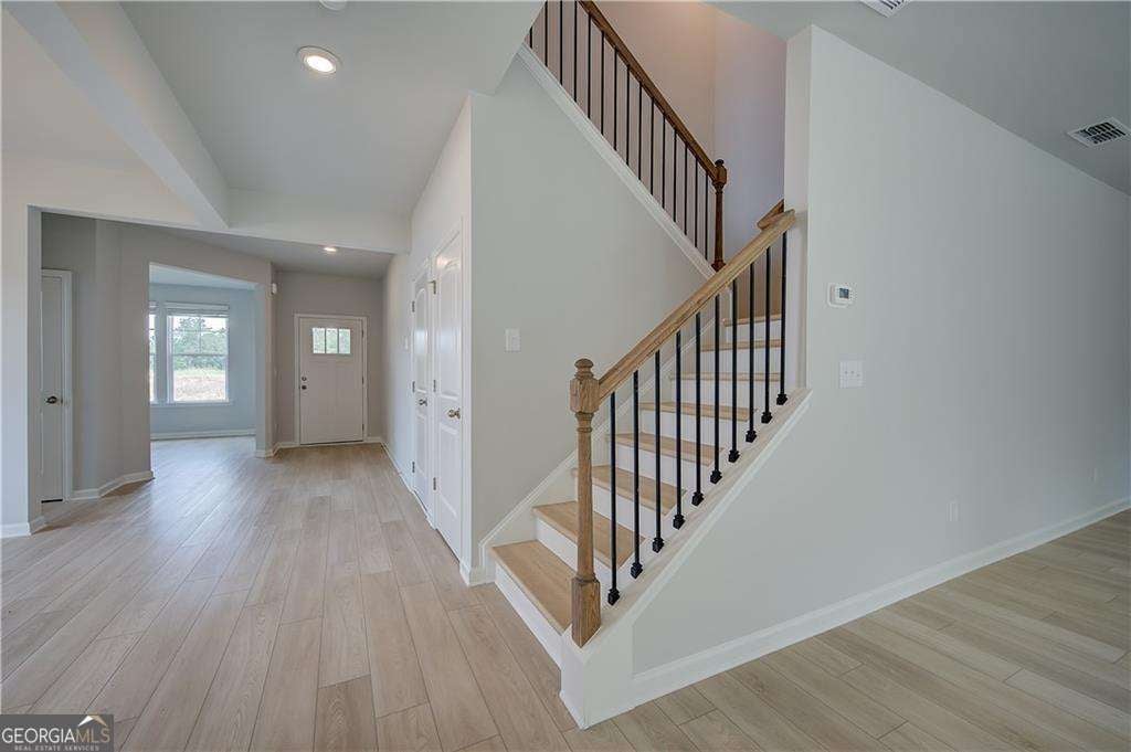 Welcome to the Wynwood on Homesite 219 at Abbotts Crossing - a premier DRB Homes community nestled in the highly desirable city of Conyers. This beautifully crafted single-family home features a sophisticated four-sided brick exterior and a thoughtfully designed layout that combines style, function, and comfort. The spacious Wynwood floor plan on a slab boasts 4 bedrooms, 3.5 bathrooms, and an open-concept main level ideal for everyday living and entertaining. At the heart of the home, the chef-inspired kitchen impresses with a large island, elegant quartz countertops, and stylish cabinetry, seamlessly connecting to a formal dining area perfect for gatherings. A flex space on the main level offers the perfect spot for a home office, study, or creative retreat. Upstairs, discover a versatile loft, a convenient laundry room, and the luxurious primary suite, which features two walk-in closets and a spa-like bathroom complete with a spacious tiled shower. Three additional bedrooms provide comfort and space for family or guests. Enjoy the convenience of living just minutes from I-20, downtown Conyers, charming Covington, and the shops at Stonecrest. Whether you're commuting or enjoying a night out, everything you need is within easy reach. For more details about the Wynwood, community amenities, current incentives, and available homes, please contact the onsite agent today! Please note: If the buyer is represented by a broker/agent, DRB REQUIRES the buyer's broker/agent to be present during the initial meeting with DRB's sales personnel to ensure proper representation.