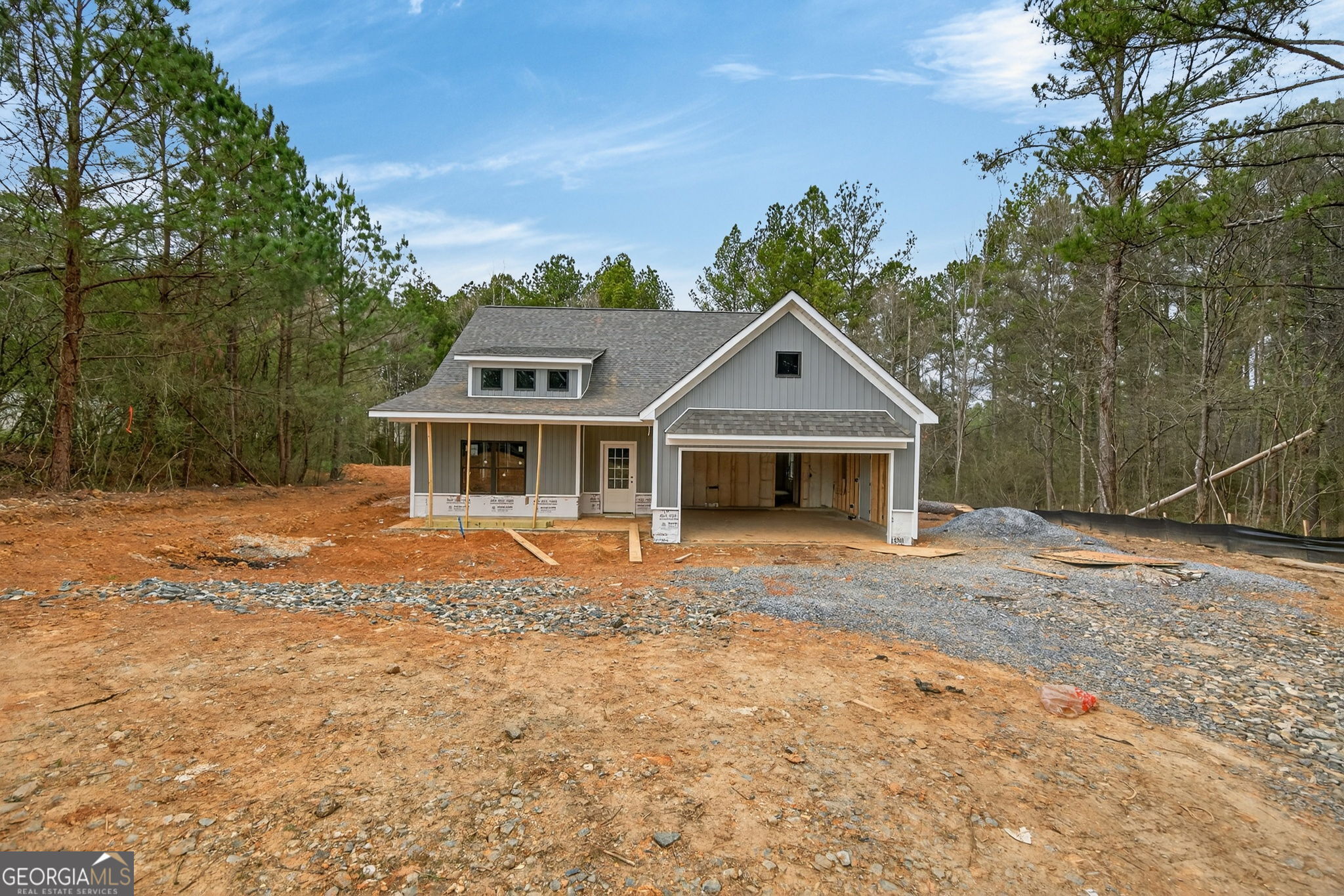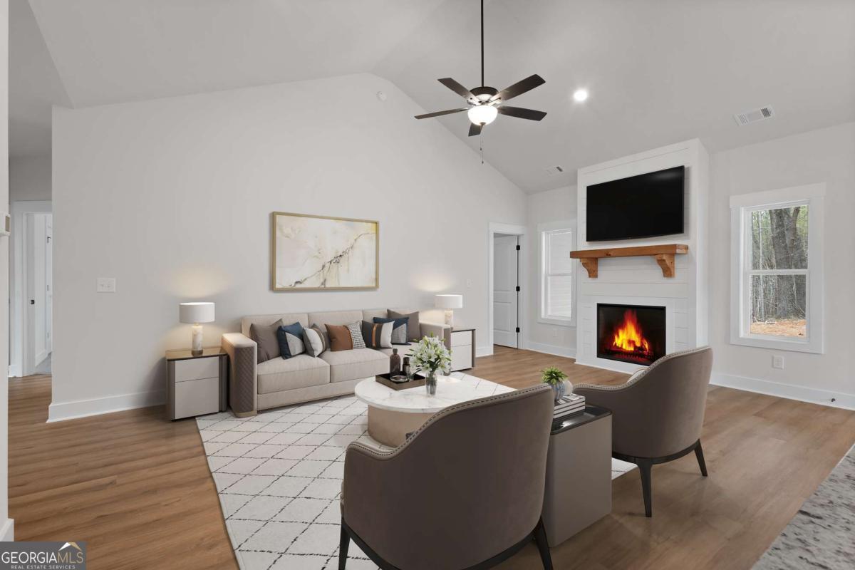 Construction is WELL underway! Don't miss your chance to own a spacious ranch on 2 private acres with no HOA! Seize this opportunity to own your own private 2-ACRE lot! This stunning, new, step-less, craftsman-style ranch offers modern country living at its BEST! The open floor plan features a vaulted family room highlighted by a custom shiplap fireplace. The gourmet kitchen is designed for entertaining and showcases an oversized custom island, a charming farmhouse sink, stainless steel appliances, upgraded soft-close shaker cabinetry, granite countertops, and a huge pantry. A separate laundry room adds everyday convenience and functionality. The primary suite offers a luxurious en-suite bath with a breathtaking tile shower featuring a custom glass door, along with a spacious walk-in closet. Two generously sized secondary bedrooms offer ample storage space with large closets and are complemented by a beautifully appointed full bathroom. Every detail throughout the home exudes luxury and thoughtful design, creating a space that is both inviting and practical. Relax on the picturesque front porch while enjoying your private, tree-lined view. The oversized covered back porch is ideal for both relaxing and entertaining and features a custom wood-burning outdoor fireplace. This gorgeous modern farmhouse design will include upgraded, striking BLACK EXTERIOR windows, upgraded black interior doors & upgraded trim paint. Standard features include durable exterior vinyl siding, luxury LVP flooring in the kitchen, living room, entry, and baths, plush carpeting in the bedrooms, and high-quality finishes throughout. Enjoy the freedom of a private lot with no HOA restrictions, offering the perfect blend of tranquility and convenience. Not quite the right floor plan or lot? We have additional lots and floor plans available. Be sure to inquire about incentives when using our preferred lenders. Please note that the interior & exterior photos are not of the actual home but are representative of this plan. (Lot and drone images depict the actual lot.) Minutes to Cartersville, Rome & Rockmart!