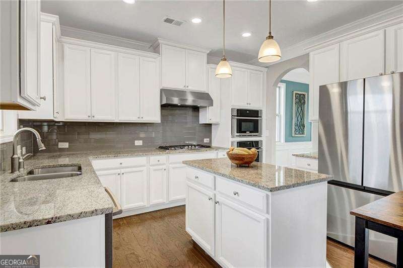 Experience the lifestyle of Harmony on the Lakes, complete with an adult pool, lap pool, swim team, tennis and pickleball courts, playground, basketball courts, clubhouse, fitness center, lake, and scenic walking trails, without the hustle and bustle of a large master-planned community! This home offers the best of both worlds, situated in The Gardens of Harmony with full access to these exceptional amenities. Located in a quiet cul-de-sac. in Canton, Georgia, this home is thoughtfully designed with over 3,000 square feet of living space and offers the layout, upgrades, and flexibility today's buyers prioritize most. A two story foyer creates an impressive welcome, leading into an open concept main level that balances comfort with functionality for both everyday living and effortless entertaining. The kitchen features granite countertops, a classic subway tile backsplash, stainless steel appliances, and generous counter and cabinet space, all overlooking the warm and inviting living room with custom built in bookshelves and a gas fireplace. Just off the kitchen, the covered back deck creates a seamless indoor outdoor flow, making it perfect for hosting gatherings, weekend grilling, or starting the day with coffee in a peaceful setting. Upstairs, you will find brand new carpet throughout, adding a fresh, clean feel to the entire upper level. The oversized primary suite serves as a true retreat with double tray ceilings, a large walk in closet, and a spa inspired bathroom complete with dual vanities, a soaking tub, and a tiled shower. Spacious secondary bedrooms provide comfortable accommodations with convenient bathroom access. The fully finished basement delivers exceptional versatility with a full bathroom, laundry area, kitchenette with no stove, and private exterior entrance, making it ideal for multigenerational living, extended stay guests, a teen suite, home office, fitness space, or media room. The backyard features a natural landscape with space to relax, garden, or entertain without the maintenance demands of an overly large yard. Located just minutes from top rated Cherokee County schools, shopping, dining, parks, and major commuter routes, this home combines space, location, and livability while presenting an exceptional opportunity in one of Canton's most sought after neighborhoods. Buyers may qualify for a $4,500 lender credit!