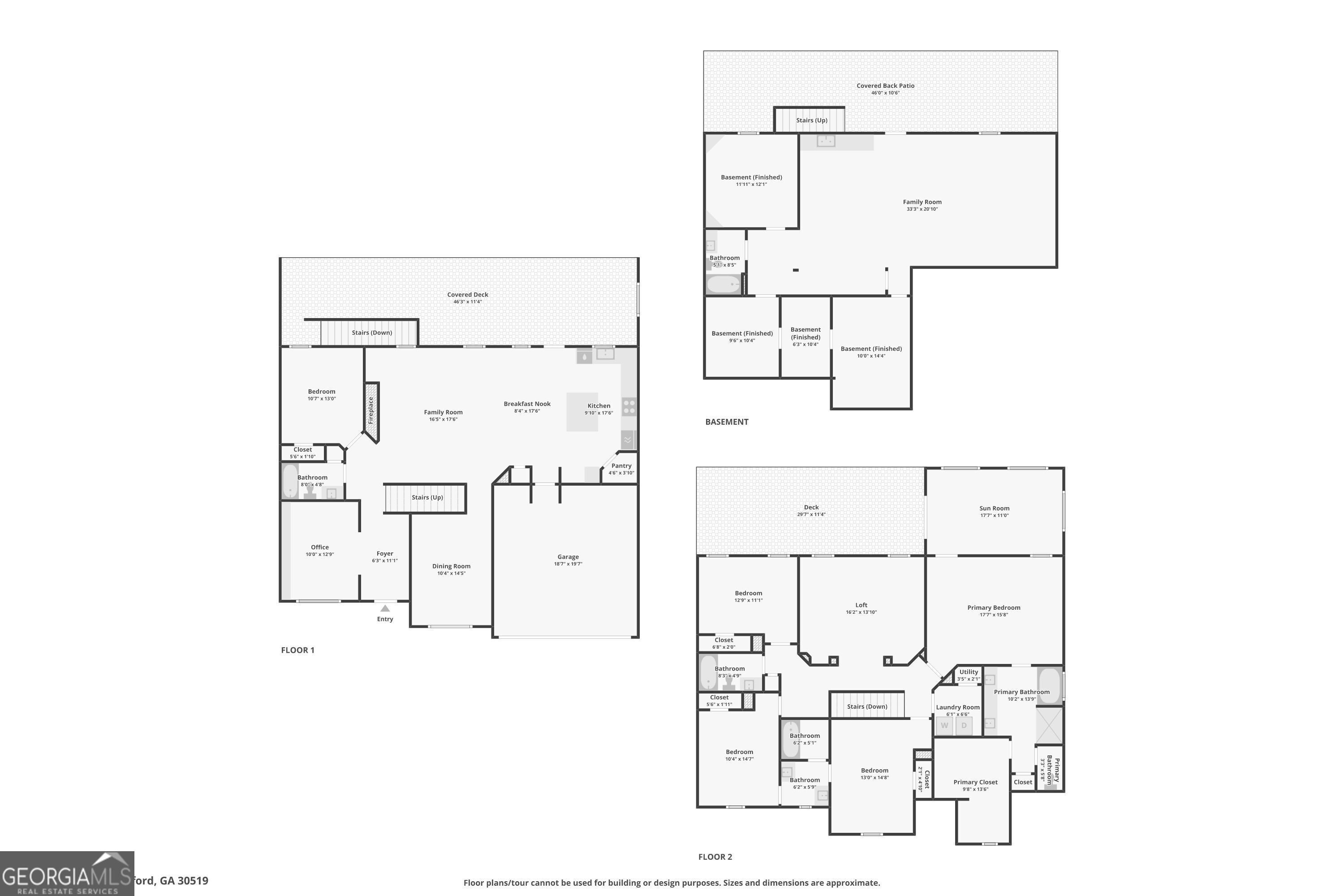 Welcome to this spacious and beautifully designed 6-bedroom, 5-bathroom home offering exceptional living space across three finished levels in sought-after Buford. Step inside to an inviting open-concept main level featuring a warm and welcoming living area with a cozy fireplace and seamless flow into the chef's kitchen. The kitchen is thoughtfully designed with a large island and breakfast bar, modern appliances, and ample cabinetry-perfect for everyday living and entertaining alike. The main level also includes a separate formal dining room and living room, plus a convenient bedroom and full bathroom ideal for guests or multigenerational living. Upstairs, you'll find a versatile family room that makes an excellent media room, play area, or additional lounge space. Three spacious secondary bedrooms and two full bathrooms provide plenty of room for everyone. The elegant primary suite is a true retreat, complete with trey ceilings, a spa-inspired bathroom featuring a double vanity, soaking tub, separate shower, and a large walk-in closet. Just off the primary suite, enjoy a private sunroom and access to a large upper-level deck-perfect for morning coffee or evening relaxation. The partially finished terrace level expands your living options even further, offering a full bathroom, an additional bedroom, and flexible rooms ideal for extra bedrooms, a home office, gym, or hobby space. Outdoor living shines with a large deck off the main level-perfect for entertaining, grilling, or simply unwinding while overlooking your surroundings. Residents also enjoy fantastic community amenities, including a pool, tennis courts, and a clubhouse, adding to the lifestyle this exceptional home provides. Don't miss the opportunity to own this versatile and beautifully appointed home in a prime Buford location!