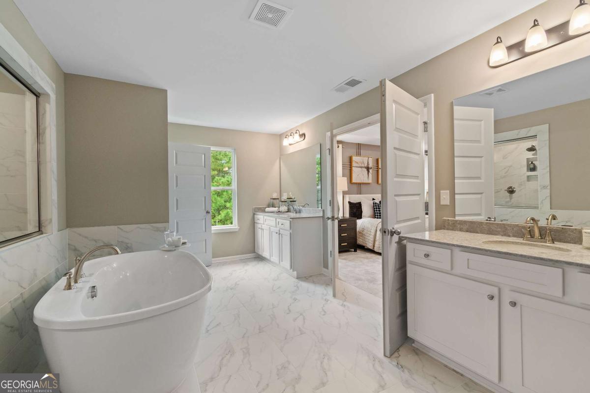Welcome home to Trinity Park, a premier community by DRB Homes in the highly sought-after area of McDonough, GA! This beautifully designed single-family residence showcases timeless curb appeal with its elegant four-sided brick exterior and thoughtfully planned living spaces. The popular Clarity floor plan offers 5 bedrooms and 4 full bathrooms, perfectly balancing style, function, and comfort. The main level boasts an open-concept layout, featuring a gourmet kitchen with a large center island, seamlessly flowing into the spacious family room - ideal for entertaining or everyday living. A guest bedroom with a full bath on the main provides flexible space for visitors or a home office. Upstairs, a generous loft offers additional living space, perfect for a media area, playroom, or reading nook. You'll also find two well-sized secondary bedrooms with a shared bath, a convenient upstairs laundry room, and a private guest suite with an en-suite bath. The crown jewel of the upper level is the oversized owner's suite, complete with a cozy sitting area and a luxurious spa-inspired bathroom, featuring dual vanities, a relaxing soaking tub, and a separate tiled shower. Don't miss the opportunity to call this exceptional home your own. Coming Soon to Trinity Park! Please note: If the buyer is represented by a broker/agent, DRB REQUIRES the buyer's broker/agent to be present during the initial meeting with DRB's sales personnel to ensure proper representation.