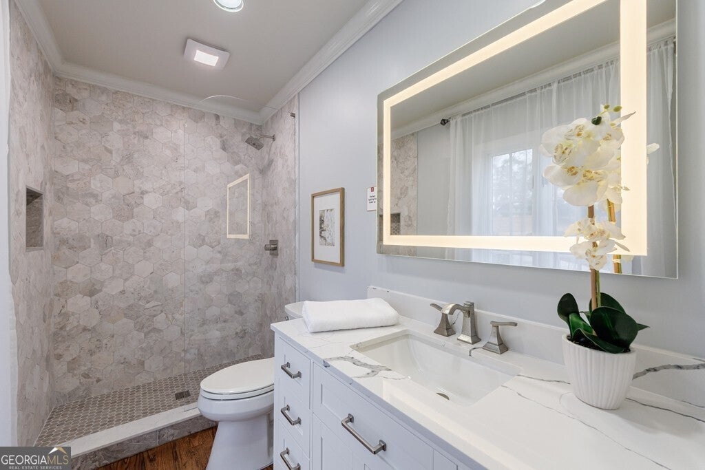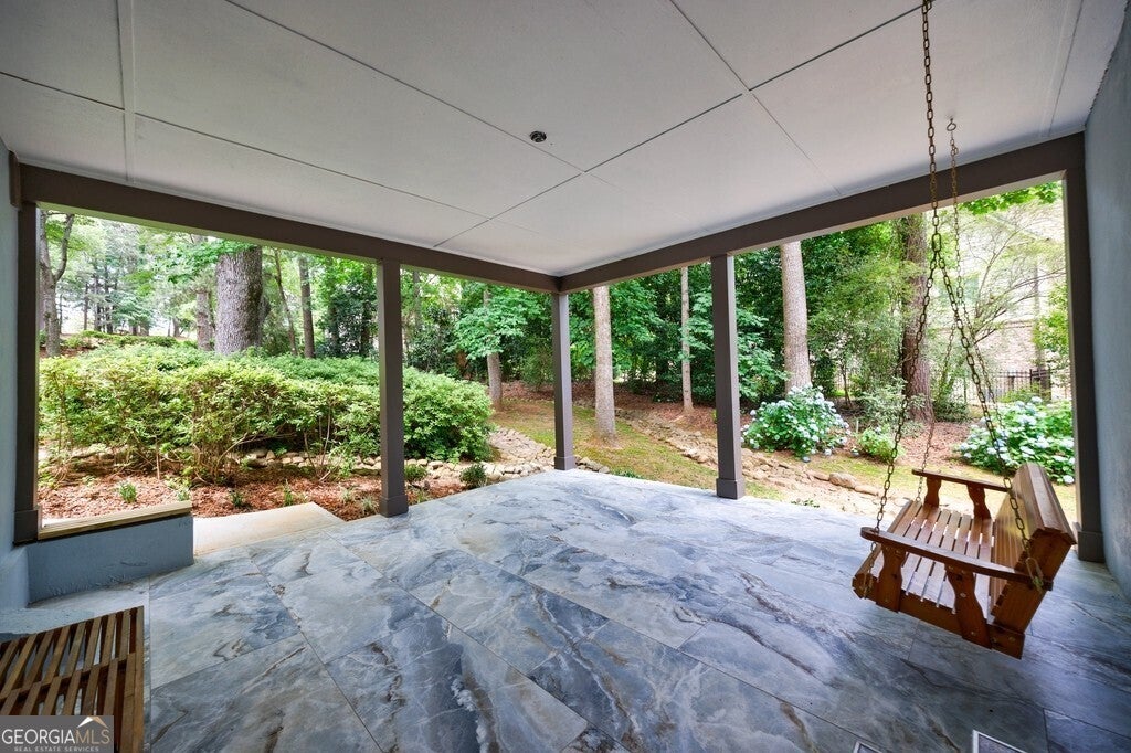 Prepare to be captivated by this storybook stone estate, a rare architectural gem ideally positioned directly across from the prestigious Atlanta Country Club. Completely renovated down to the studs, this extraordinary home features all-new systems including a new roof, electrical, and modern HVAC-seamlessly blending timeless European-inspired charm with refined contemporary luxury. A dramatic arched stone facade and custom front entry set the tone, opening into a chic foyer accented with wrought iron details and abundant natural light. The fully reimagined open-concept floor plan is both elegant and inviting, designed for effortless living and entertaining. The chef's kitchen is a showstopper with crisp white cabinetry, granite countertops, and top-of-the-line stainless steel appliances, flowing effortlessly into a stunning family room complete with a fireplace, designer feature wall, and sweeping views of the manicured grounds and oversized arched screened porch. A formal dining room offers picturesque views of the Atlanta Country Club fairways, while a sophisticated den with custom built-ins and a wet bar overlooks the serene, private yard. A spacious main-level guest suite with a full bath provides ideal flexibility for multigenerational living or luxurious guest accommodations. Upstairs, the oversized primary suite is a private retreat featuring its own fireplace, a secluded rooftop balcony, and a spa-inspired bath with soaking tub, glass-enclosed shower, dual vanities, and an expansive walk-in closet-complete with a private laundry, an exceptional and rare convenience. Two additional upstairs bedrooms feature beautifully designed en-suite baths with designer tile and quartz countertops. The finished terrace level is an entertainer's dream, offering a stylish recreation room, kitchenette, full bedroom and bath, a striking wine wall, and an elegant half bath for guests. Double doors from the main living area open to a stunning tiled loggia with a charming swing-perfect for enjoying the peaceful garden setting. From there, step out to the expansive grassy side yard, ideal for entertaining, play, or future enhancements such as a pool, tennis court, or playground. With its distinctive aesthetic, dramatic architecture, and light-filled spaces, this home is also perfectly suited for movie or television productions. Situated on a coveted corner lot within a quiet cul-de-sac, the property features a circular driveway, two-car side-entry garage, and a dedicated golf cart path with covered parking. Zoned for Cobb County's most sought-after schools-Sope Creek Elementary, Dickerson Middle, and Walton High-and just a short walk to the Chattahoochee River, this estate represents the very best of East Cobb living. NO HOA!This is more than a home-it's a lifestyle