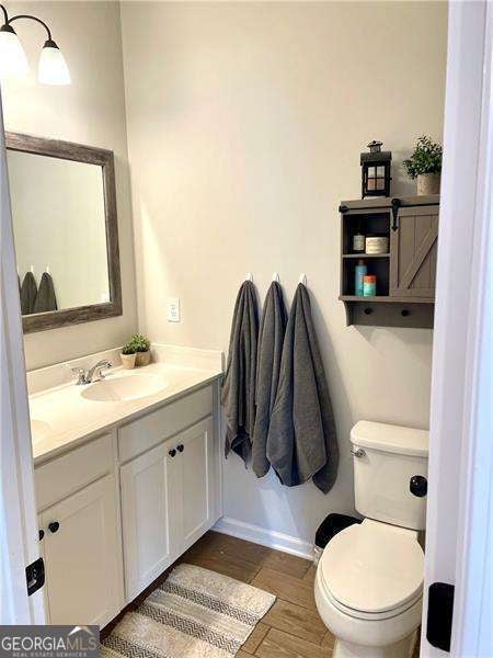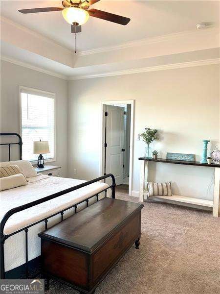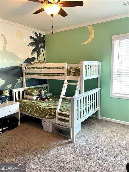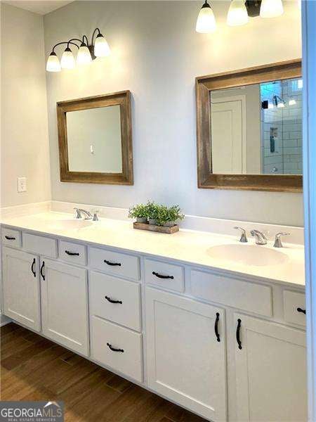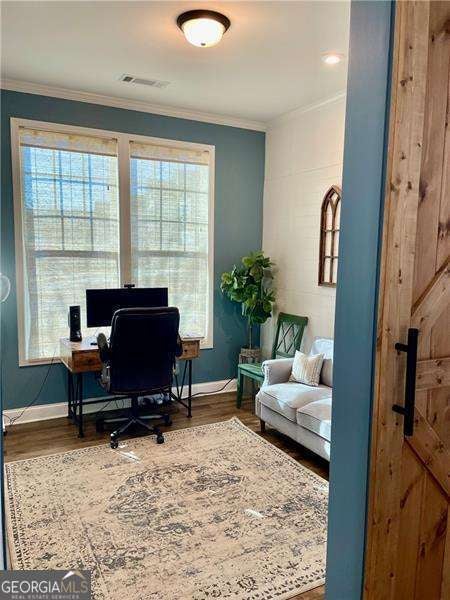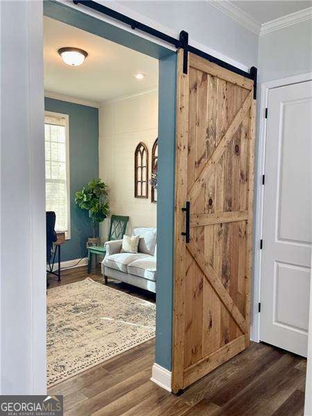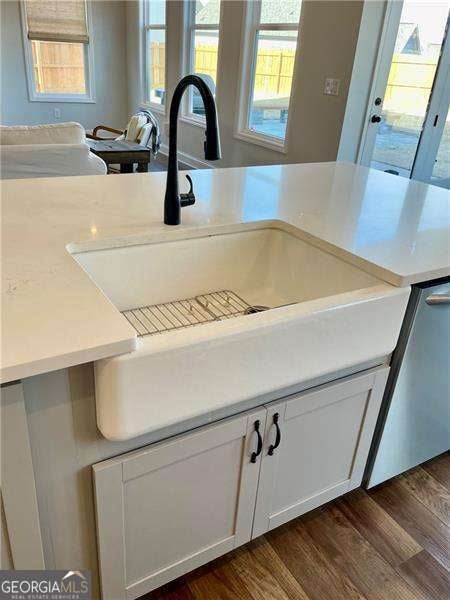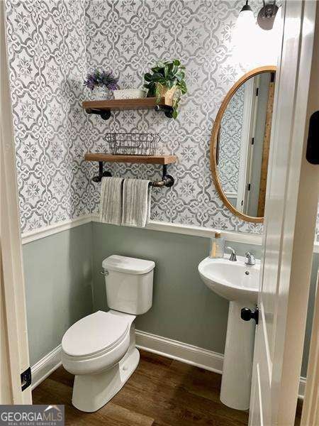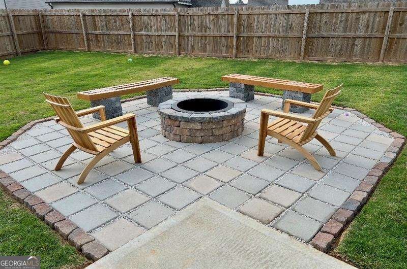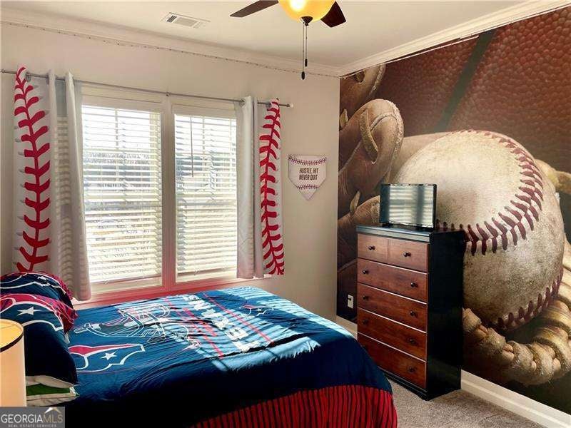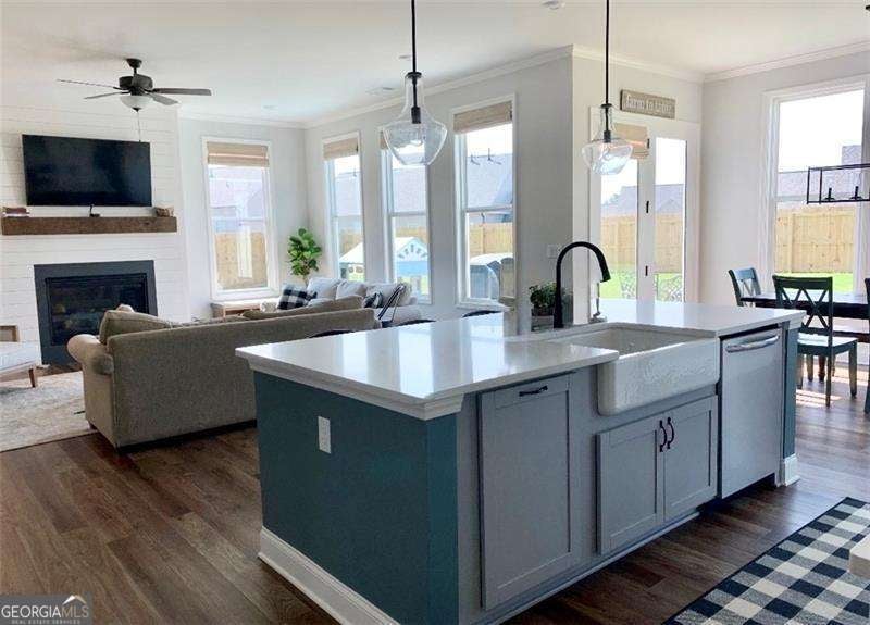 Gorgeous home in Edgewater neighborhood. Open concept living and kitchen with tons of character. The tall ceilings on the main floor make this home spacious and inviting. This home has 10 foot ceilings on the main level with tall 7 foot windows across the entire back of the home. The kitchen features hard surface counters on a grand kitchen island with a classic farmhouse sink, as well as on the entire kitchen countertop space. This home will wow you from the moment you step in the front door. As you enter the home, you feel the warmth with the impressive and professional, custom made barn door that leads to the flex room that is currently used as an office, but this space could be used in any way you want, such as a library, playroom, media room, craft room, and so much more. The home offers a nice nook off of the kitchen tucked away near the walk in pantry that can be easily converted into a home office, crafting area, coffee bar, or butlers pantry - the ideas are endless. This niche space also includes a large 7 foot window overlooking the large fenced backyard. Mom or dad can do some work or pay bills in this special space while keeping an eye on the kids playing right outside the window on the wooden playset (stays with the property). The backyard is fully fenced with a privacy fence, and the home has one of the largest usable backyard spaces available in the neighborhood. Situated on a quiet cul-de-sac street, you have minimal through traffic and a nice space for kids to play or to have neighborhood parties. The kitchen boasts a subway tile backsplash with builder installed undermount cabinet lighting. This home features a top of the line security system with video surveillance, window and door alarms, and smart home technology. There is a nice sized loft area upstairs that is ready for your personal touch. The Owner's Retreat is spacious with double doors and a tray ceiling. All bedrooms have ceiling fans, and don't miss the vintage style tile in the large laundry room with a convenient utility sink. This home has multiple closets for storage, including a large mud room with a built in custom bench and storage cubbies and pegs. This area features a double door, roomy utility closet. You'll find the custom powder room tucked away off of the foyer, perfect for guests to feel privacy. There are so many nice features in this home completed in 2021. The home is a one owner home that has had lots of love and care over the last 5 years. Don't miss your opportunity to be a part of the Hickory Flat SWIM/TENNIS community at Edgewater neighborhood!