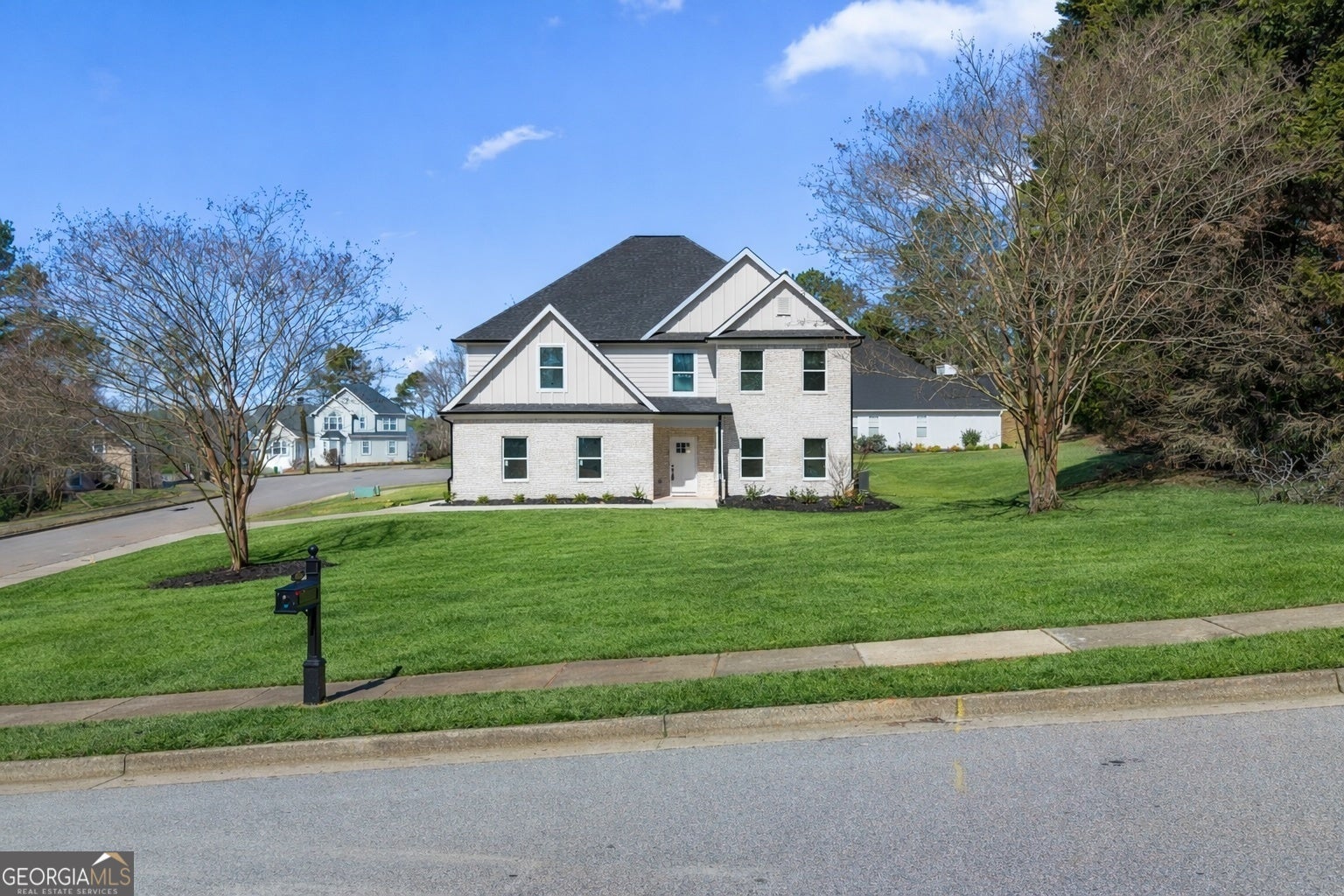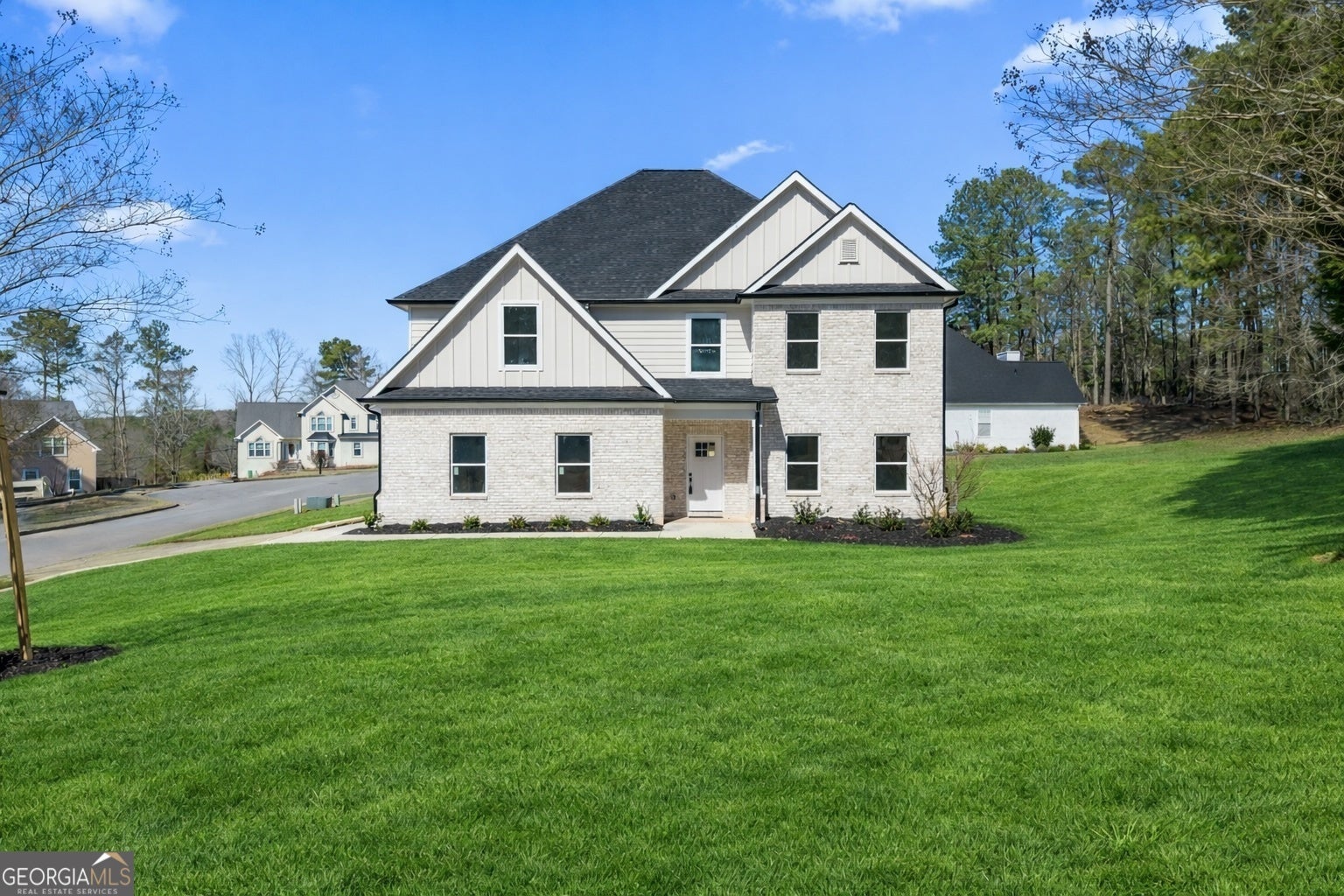 Experience Move-in Ready new construction living in this light-filled craftsman-style residence tucked away right off of Eagles Landing parkway. Perfectly placed windows and elevated fixtures create a bright, welcoming atmosphere from the moment you enter. Gorgeous LVP flooring grounds the main level quality carpet selections adds comfort to the upstairs bedrooms. The open-concept main floor is designed for connection and flow. A chef-inspired kitchen showcases quartz countertops, a generous island, and smart appliances, seamlessly adjoining the dining area and family room centered by an eye-catching fireplace and a custom accent wall. Tucked away on the main level you'll find the guest suite. Upstairs, the owner's suite is a true retreat with walk-in closets and a spa-inspired bath featuring a large walk-in shower and a modern soaking tub. Three additional upper-level bedrooms offer excellent scale and storage. This home pairs clean, modern style with everyday functionality,delivering the convenience of Stockbridge lifestyle at the most amazing price for these features. Don't miss the opportunity to make this home your own.