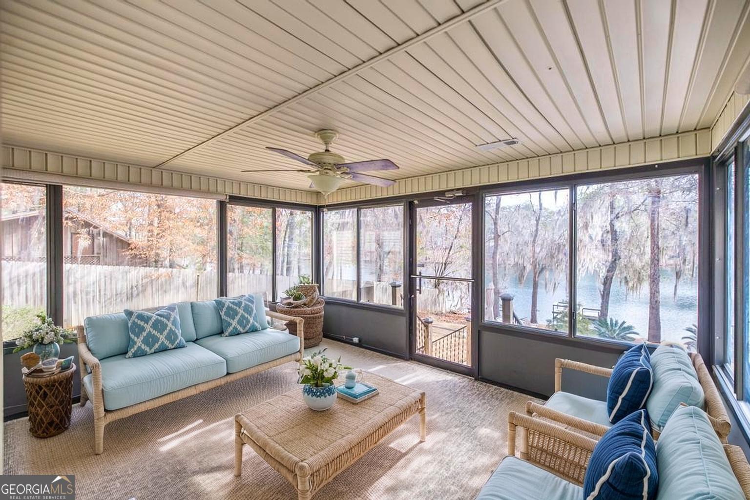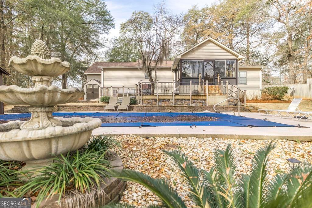 Wake up to shimmering water views and end your day with sunset reflections over Tanglewood Lake in Northwest Laurens County. Perfectly positioned on a gorgeous lot along the deep-water side of the lake, this property was made for memory-making - just in time for summer. Step outside and you'll immediately see why this home stands out. A large deck overlooks the saltwater pool (featuring a new pump and Polaris), creating the ultimate entertaining space. The fountain adds a peaceful touch, while the gazebo and beautiful stone walkway guide you through a backyard that feels like your own private retreat. Beyond it all, a newer dock stretches into the deep water - ready for fishing at sunrise, boating in the afternoon, and quiet evenings by the shore. Inside, fresh interior paint creates a clean, updated feel throughout, complemented by a newer roof and newer HVAC systems for added peace of mind. The heated and cooled sunroom captures the entire backyard and lake scene, making it the perfect year-round gathering spot. The spacious living room features a striking stone fireplace and flows effortlessly into the breakfast area and huge kitchen. You'll love the abundant counter space for prepping meals, hosting holidays, or serving up poolside snacks. A separate dining room offers space for more formal gatherings or could be used an office space, while the oversized laundry room provides flexibility for a pantry extension or additional freezer. The primary suite includes a walk-in closet and a bath with separate shower. Two additional guest bedrooms share a stylish hall bath, offering comfort and privacy for family or visitors. Whether you're casting a line from your dock, floating in the pool, or enjoying coffee in the sunroom overlooking the water, this home delivers the lifestyle so many are searching for. Fish. Boat. Swim. Entertain. Relax. Lake living starts here.