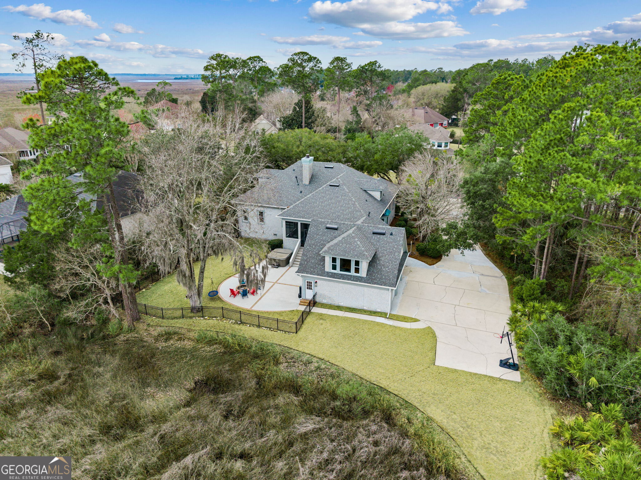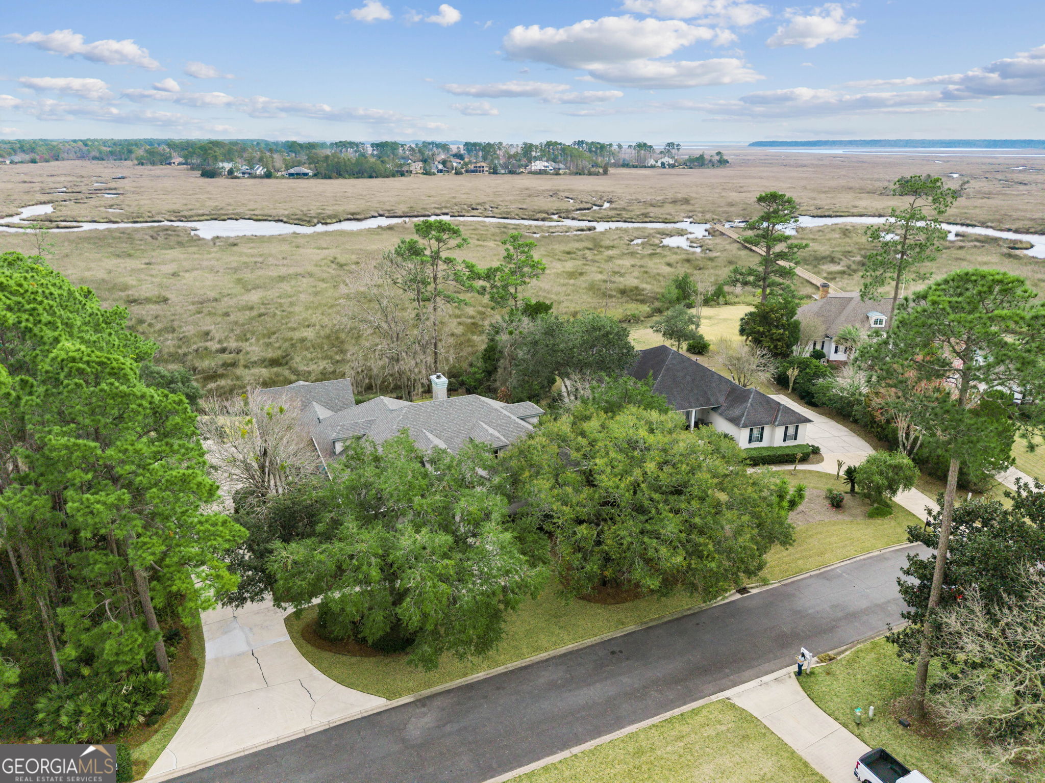 Welcome to 1037 Greenwillow Drive in the prestigious gated golf community of Osprey Cove in St. Marys, Georgia. Perfectly positioned along the marsh and river, this fully renovated waterfront residence offers expansive, unobstructed views, exceptional privacy, and a rare opportunity to construct a private dock (subject to required approvals) - an exclusive and limited offering within the community. Thoughtfully sited to maximize both panoramic views and seclusion, the home enjoys a private setting that enhances the peaceful marshfront lifestyle while remaining within one of coastal Georgia's premier gated communities. This residence has undergone a complete renovation with quality improvements throughout. Enhancements include a brand-new roof and gutters, fresh exterior paint, beautifully refinished wood flooring, and new interior paint across the entire home. The kitchen has been updated with new KitchenAid appliances and quartz countertops, creating a refined and functional space ideal for both everyday living and entertaining. The primary bathroom has been fully remodeled with updated finishes, and the guest bathrooms have been tastefully renovated. Two new hot water heaters have also been installed. In addition, the crawlspace has been fully upgraded with new insulation and a new moisture barrier, providing enhanced structural protection and long-term peace of mind. Large windows frame sweeping marsh and river views, filling the home with natural light and showcasing the beauty of the surrounding landscape. A detached guest house adds valuable flexibility and includes a full bathroom along with generous storage space, making it ideal for guests, a private office, or multi-generational living. Additional features include a spacious three-car garage and abundant storage throughout the property. Opportunities to own a fully renovated marsh and riverfront home in Osprey Cove with dock potential and this level of privacy are rare. This property offers luxury updates, versatile living space, and breathtaking waterfront views in a truly exceptional setting.