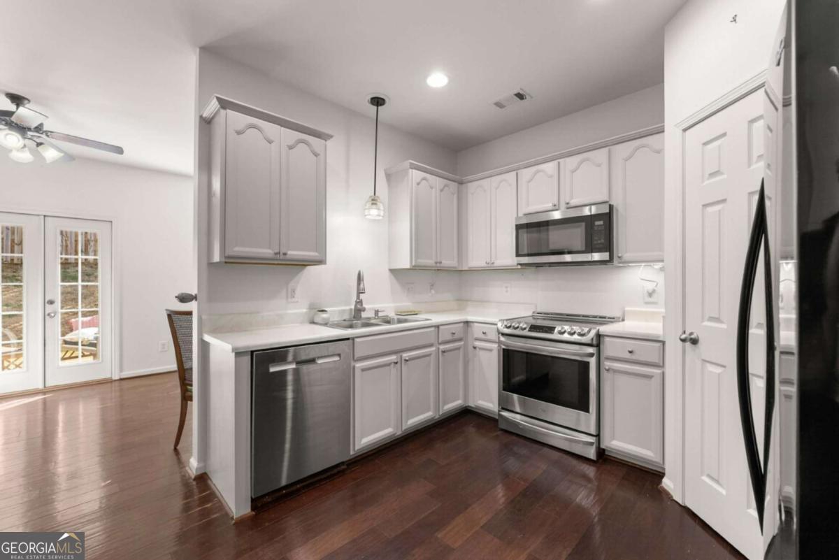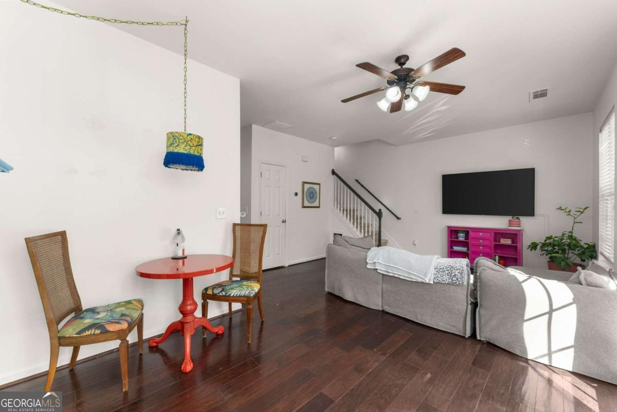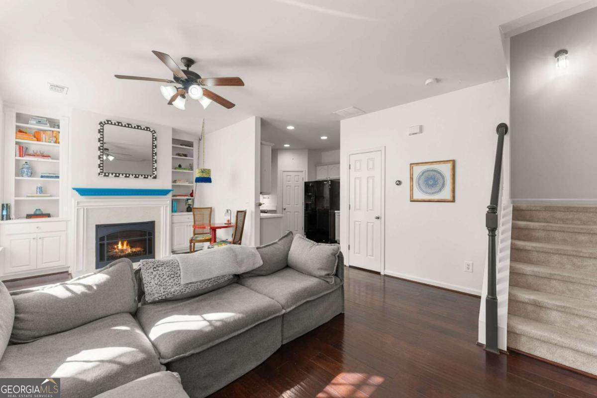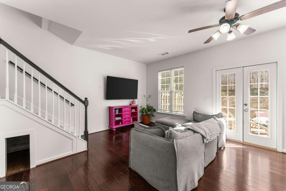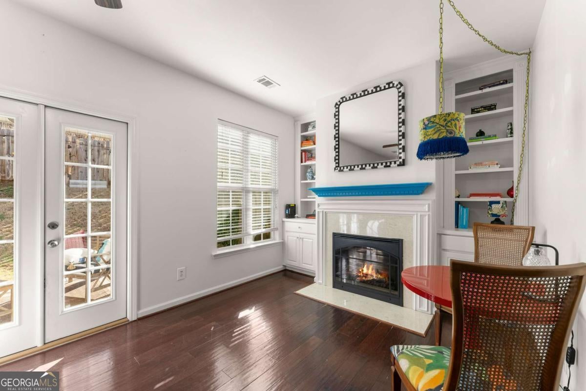 Move-in ready townhouse in a highly desirable community with low HOA fees and an unbeatable Cumming location! This home offers the perfect blend of warmth, character, and functionality - definitely not your typical beige box. The main level features beautiful hardwood floors throughout, a welcoming entry foyer, and a spacious great room with a cozy fireplace and custom built-in bookcases on each side. French doors open to the patio, creating a seamless indoor-outdoor living space. The kitchen includes stainless steel appliances and pantry storage. A separate dining room with French doors - currently used as an office - offers flexible space for entertaining or working from home. A convenient powder room completes the main level. Upstairs, the primary suite is a true retreat with French doors leading to a private deck, two walk-in closets, and an ensuite bath with double vanities, soaking tub, and separate shower. The oversized secondary bedroom currently set up as a giant craft room is large enough to function as a second primary suite and is served by a full bathroom. The upper level also features a laundry room and an additional office space/flex area perfect for remote work, study, or hobbies. Additional highlights include: ? 3-year-old roof ? Newer hot water heater ? Two-car attached garage ? Private outdoor spaces on both levels ? Great layout for roommates, guests, or multigenerational living Located just minutes from GA-400, downtown Cumming, the Cumming Aquatic Center, parks, shopping, dining, and medical facilities, this home offers both convenience and lifestyle. Enjoy easy access to Lake Lanier recreation, greenway trails, and top Forsyth County amenities while still tucked into a quiet, established community. If you're looking for a home with personality, thoughtful spaces, and a fantastic location - this is the one.