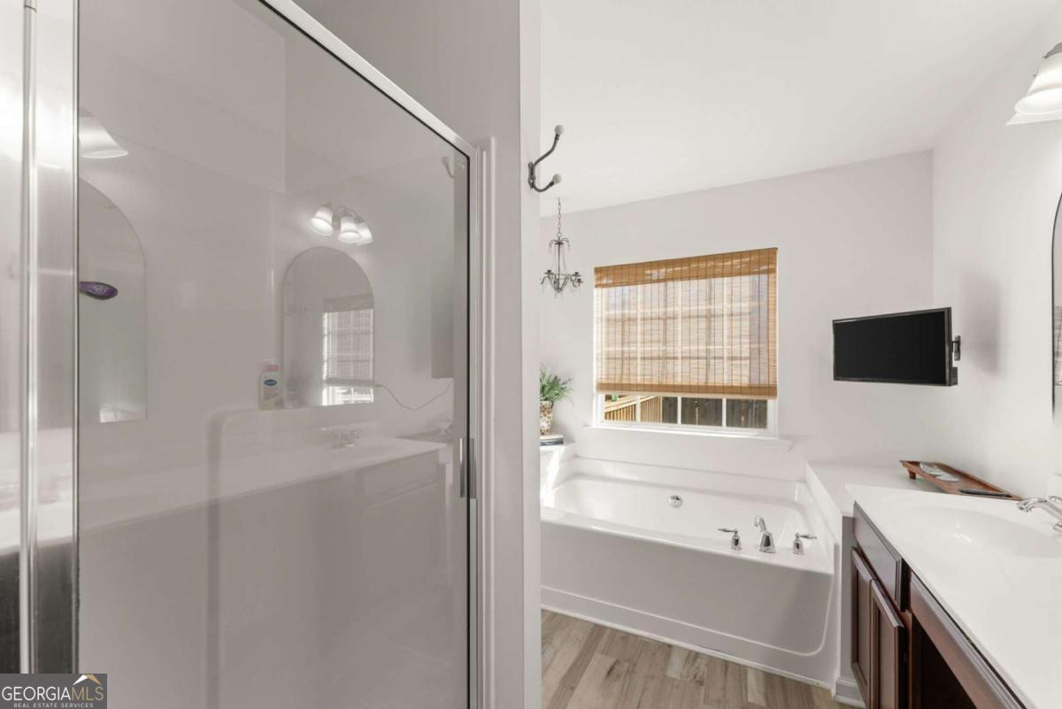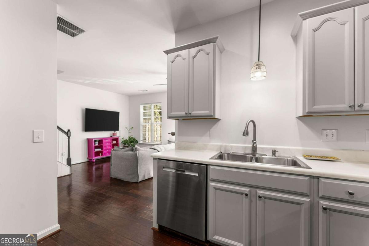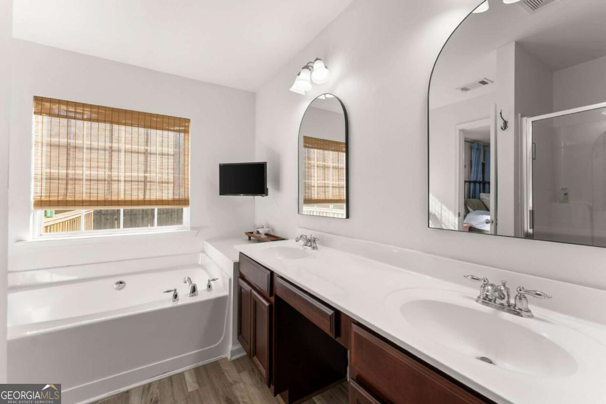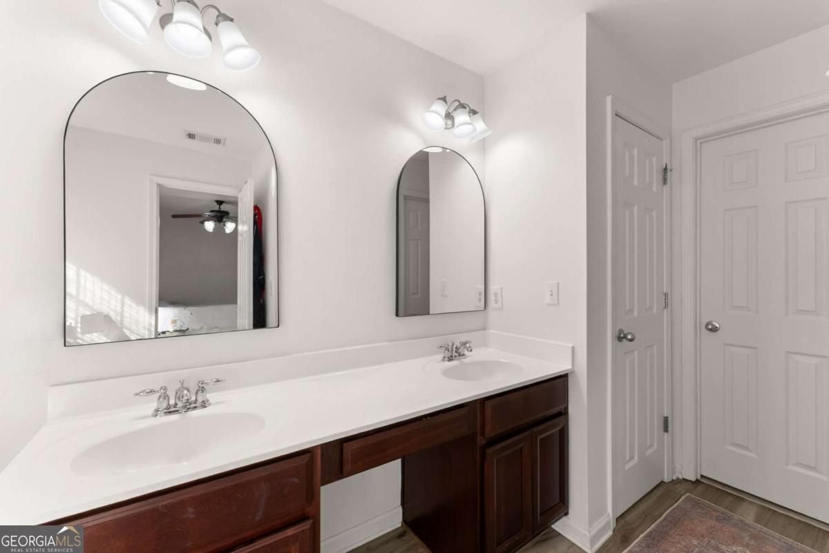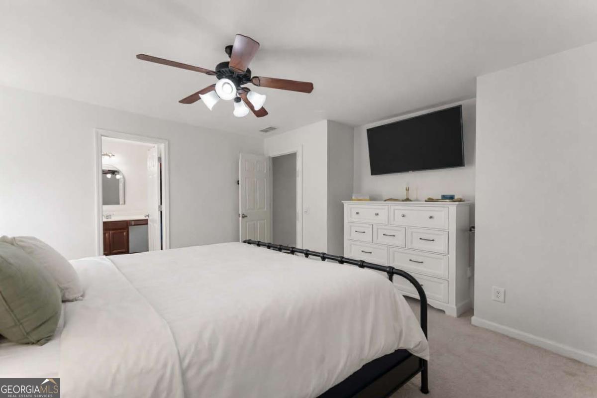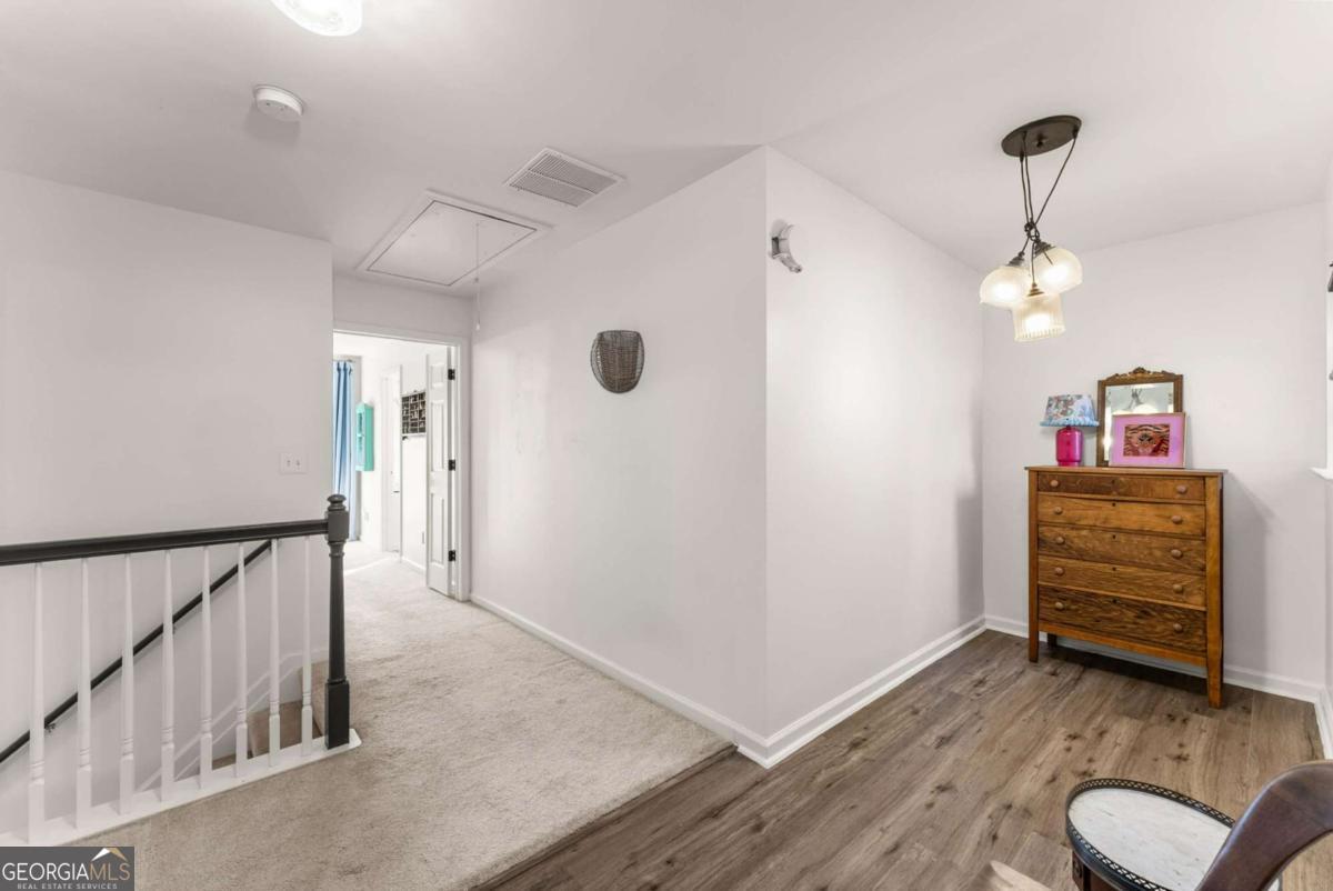 Move-in ready townhouse in a highly desirable community with low HOA fees and an unbeatable Cumming location! This home offers the perfect blend of warmth, character, and functionality - definitely not your typical beige box. The main level features beautiful hardwood floors throughout, a welcoming entry foyer, and a spacious great room with a cozy fireplace and custom built-in bookcases on each side. French doors open to the patio, creating a seamless indoor-outdoor living space. The kitchen includes stainless steel appliances and pantry storage. A separate dining room with French doors - currently used as an office - offers flexible space for entertaining or working from home. A convenient powder room completes the main level. Upstairs, the primary suite is a true retreat with French doors leading to a private deck, two walk-in closets, and an ensuite bath with double vanities, soaking tub, and separate shower. The oversized secondary bedroom currently set up as a giant craft room is large enough to function as a second primary suite and is served by a full bathroom. The upper level also features a laundry room and an additional office space/flex area perfect for remote work, study, or hobbies. Additional highlights include: ? 3-year-old roof ? Newer hot water heater ? Two-car attached garage ? Private outdoor spaces on both levels ? Great layout for roommates, guests, or multigenerational living Located just minutes from GA-400, downtown Cumming, the Cumming Aquatic Center, parks, shopping, dining, and medical facilities, this home offers both convenience and lifestyle. Enjoy easy access to Lake Lanier recreation, greenway trails, and top Forsyth County amenities while still tucked into a quiet, established community. If you're looking for a home with personality, thoughtful spaces, and a fantastic location - this is the one.